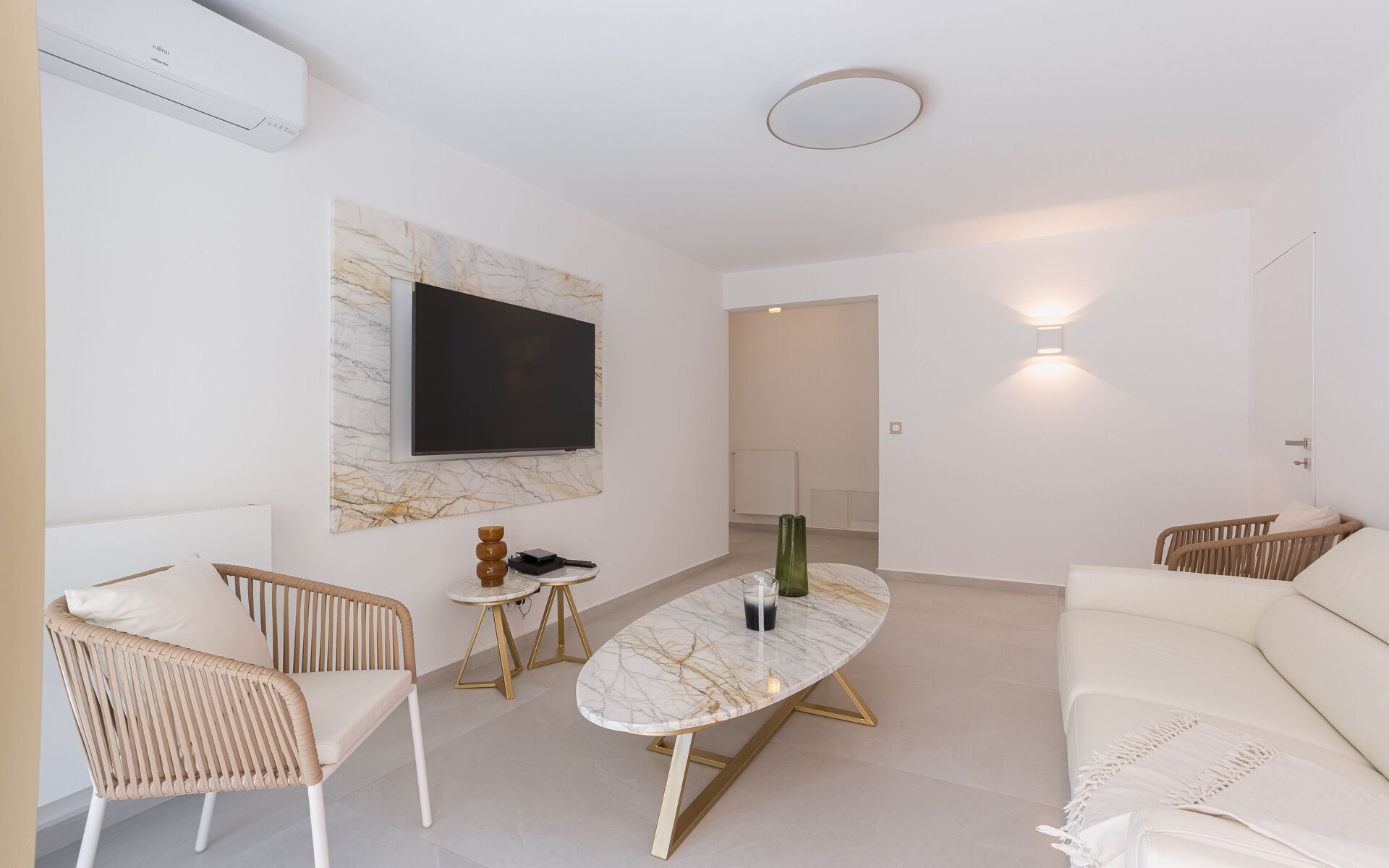 - Bedroom 2: King Size bed (180 x 200) + TV + Balcony