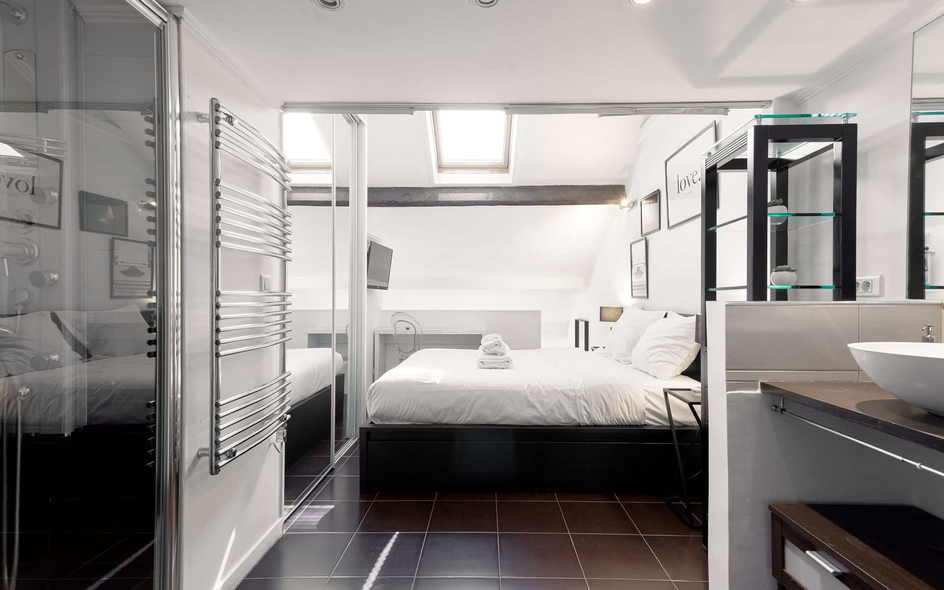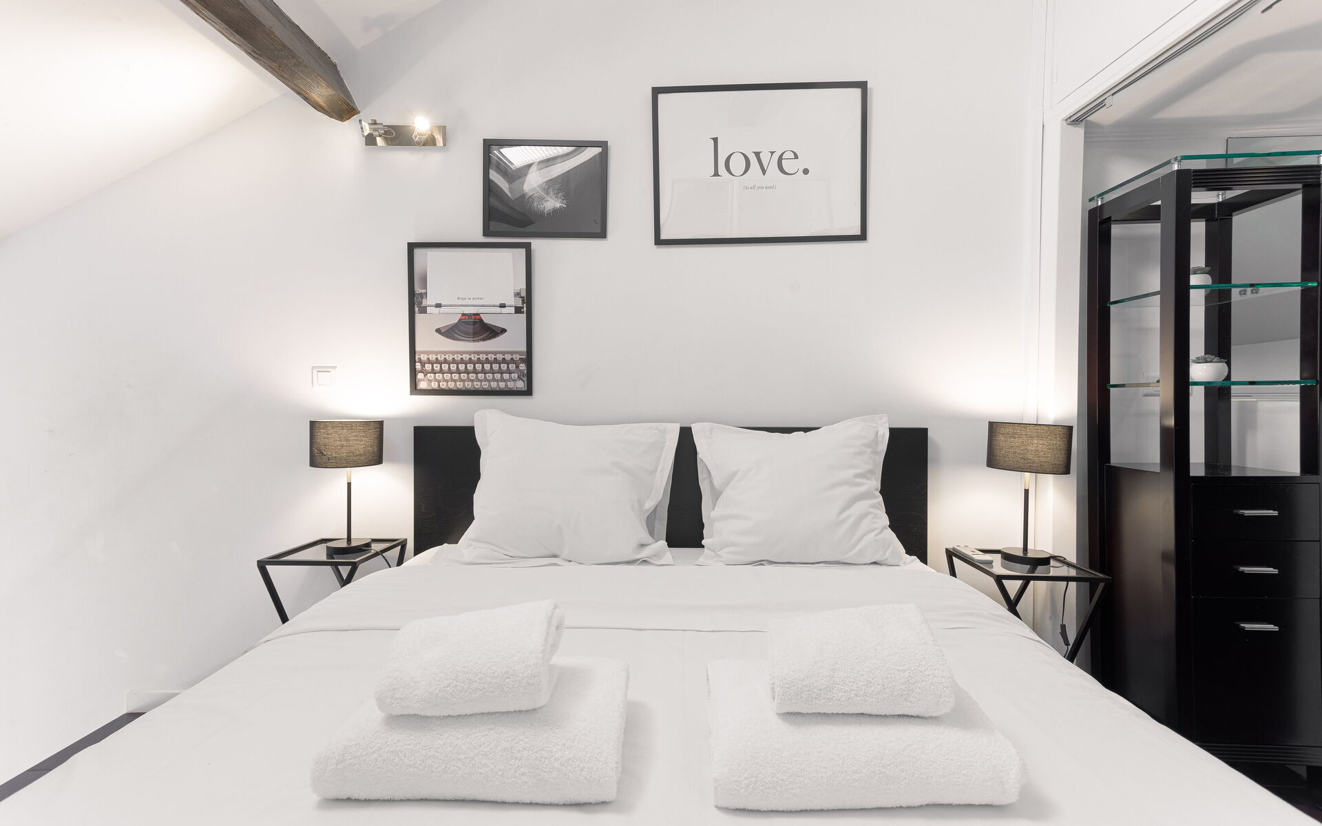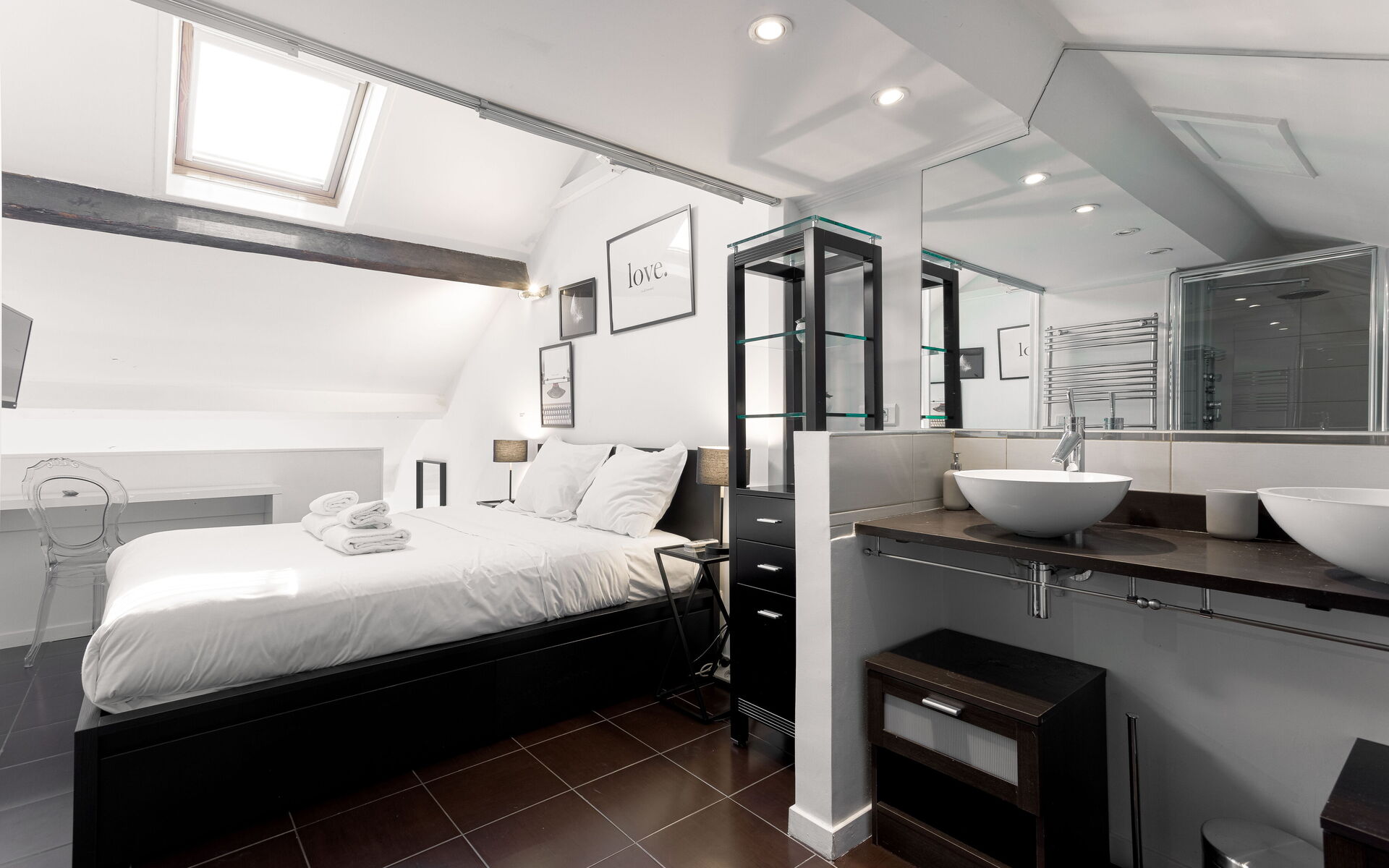 - Bedroom upstairs: Queen size bed (160 x 200) with ensuite bathroom (shower )