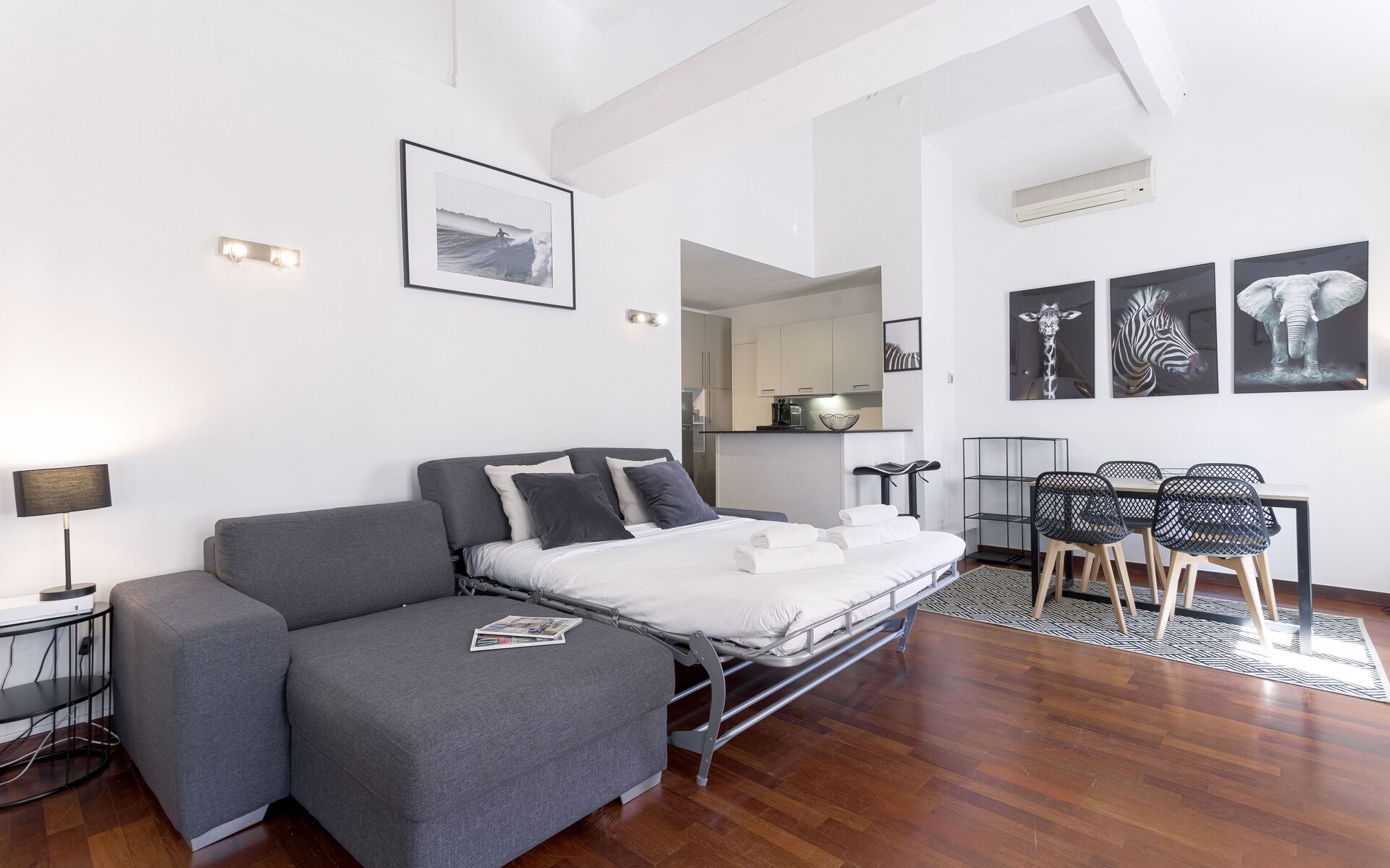 This stylish, fully renovated one-bedroom apartment with air conditioning is located on rue Fafontaine, between rue d'Antibes and la Croisette, a prime location in the very heart of Cannes.