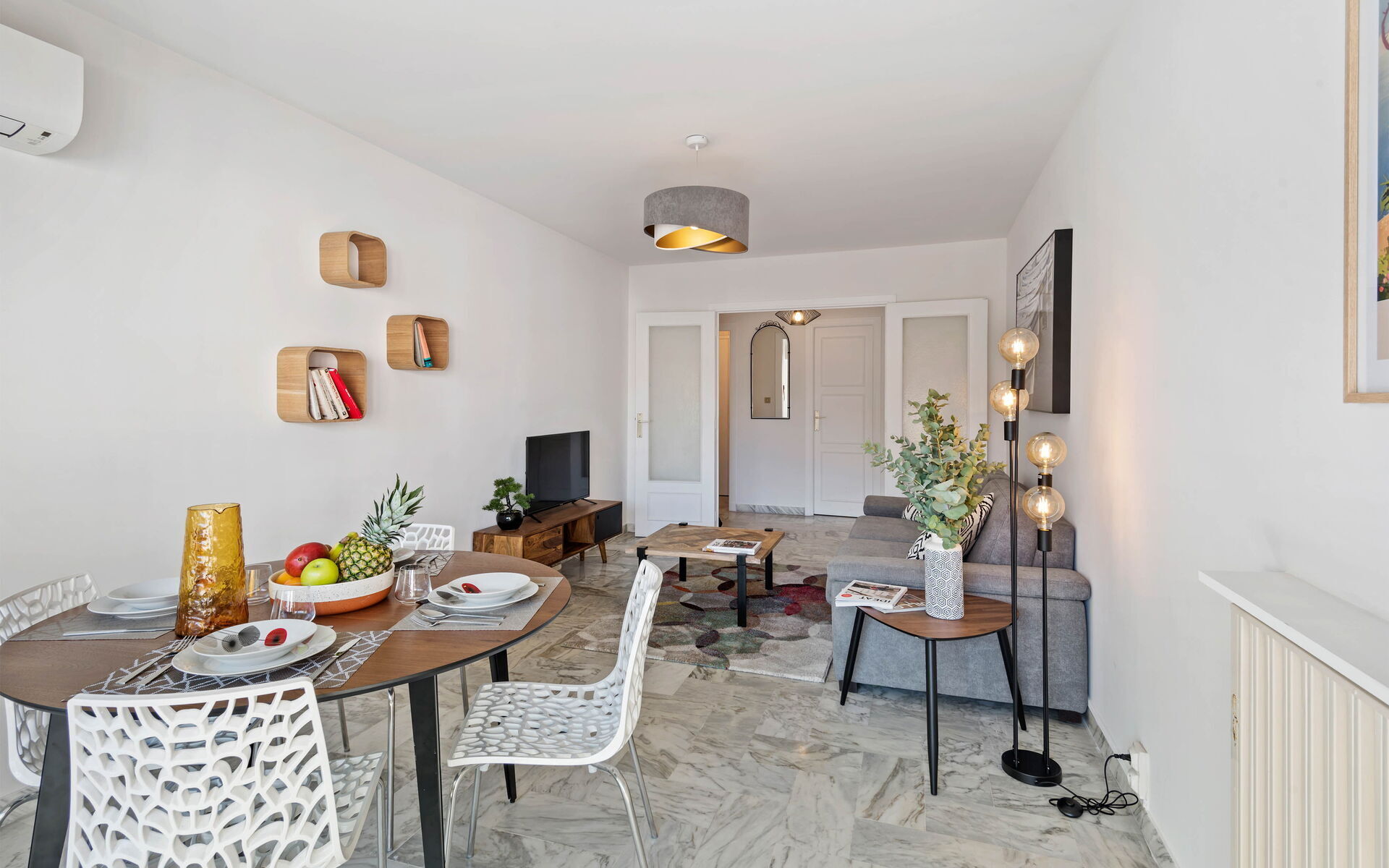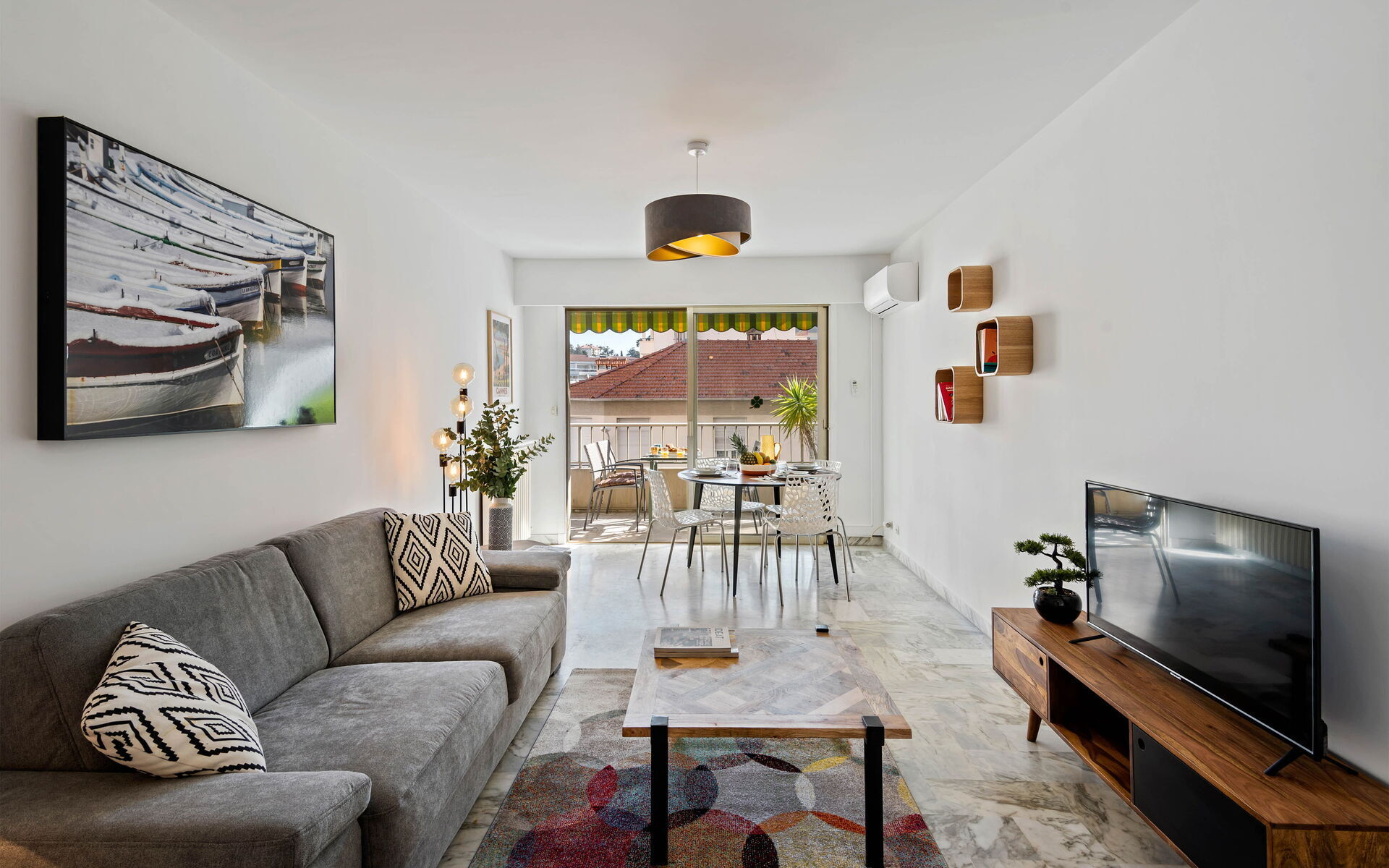 - Living room: flat screen TV + comfortable sofa bed + air conditioning