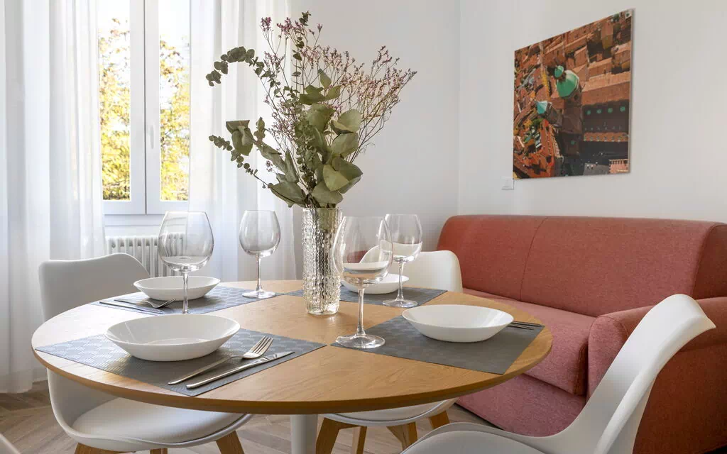 L’appartamento è stato completamente ristrutturato ad ottobre 2020 così da assicurare agli ospiti un piacevole soggiorno in un contesto raffinato e dotato di tutti i comfort. Pur essendo affacciato su via Massarenti, una delle direttrici più importanti per raggiungere il centro della città, l'immobile risulta estremamente silenzioso grazie alla presenza di infissi di ultima generazione. Il rispetto per l’ambiente, che ha caratterizzato tutta la ristrutturazione, traspare sia dalla realizzazione del cappotto termico, che offre un’ottima coibentazione dei locali, sia dall’installazione di pannelli solari sul tetto, utili a minimizzare l'impatto energetico del palazzo. Il condizionatore con sistema di purificazione dell’aria consente di avere sempre una temperatura piacevole ed un ambiente igienico, mentre il riscaldamento autonomo è regolabile tramite un termostato.
