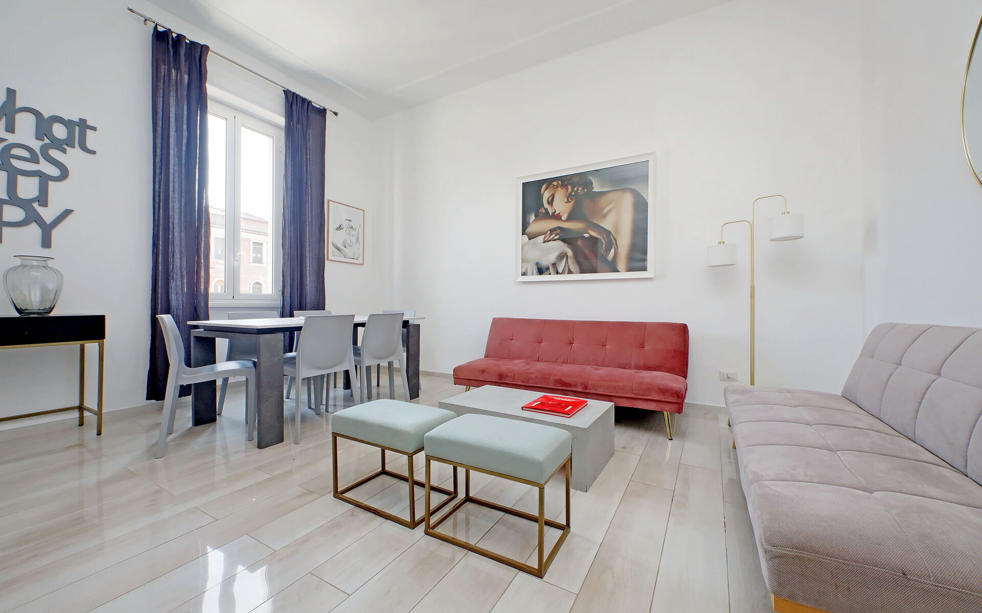 L’appartamento era ottimo. Sia per la gestione di cinque persone, sia per la posizione (5 minuti a piedi dalla stazione di Trastevere). Le uniche cose che attenzionerei sono: l’assenza dell’ascensore (o meglio, era presente ma non utilizzabile) e l’attenzione per piccoli dettagli: ad esempio, mancava il sapone per le mani in uno dei due bagni, mancavano i sacchetti per le immondizie in cucina. Al bagno manca una mensolina per appoggiare le cose. Tutte cose di dettaglio ma che con poca attenzione in più potrebbero fare davvero la differenza.