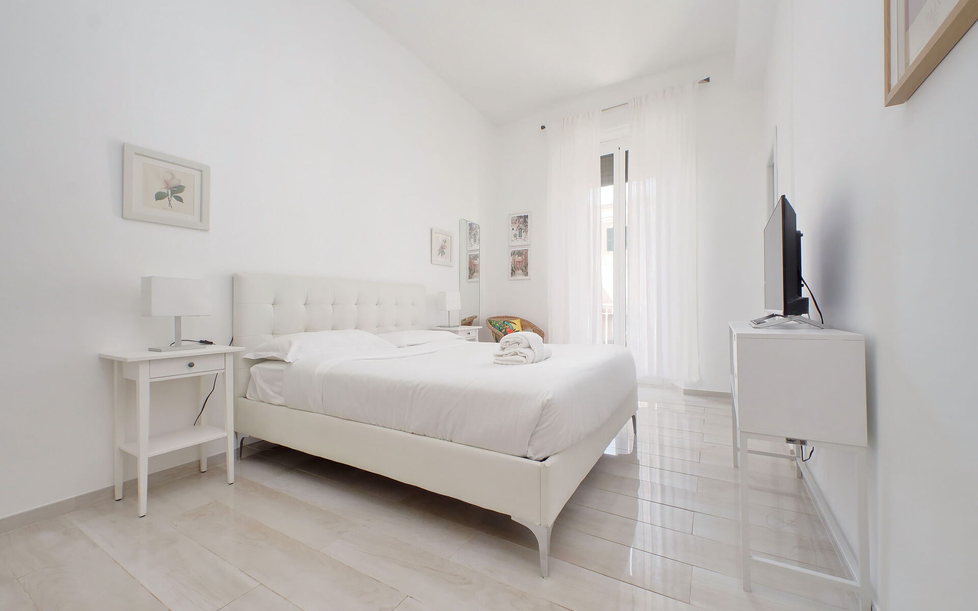 La terza camera da letto ha un letto matrimoniale, compodini, armadio ed una consolle con la televisione. Questa camera da letto ha un piccolo balcone ed il bagno en suite.
