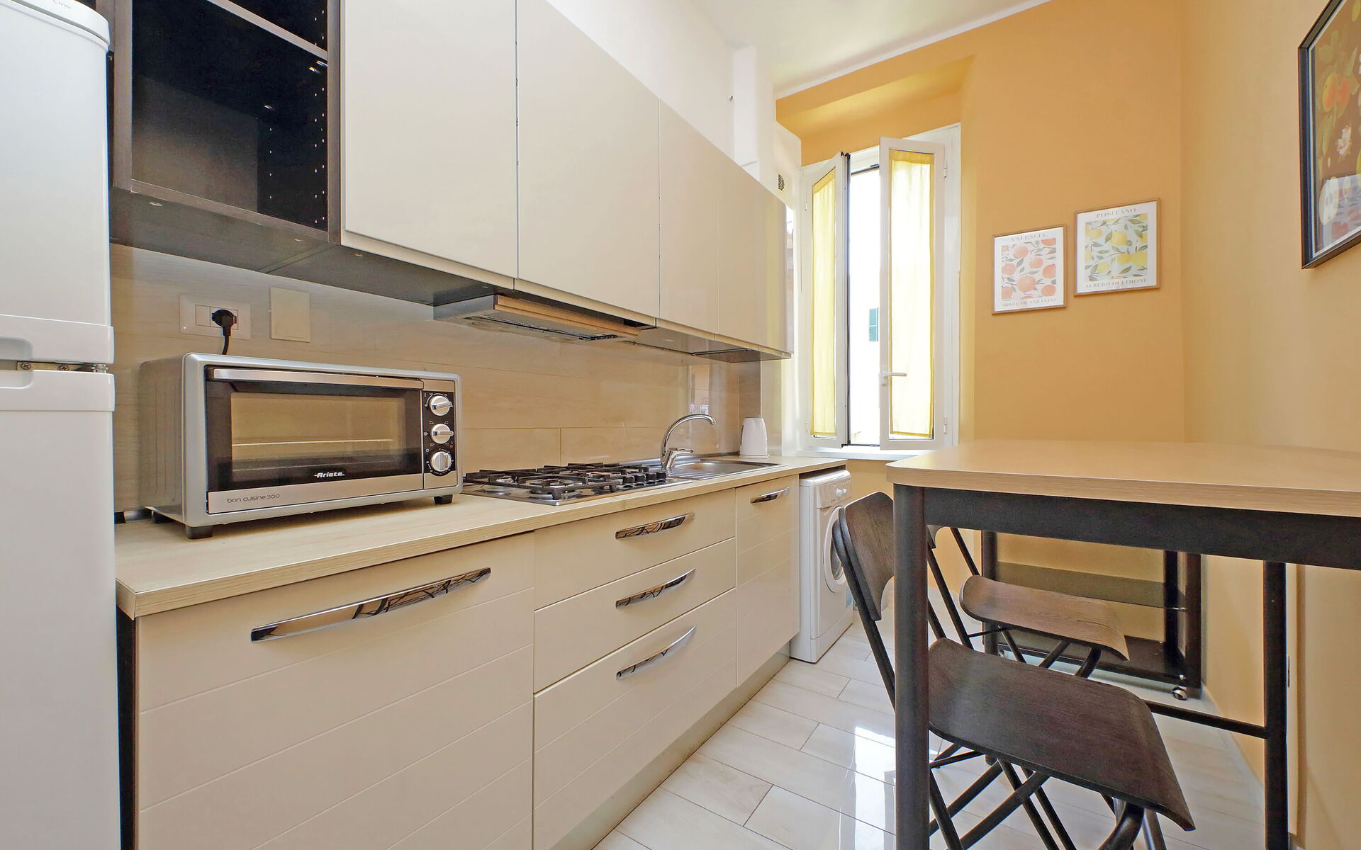 Ventilatore a soffitto, Freezer, Frigo, Ferro da stiro, Macchina da caffè (Italiana), Piano Cottura, Tostapane, Lavatrice, Cucina ben attrezzata