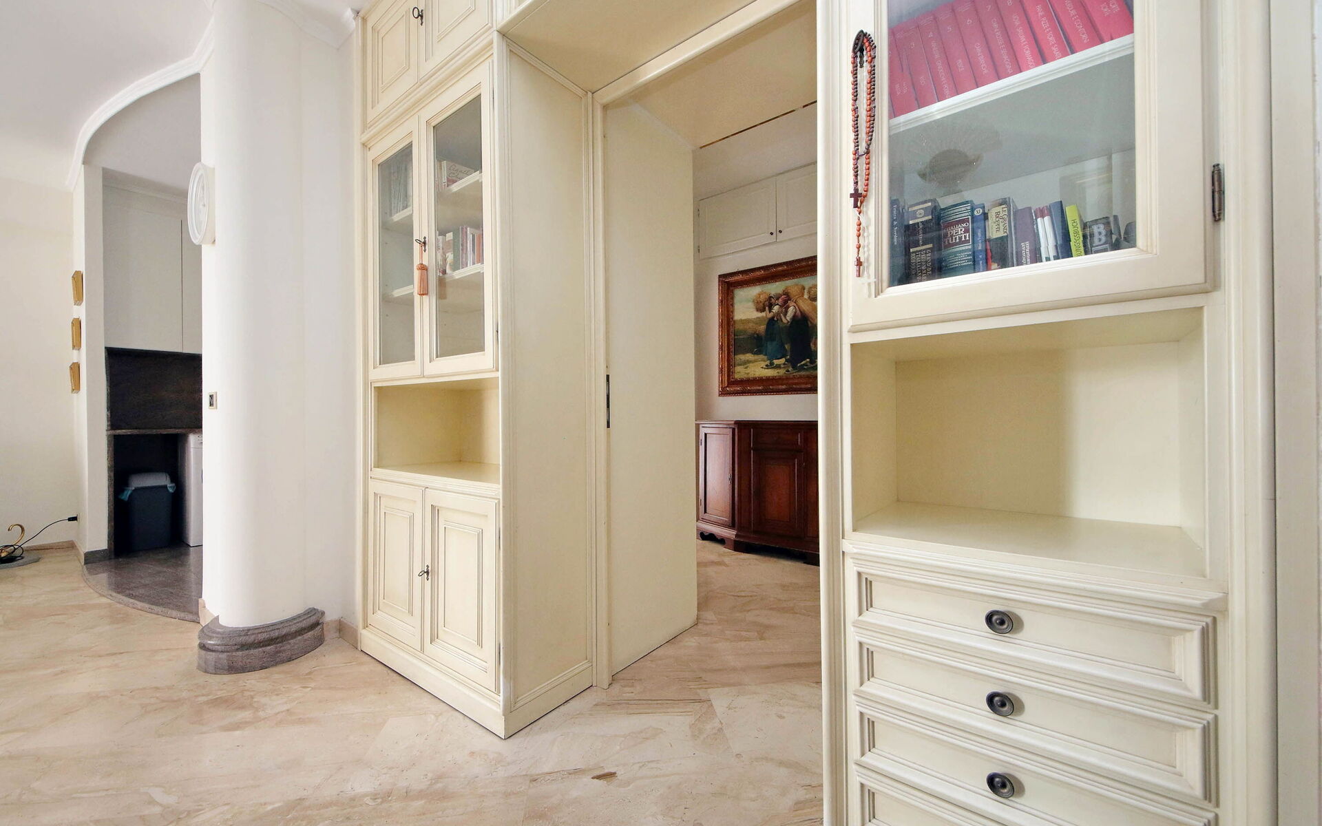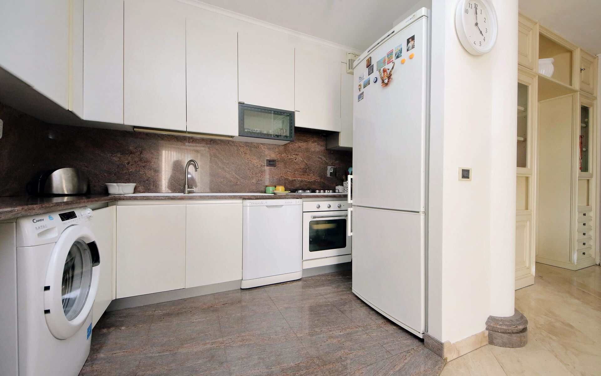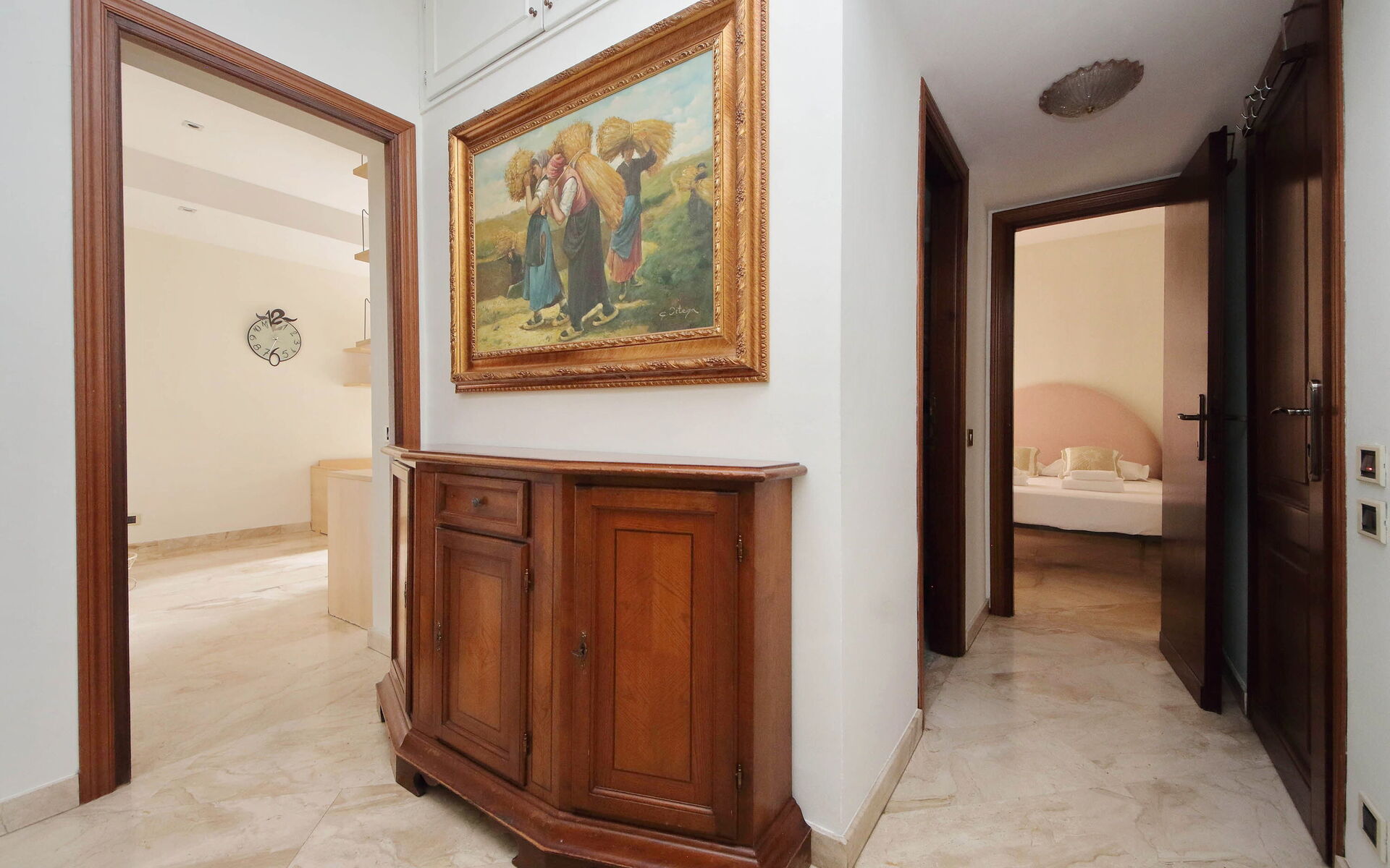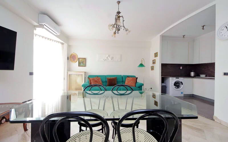 L'appartamento è composto da due camere da letto, due bagni, cucina e soggiorno con affaccio interno. L'appartamento è dotato di un impianto di aria condizionata solo nel soggiorno.