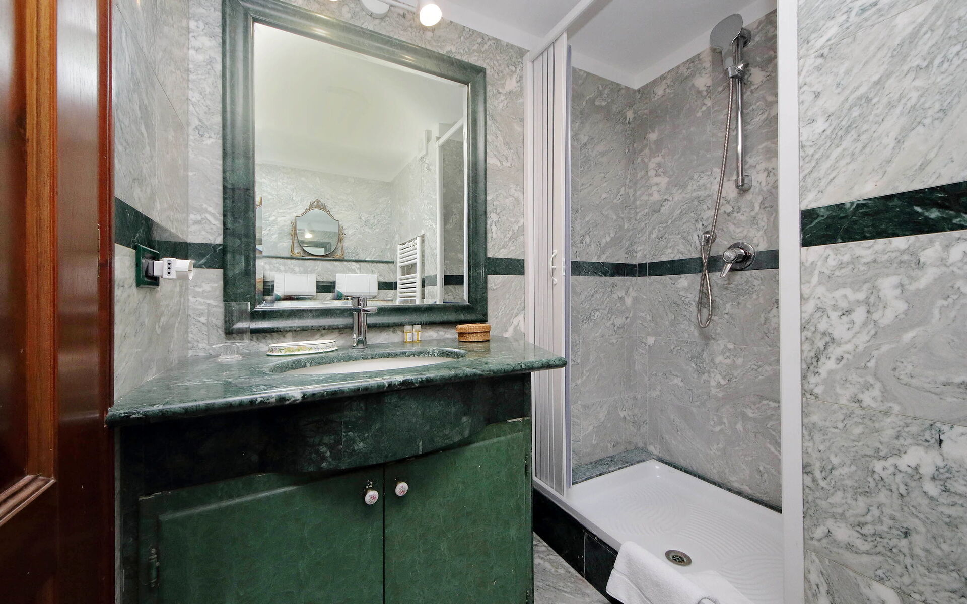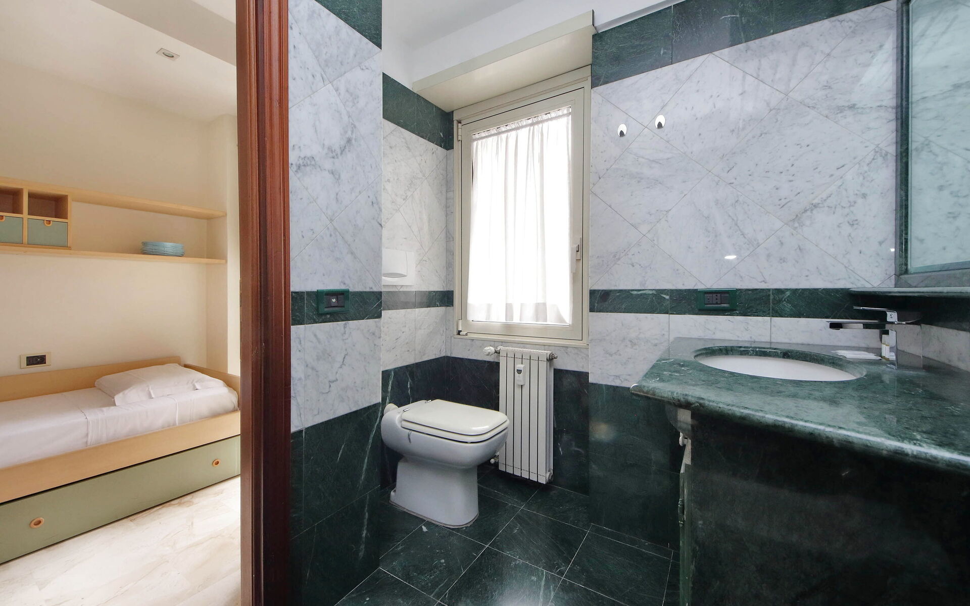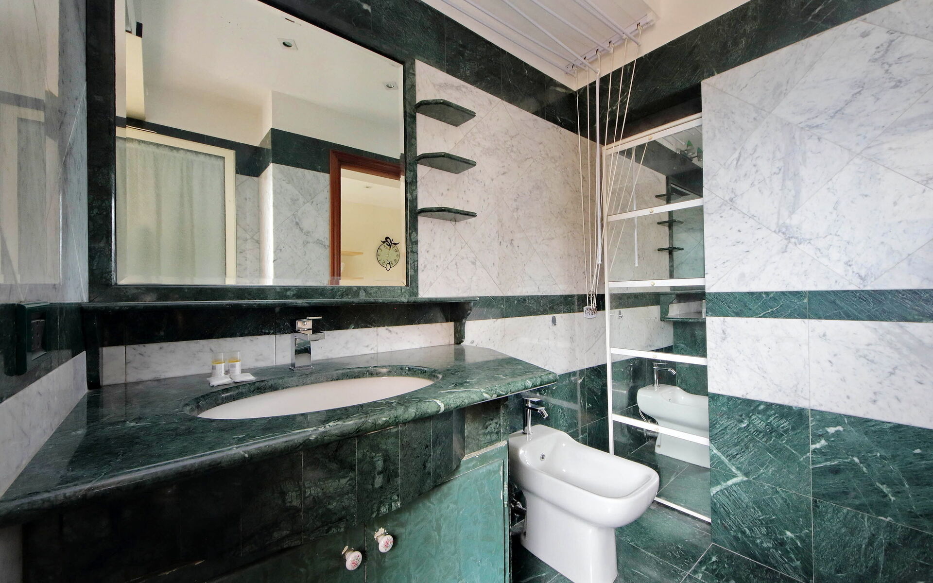 Il secondo bagno dispone di solo sanitari e lavandino(non ha la cabina doccia) ed è en-suite.