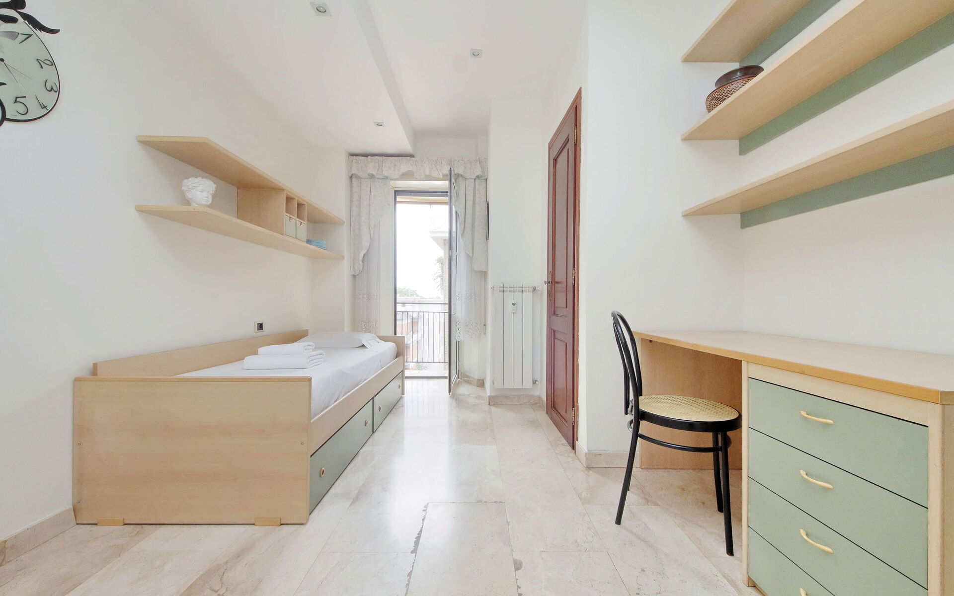 La seconda camera da letto ha un letto singolo(80cm x 190cm) ed una scrivania.