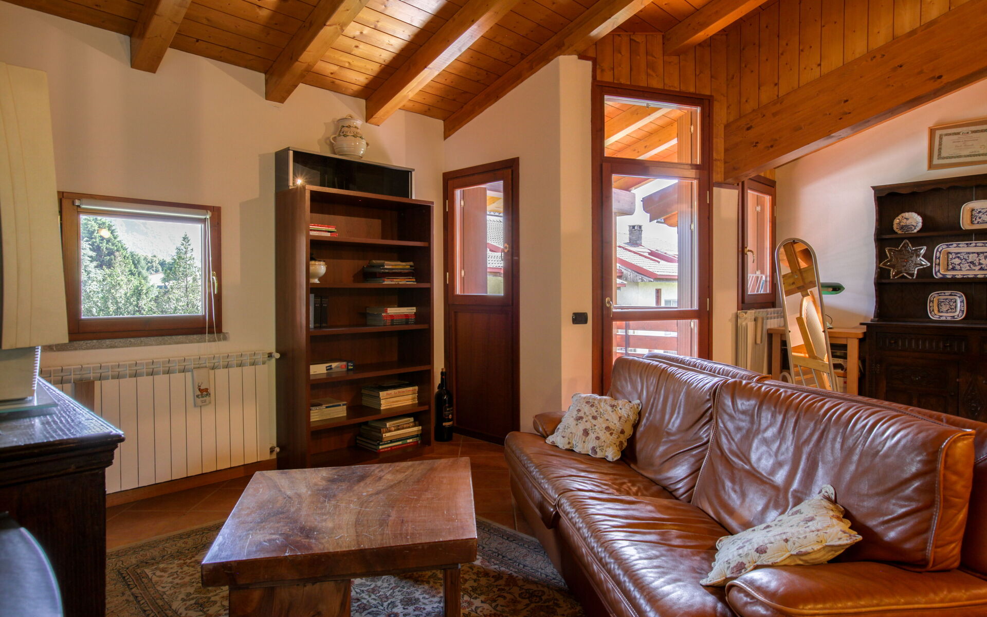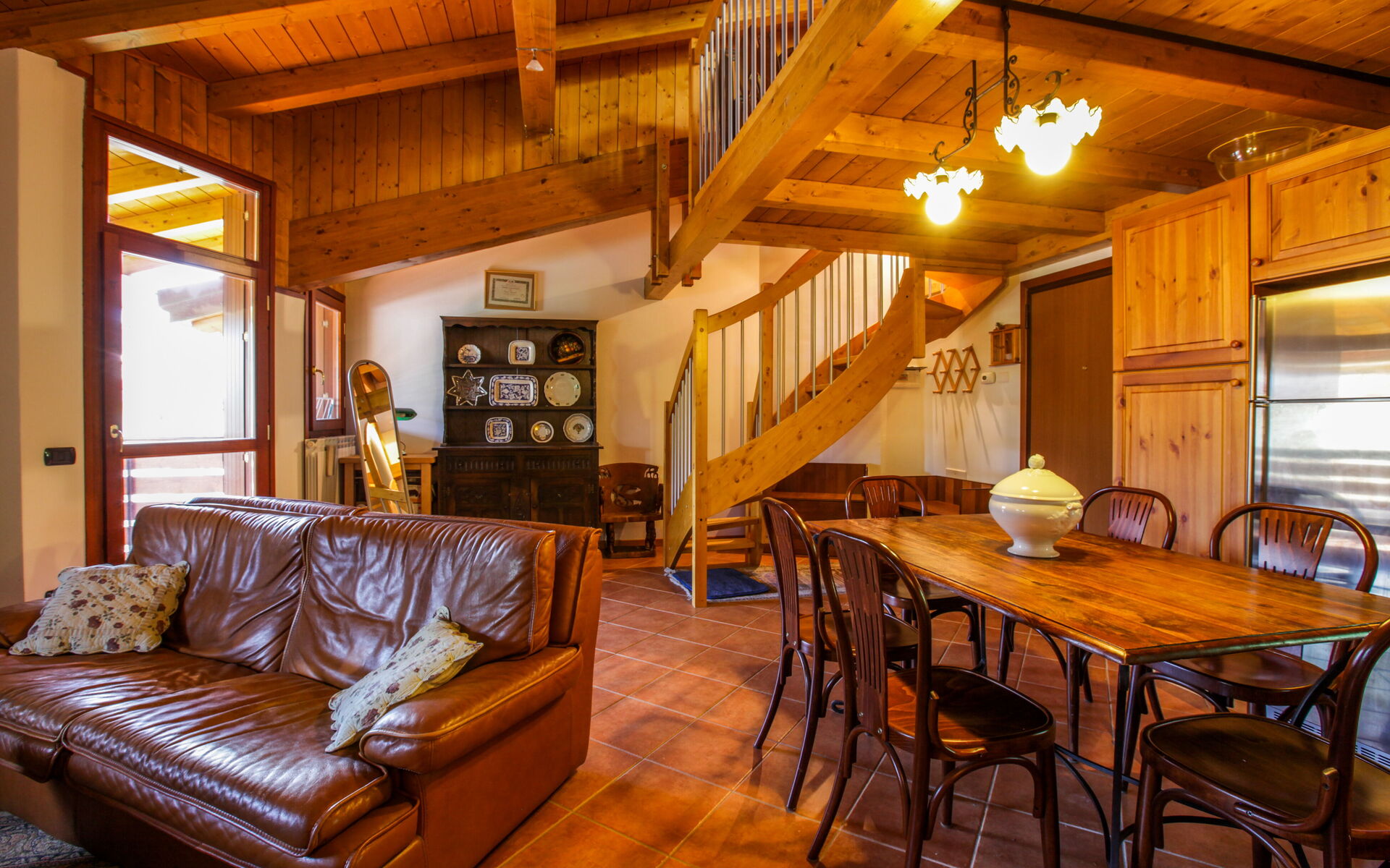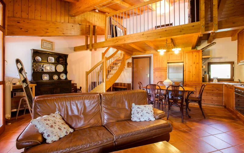 L’appartamento unisce il fascino alpino tradizionale (con dettagli in legno naturale) a tutti i comfort moderni.