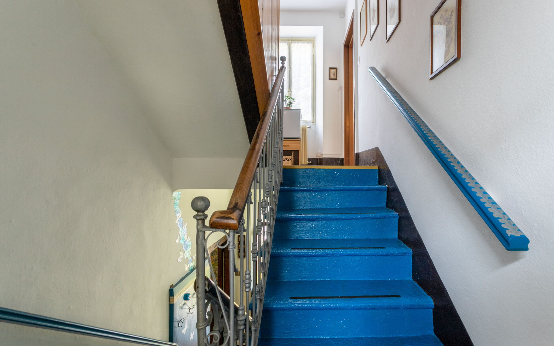 An internal staircase (nine steps) leads to the mezzanine floor, where there is a large bathroom with shower.