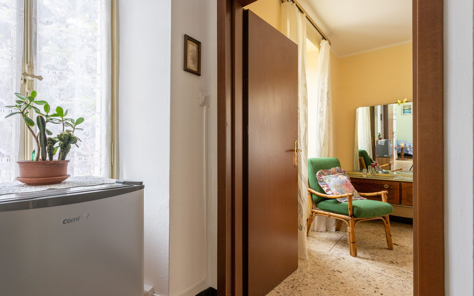 From here, there is access to a large terrace, perfect for relaxing outdoors.