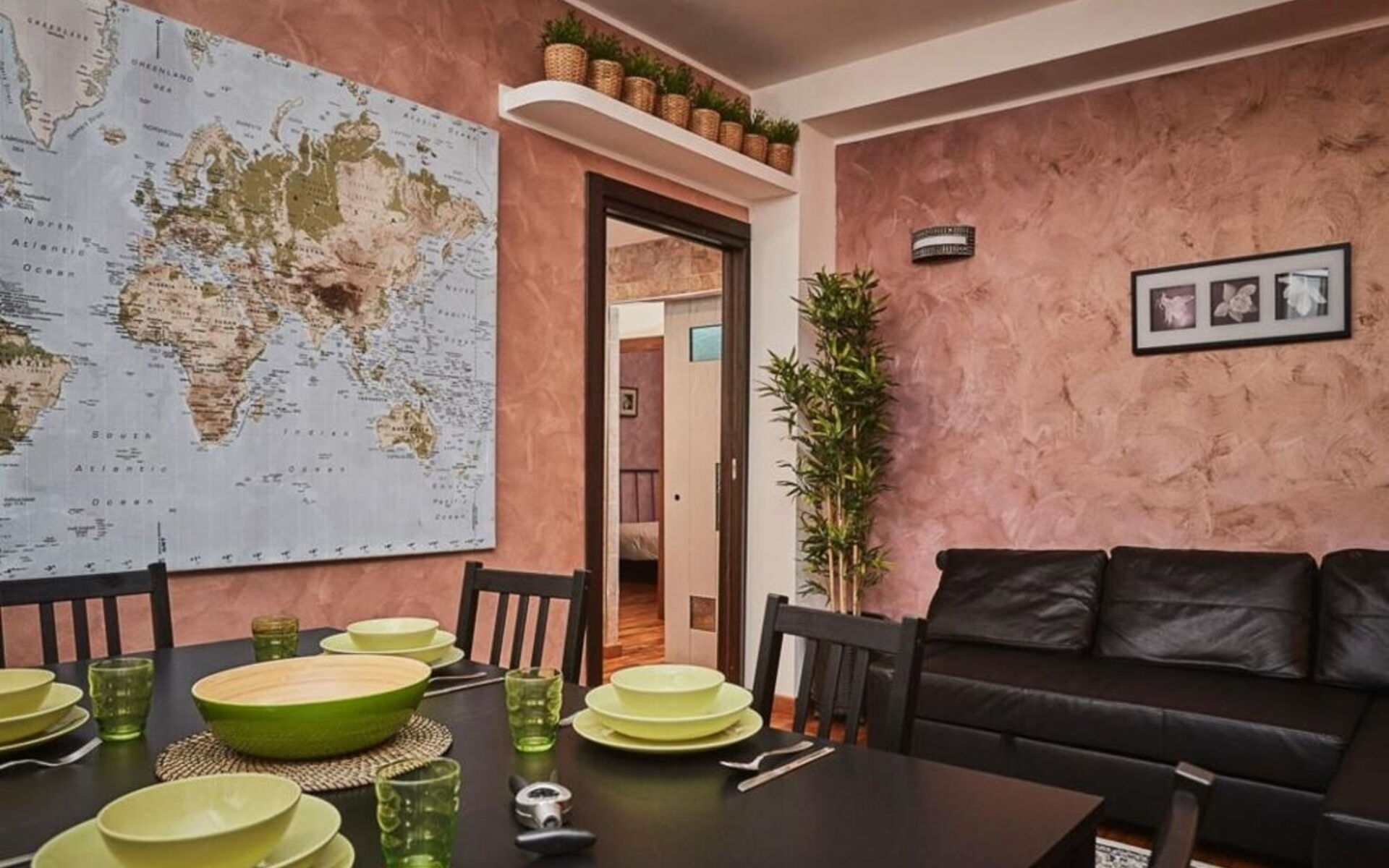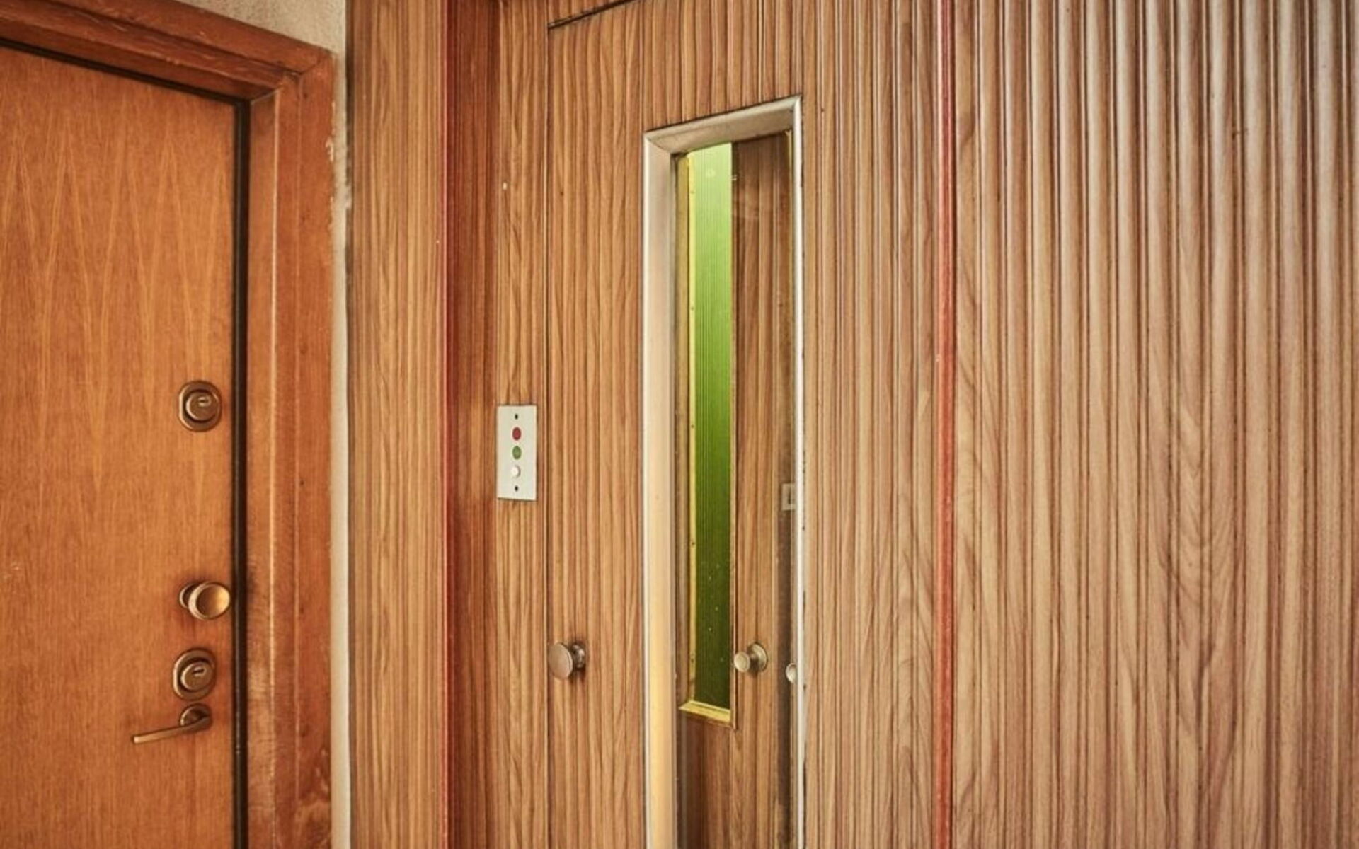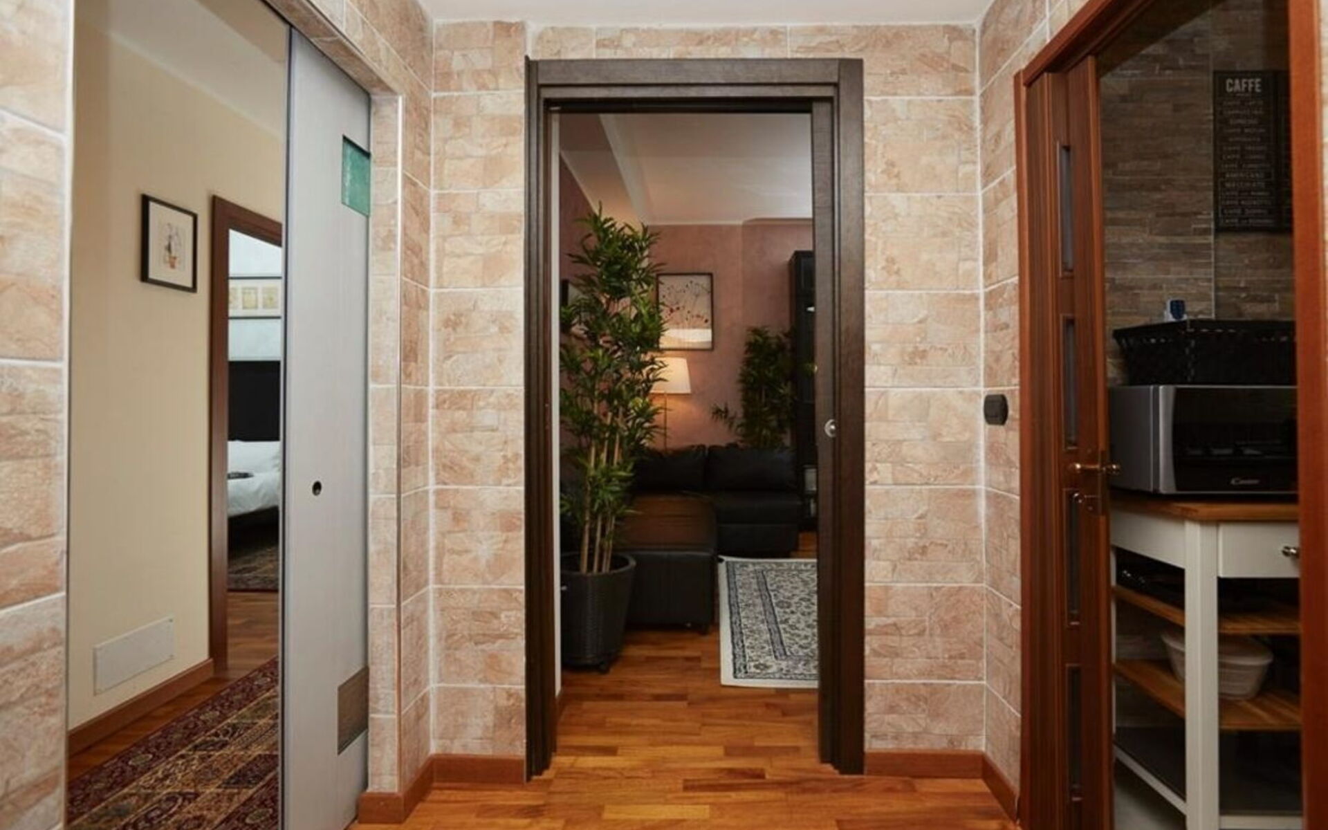 L'appartamento si apre su un ingresso: tre diverse porte scorrevoli conducono alle tre zone dell'appartamento.