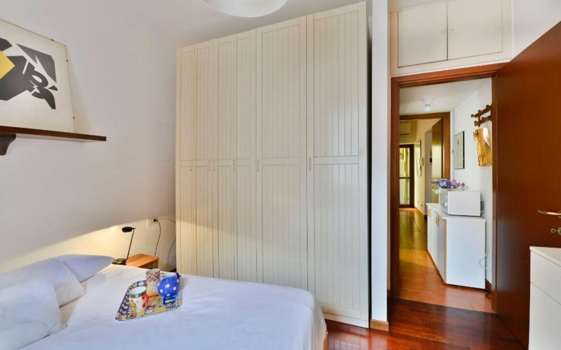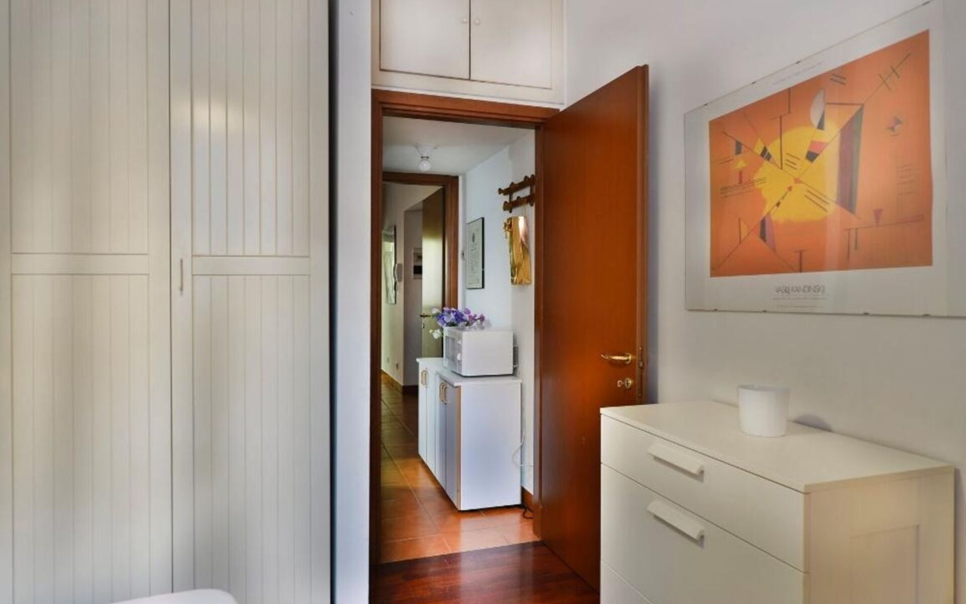 L'appartamento comprende inoltre una camera da letto matrimoniale con un armadio a quattro ante ed un bagno dotato di cabina doccia.
