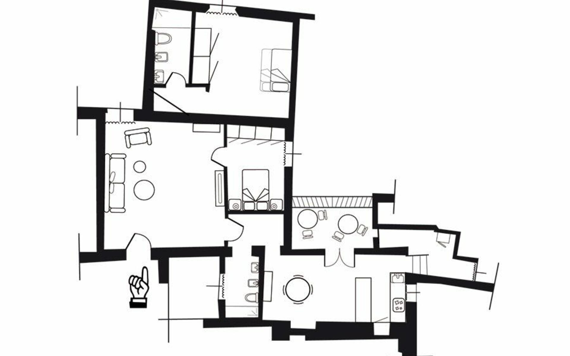 All’ingresso si viene accolti da una piacevole zona giorno con soggiorno e area pranzo, un primo bagno con doccia e una cucina completamente attrezzata che si apre direttamente sul terrazzo panoramico, uno dei punti di forza dell’appartamento. La cucina è inoltre collegata a una comoda zona lavanderia.