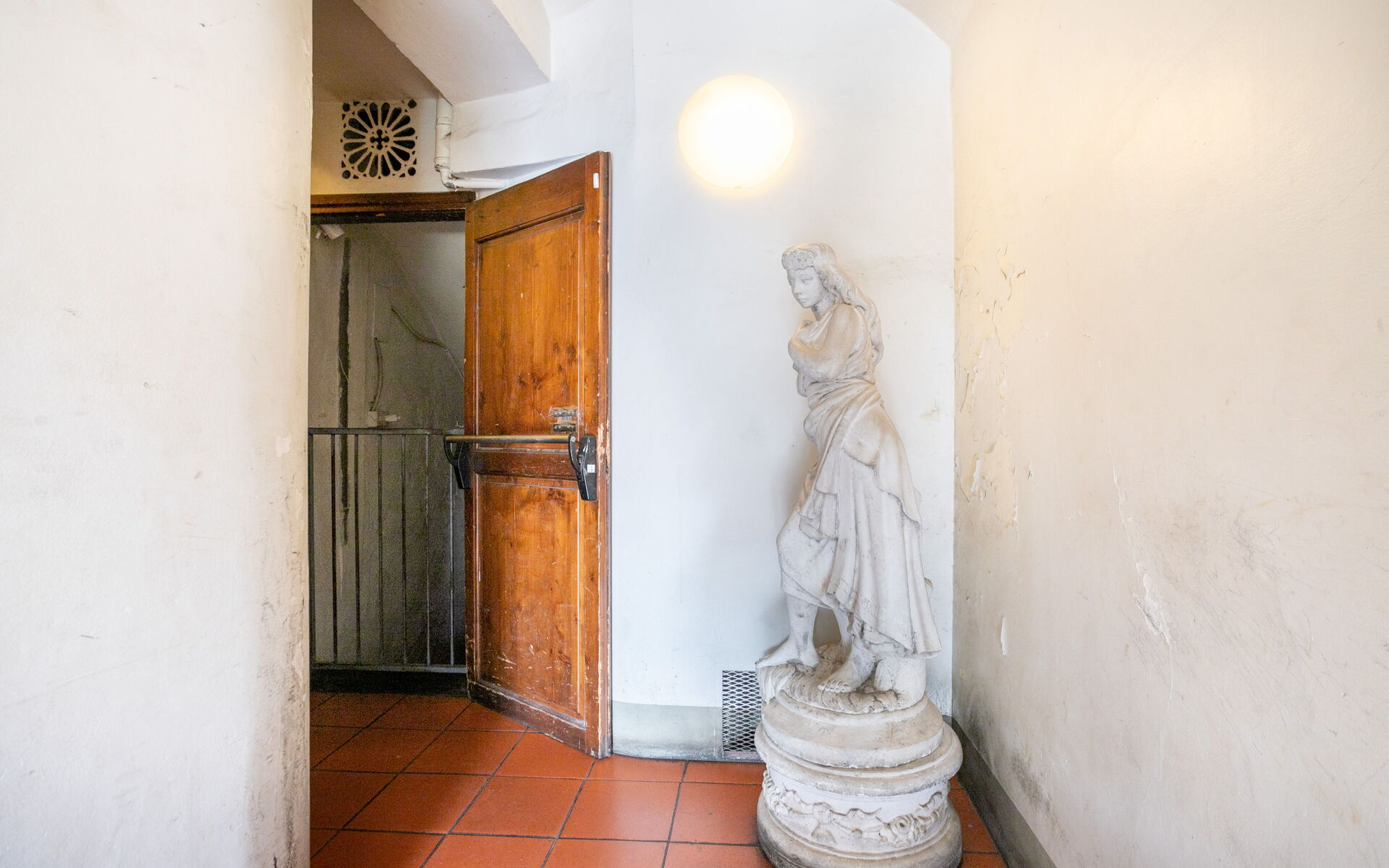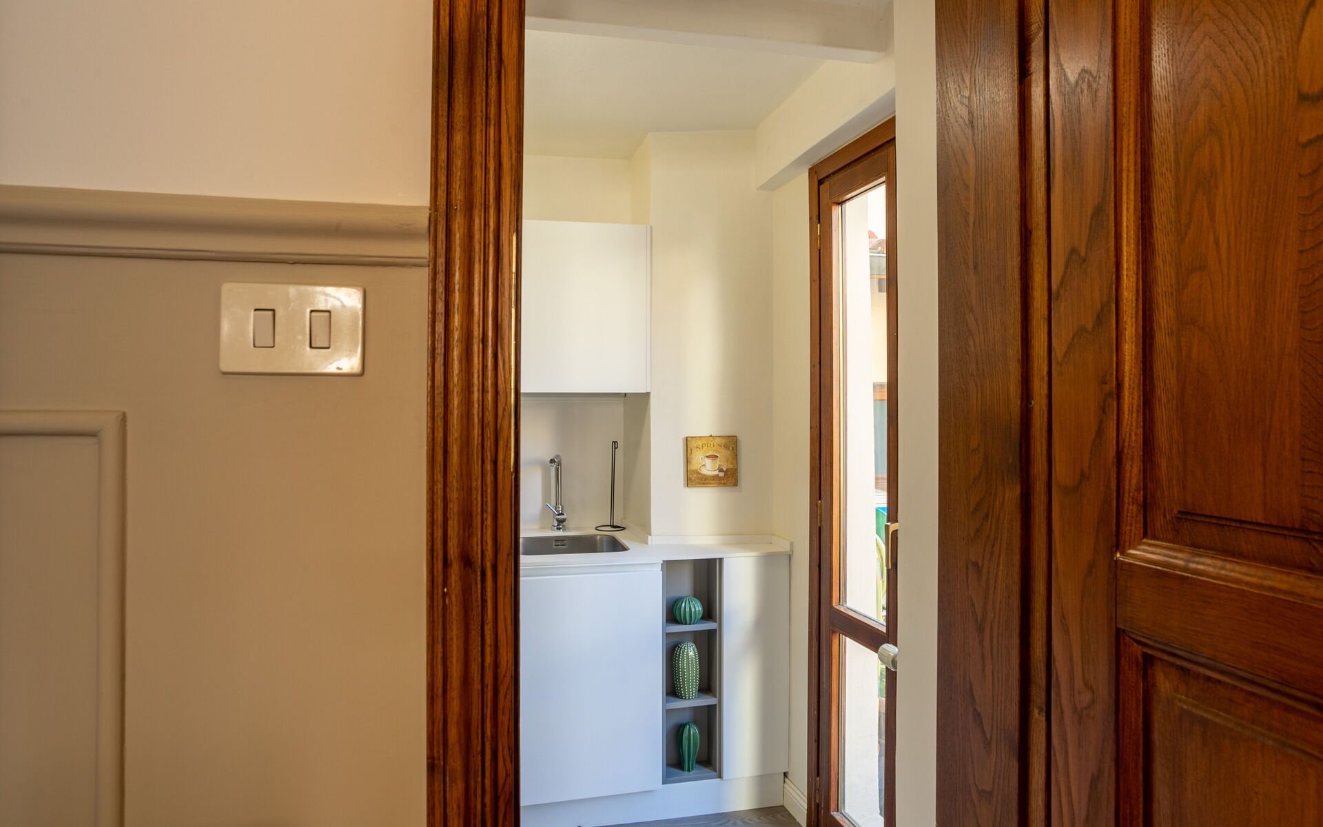 Arredato con raffinati pezzi d’antiquariato, l’appartamento esprime un autentico stile fiorentino. All’ingresso si viene accolti da una piccola anticamera, dalla quale si accede: