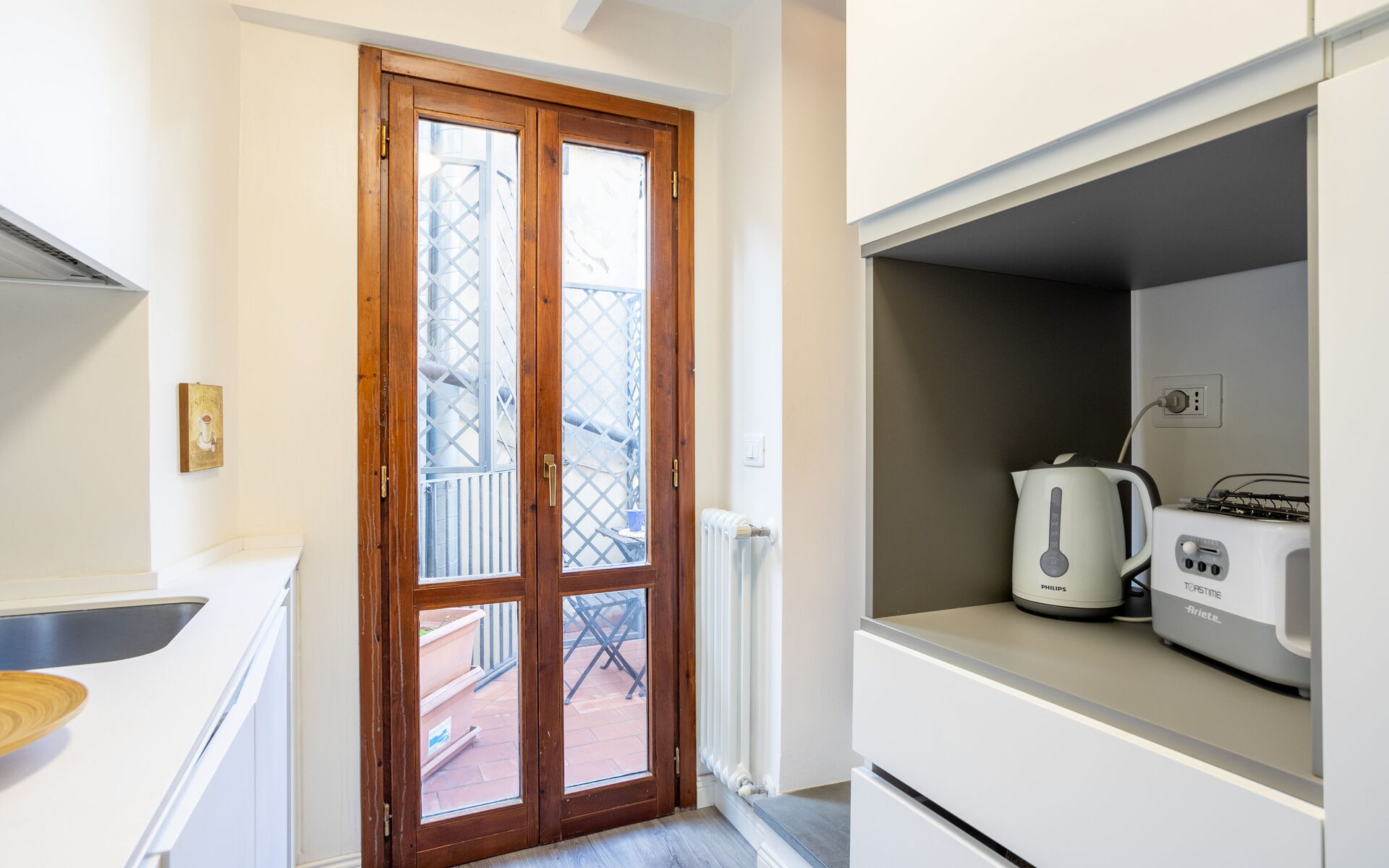 This apartment is beautiful. The rooms are large and the windows provide great light. It's in a perfect location in the heart of Florence. The bed was comfortable, the kitchen was fully equipped and having a washing machine was a wonderful perk. The management was quick to respond when we had questions. The only negative was that we could not use the tiny terrace because the smells from exhaust vent from the restaurant downstairs was very strong.