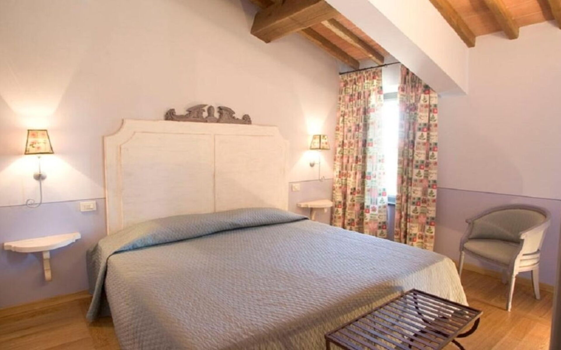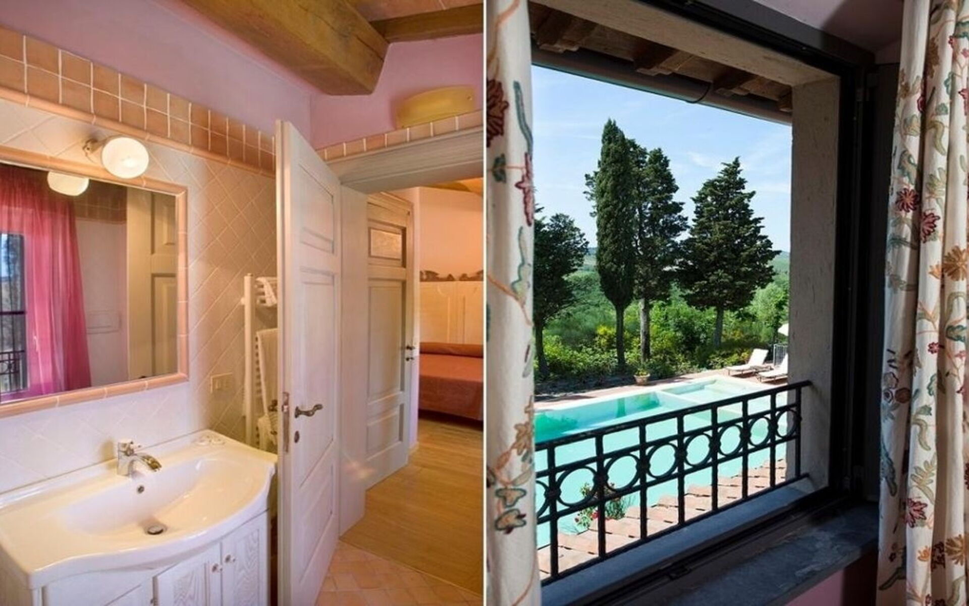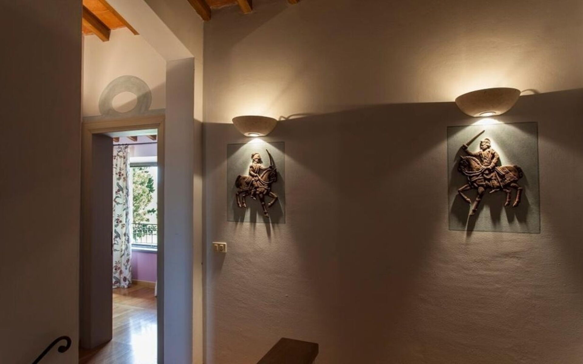 Primo piano: Il piano superiore, raggiungibile tramite una scala interna, è formato da 5 camere matrimoniali, ognuna dotata del proprio bagno ensuite con doccia (uno è attrezzato anche con vasca), 1 piccola camera doppia (i cui letti possono essere uniti se necessario) con bagno ensuite con doccia.
