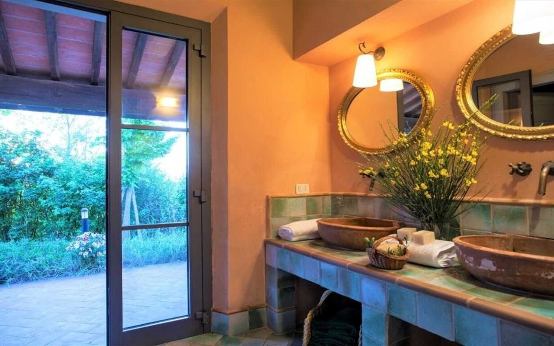 La proprietà dispone di un bellissimo giardino privato recintato, caratterizzato da aree pavimentate in piastrelle di terracotta e pietra, intervallate da aiuole.