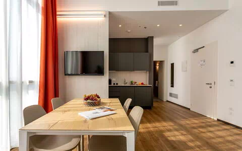 Accogliente loft di 45 m², caratterizzato da ampie vetrate e spettacolari doppie altezze che rendono gli ambienti estremamente luminosi e regalano una splendida vista panoramica sulla città. Le finiture di pregio e gli arredi di alta qualità esaltano il design contemporaneo, offrendo un soggiorno elegante, confortevole e di livello superiore.