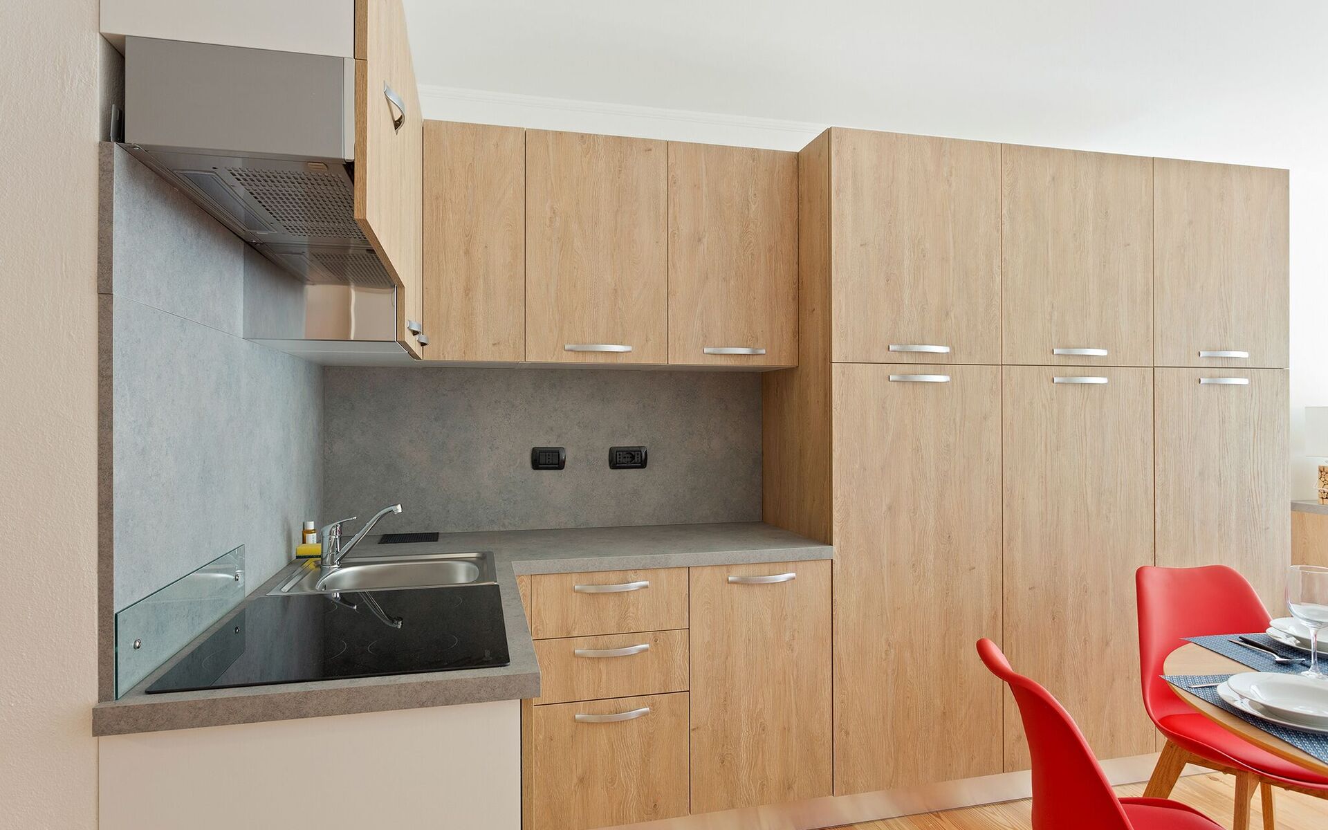 Dishwasher, Exit to the garden, Freezer, Fridge, Italian Coffee Machine, Microwave, Satellite TV, Smoke Detector, Sofa Bed Double, Stove Top, Television, Toaster, Well Equipped Kitchen, WiFi Internet, Dining Table