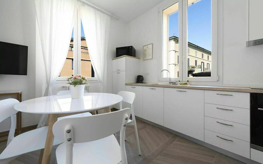 The apartment was completely renovated in October 2020 to ensure guests a pleasant stay in a refined and comfortable environment. Although overlooking via Massarenti, one of the most popular routes to reach the city center, the property is extremely quiet, thanks to high quality window fixtures. The building restoration was eco-sustainable: the construction of the thermal coat and the installation of solar panels on the rooftop both aimed at excellent insulation of the premises while minimizing the energy footprint of the building. Air conditioning with an air purification system provides a pleasant temperature and a hygienic environment at all times, while the central heating is adjustable via a thermostat.