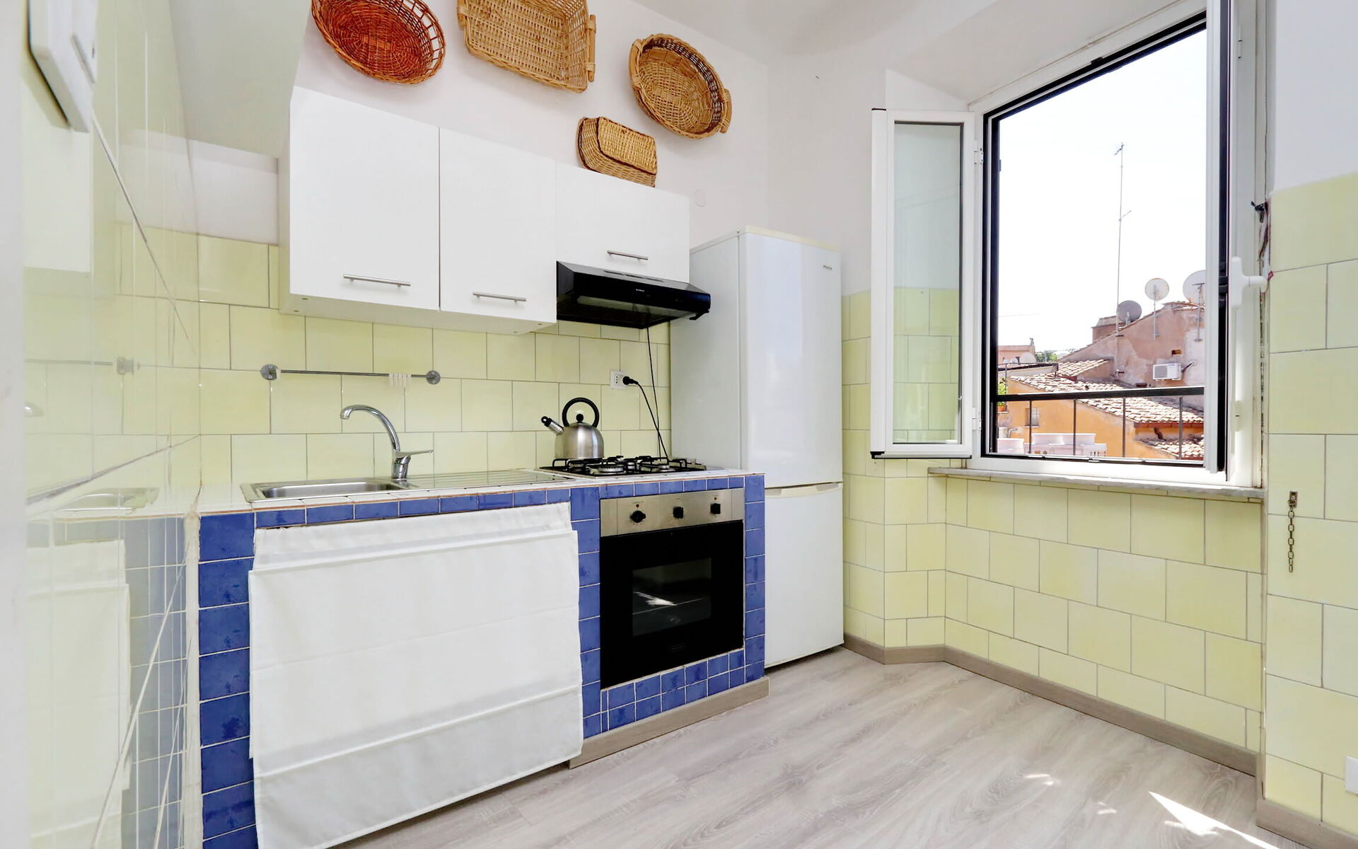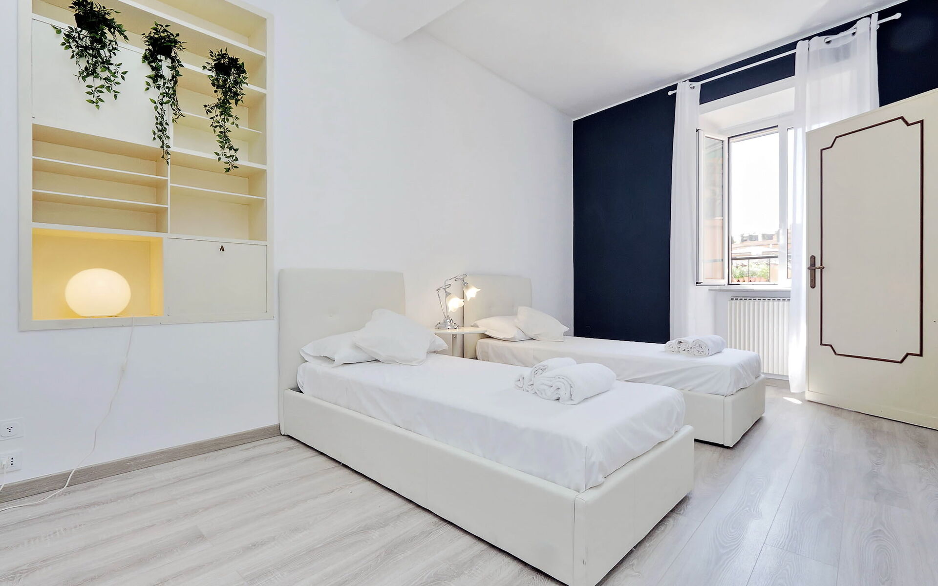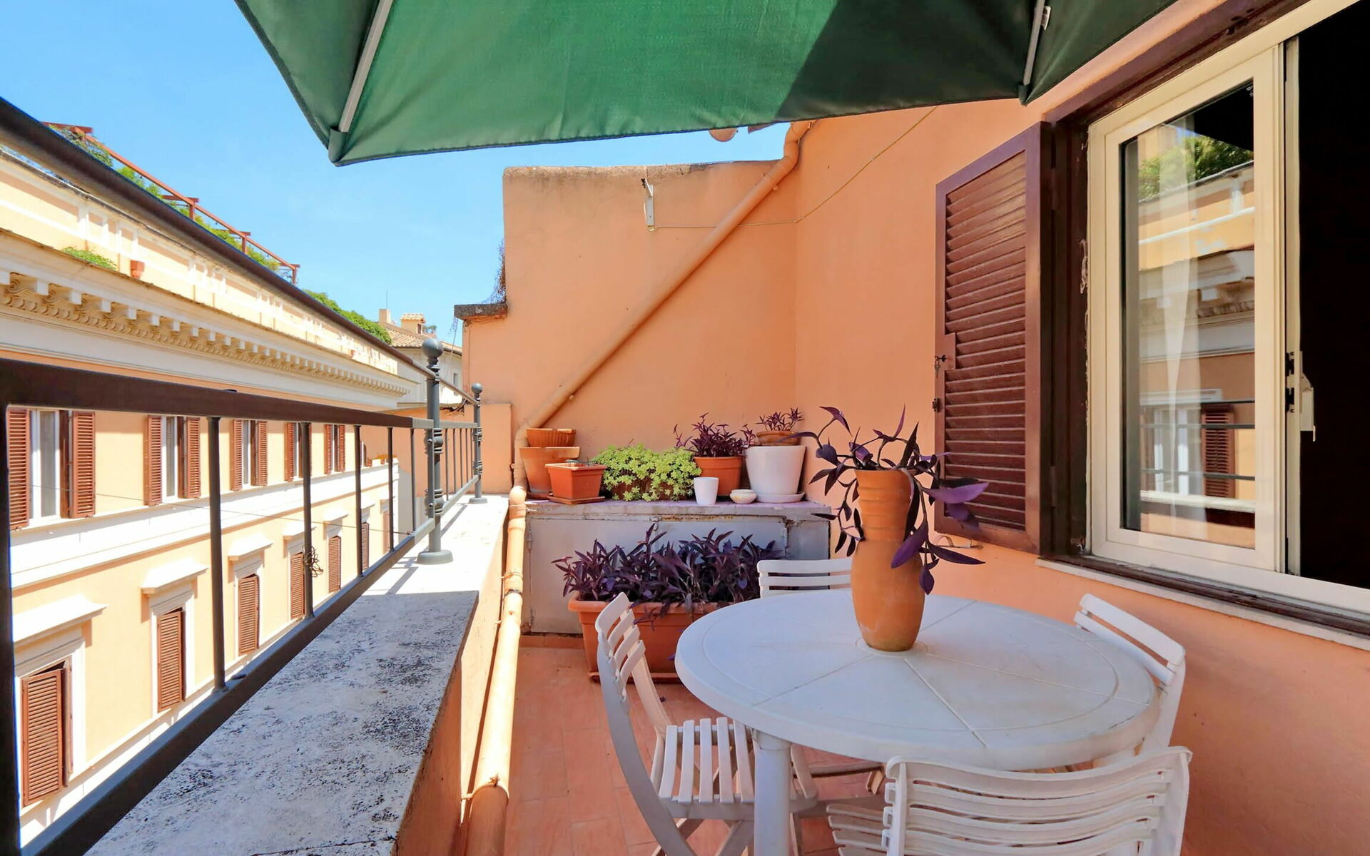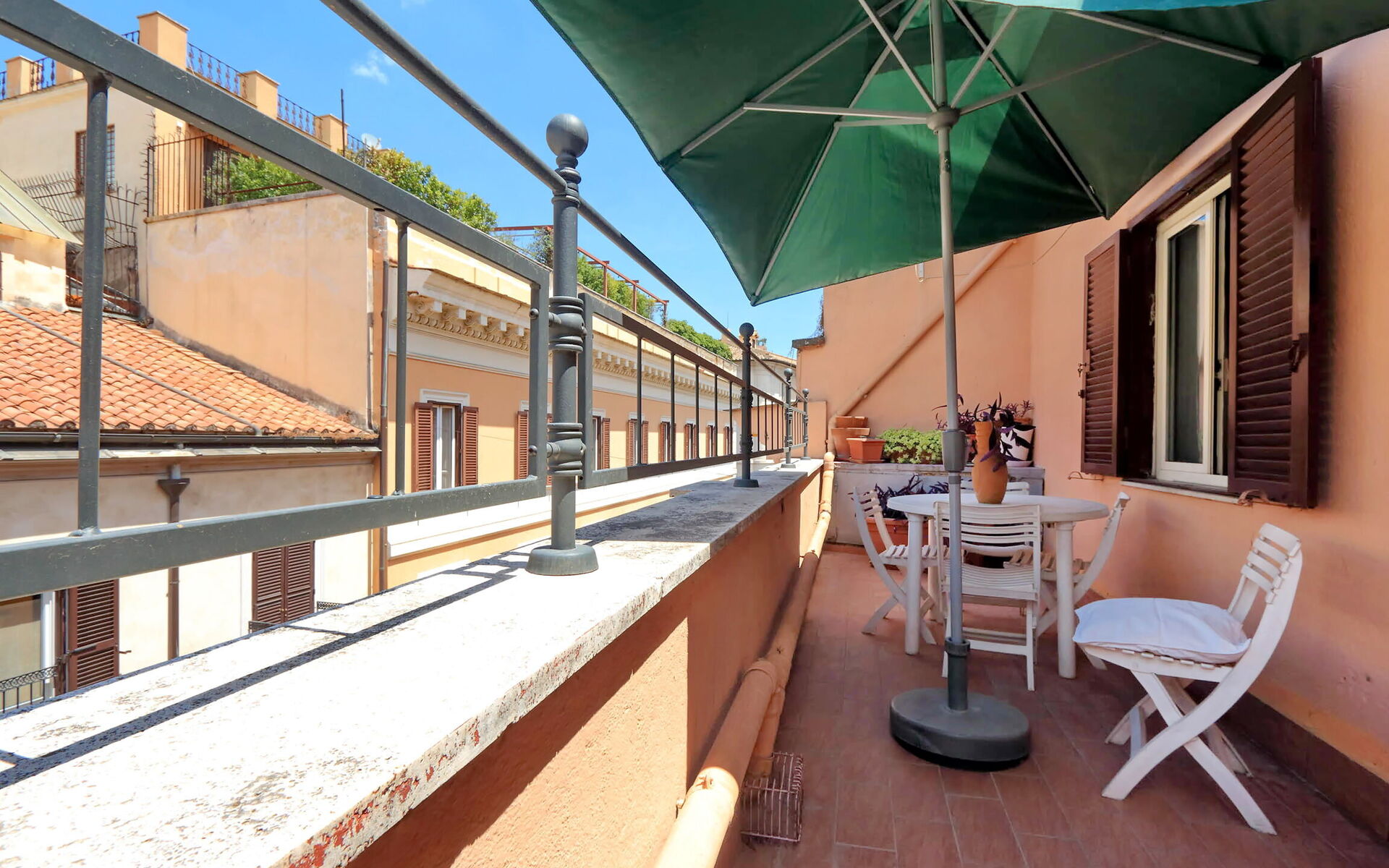 Elegant 130 sqm apartment located on the fifth floor with elevator and with a beautiful sunny terrace from which to admire the Roman sunsets. The most beautiful squares and streets of Rome are within a few minutes walk. Piazza di Spagna is only 500m walking distance from the apartment as well as the Trevi Fountain.