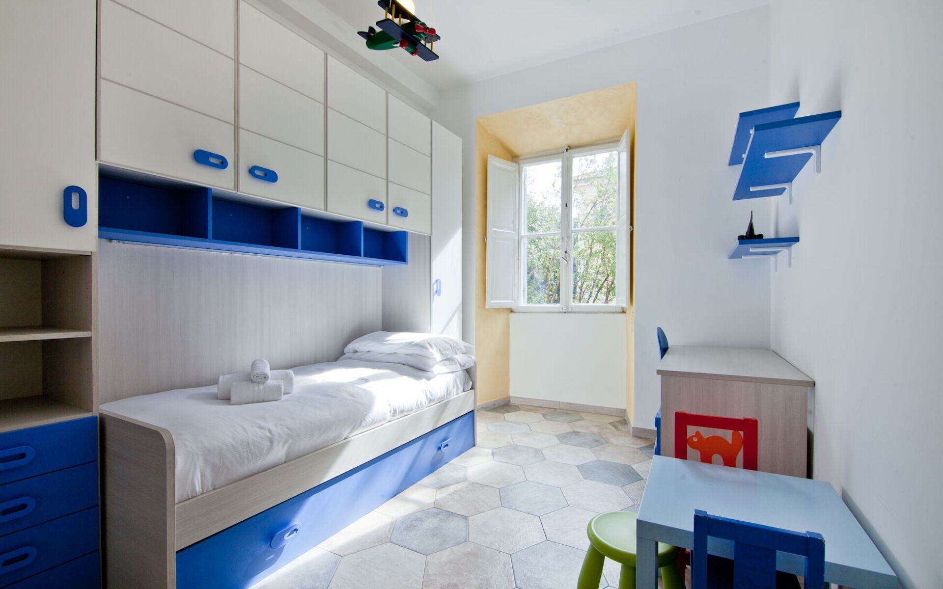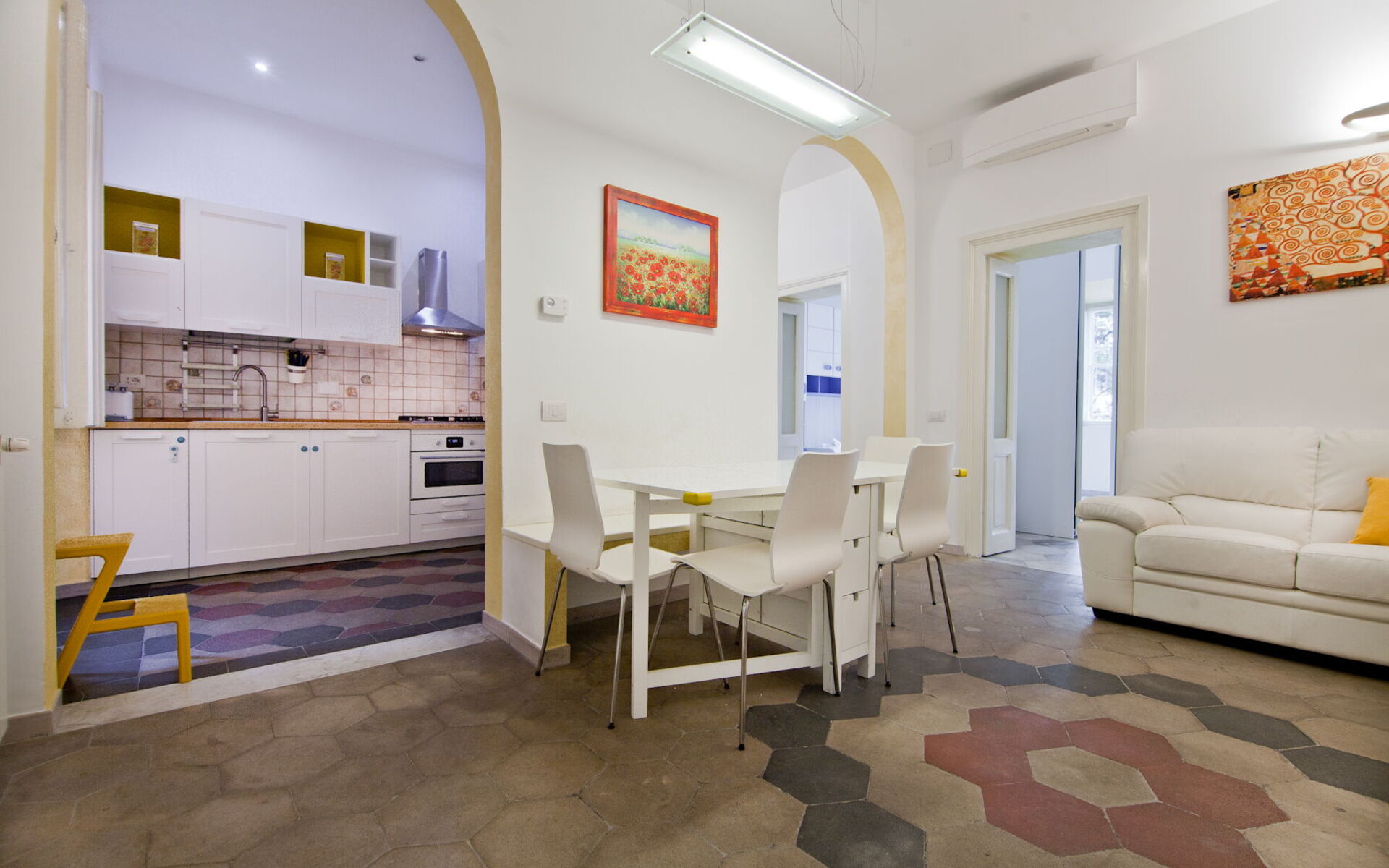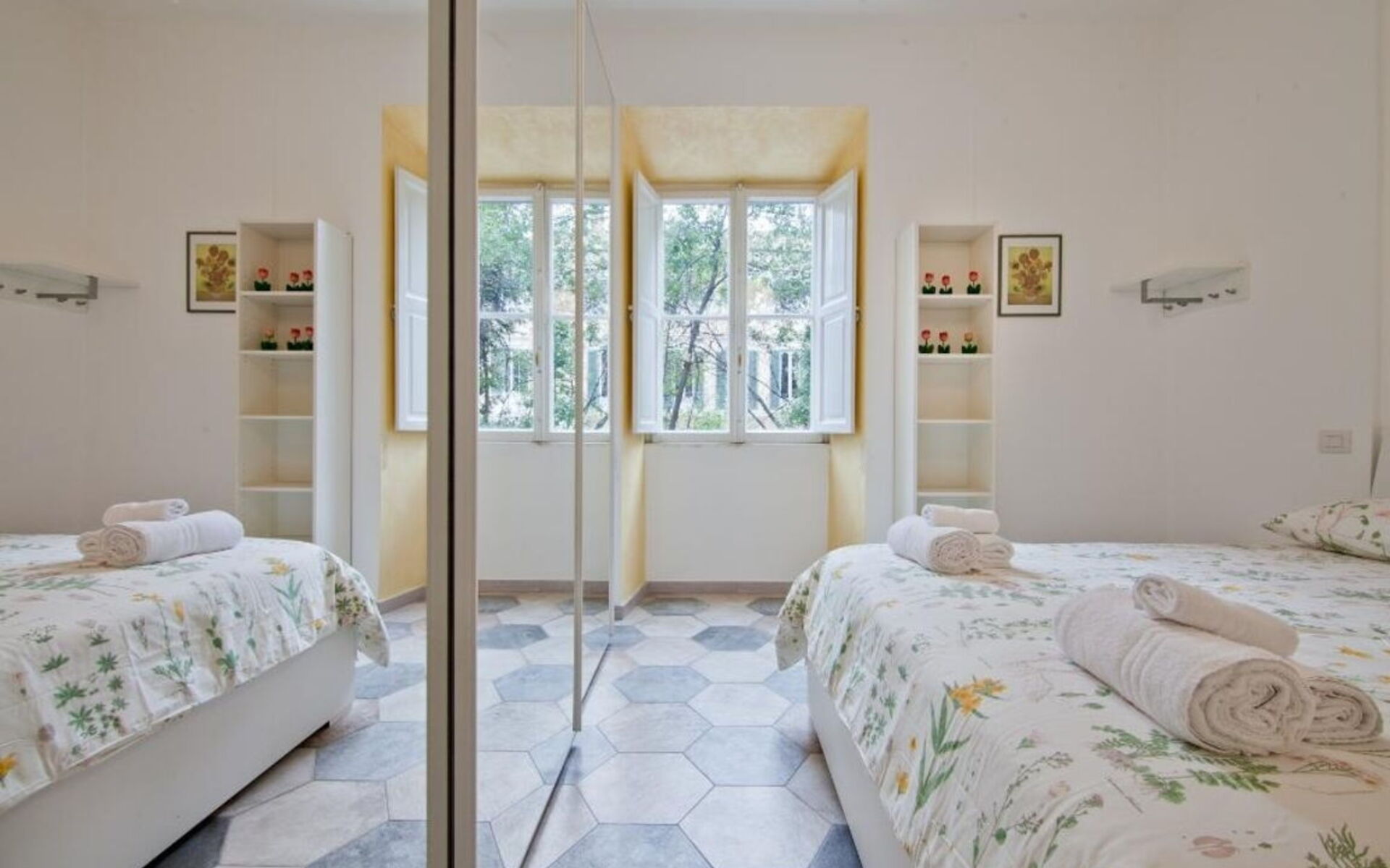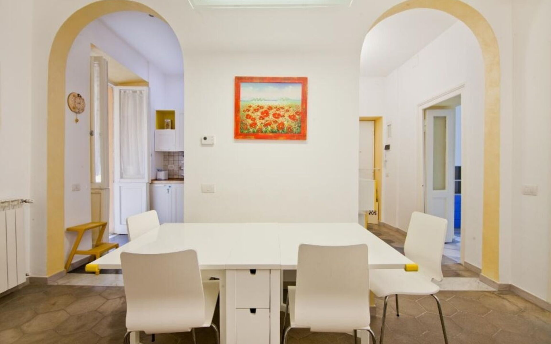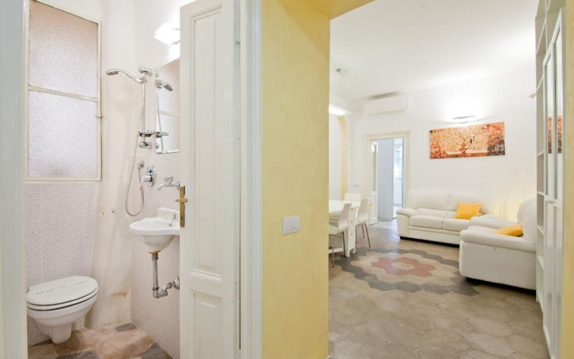 This 90sqm apartment is located on the first floor of a period building with an elevator and consists of a living room, kitchen, three bedrooms and two bathrooms and is in the Salustiano neighbourhood, close and walking distance to the historic centre of Rome. Via Veneto, Piazza Barberini, Villa Borghese and Termini Central Station can be reached within a twenty minute walk. The Metro stations Castro Pretorio and Repubblica are also reachable within a twenty minute walk. Spacious, cozy, lived-in and comfortable, ideal for a long or short stays, for work or to fully experience the capital's tourism. The house is ideal for couples, a group of friends or families with children seeking comfort. The city's major tourist attractions are within walking distance or by public transportation. A few steps from the apartment there is the beautiful Piazza Fiume and the area is full of amazing restaurants, bars, pubs and gelaterie and you will also find cinemas, theaters and all the services you might need.