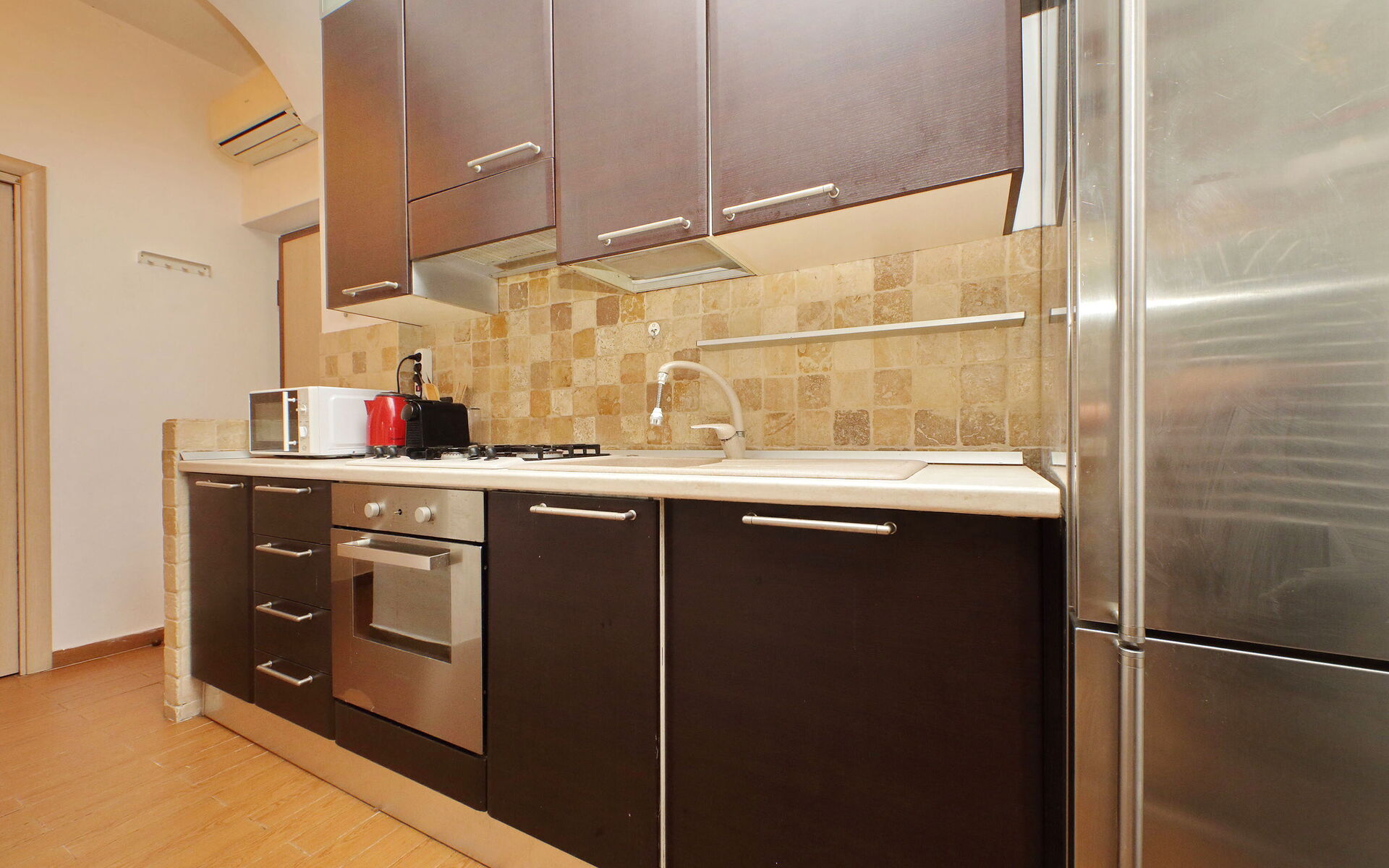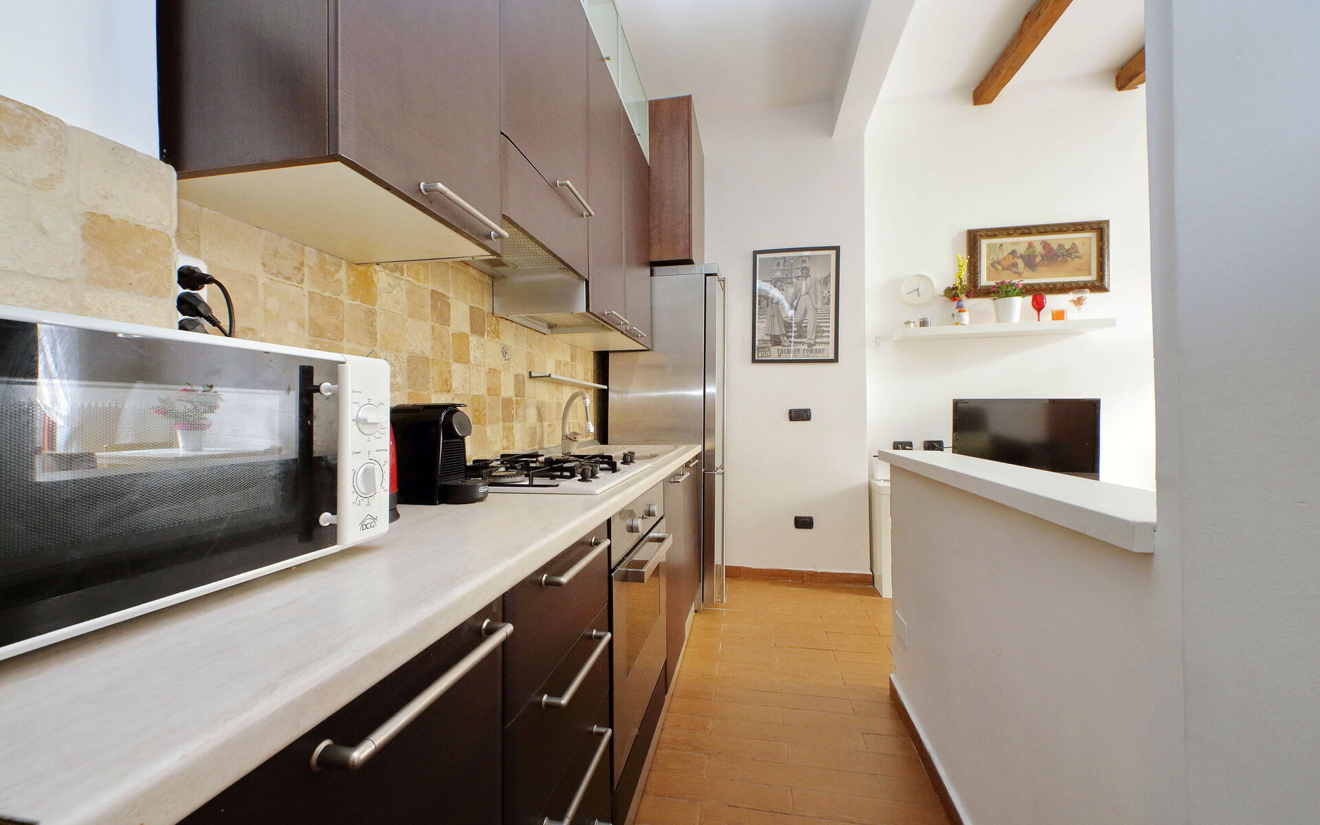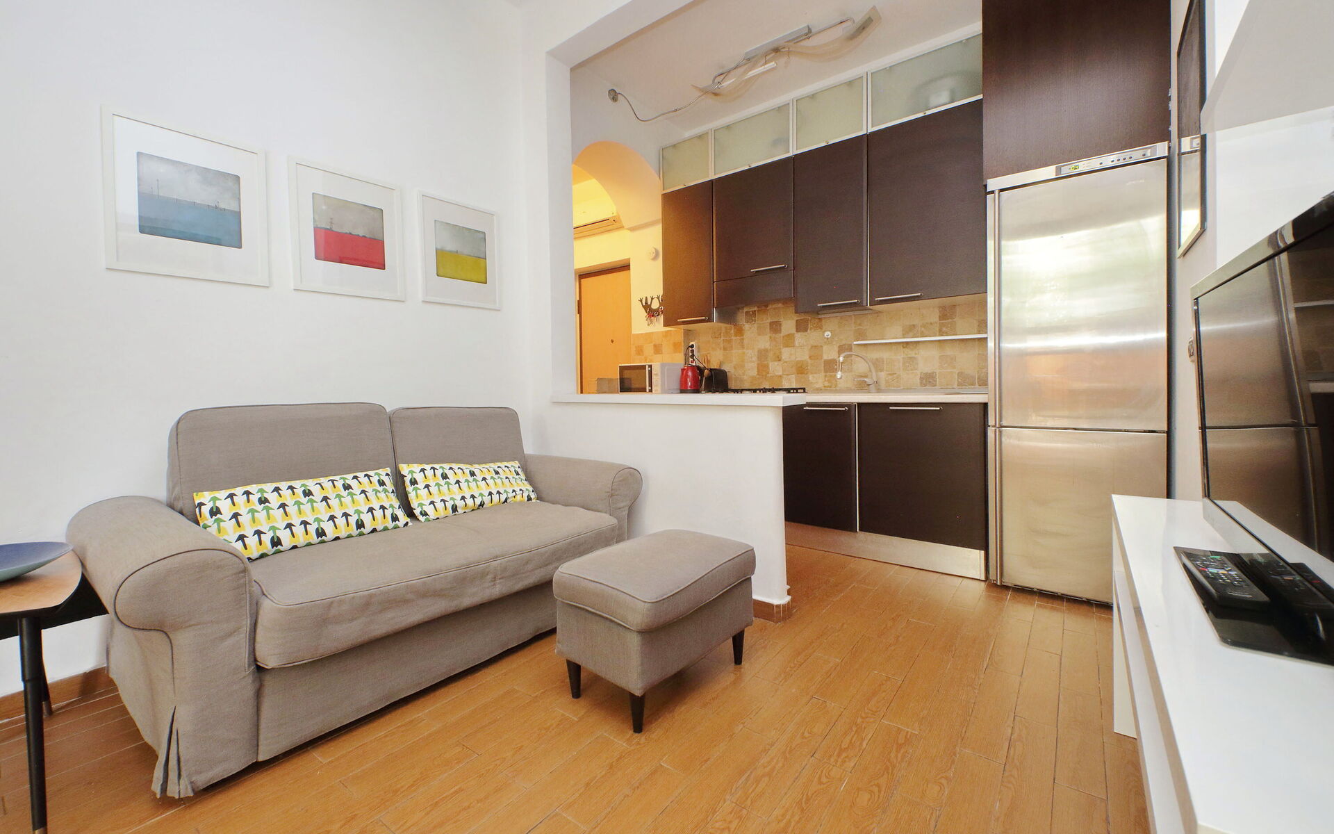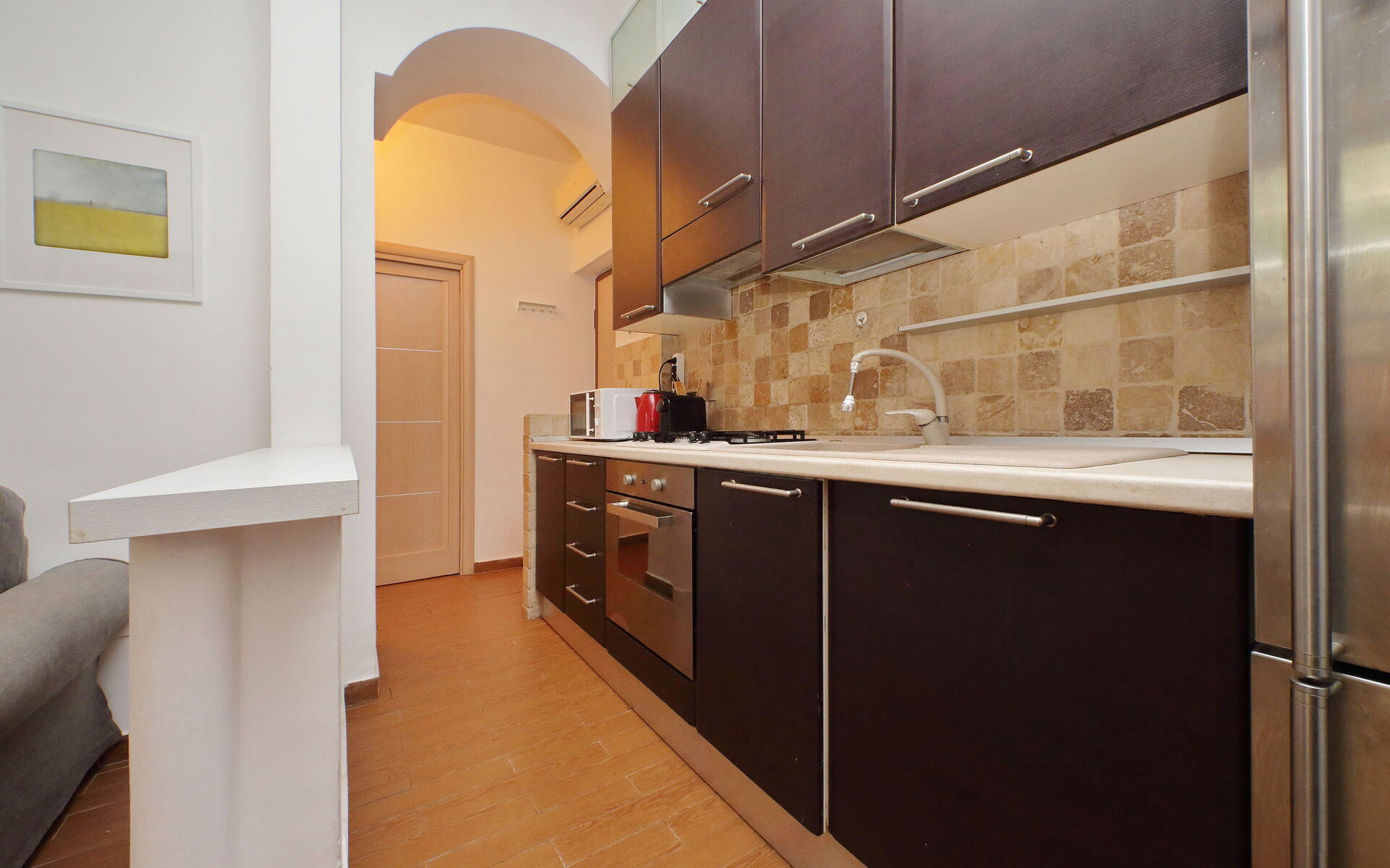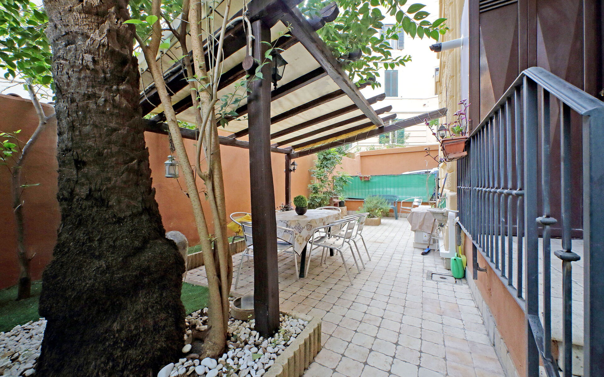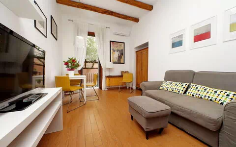 Lovely 60 sqm two-room apartment with a garden on the ground floor and consisting of one bedroom, a living room with a kitchenette, and a bathroom in Trastevere. The Trastevere Station is only a seven-minute walk from the apartment.. The apartment is located between the well-known and loved neighbourhood of Trastevere and Monteverde, a residential area of Rome near the Tiber river. This area is famous for its fountains, statues, and walking paths in parks such as Villa Sciarra and Villa Doria Pamphili, which also offer gardens and outdoor concerts. The Historic centre of Rome is easily reached by tram No. 8.