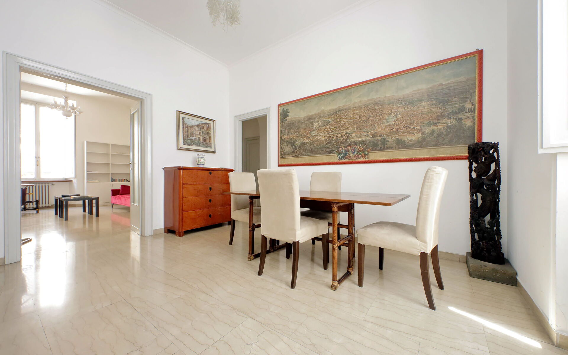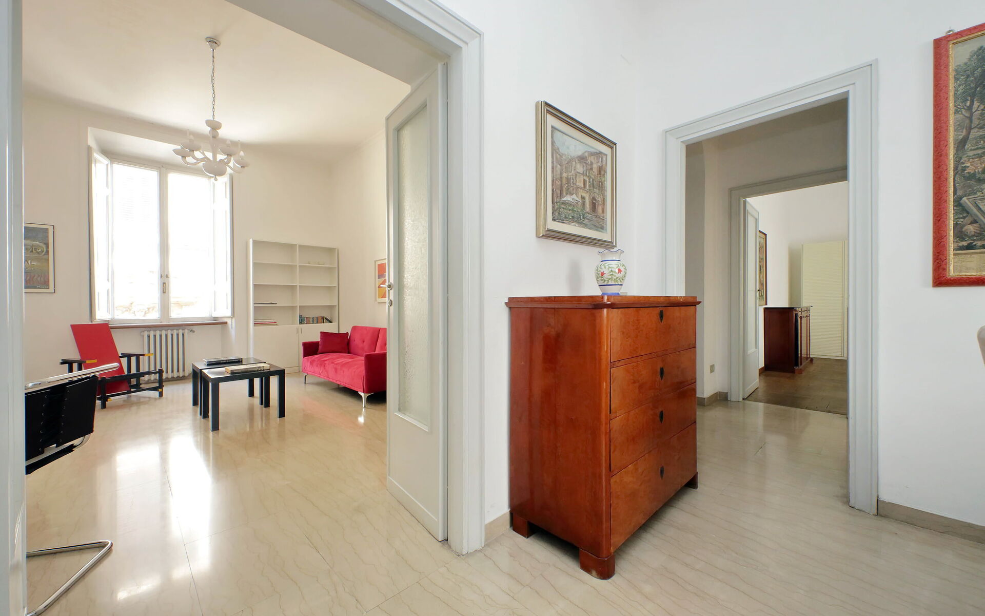 At about 500 meters is the famous Piazza Farnese, where the Farnese Palace stands. It was designed by Antonio da Sangallo and then continued by Michelangelo. Only moments from the apartment (about 20 meters) is Santa Maria in Vallicella church and the nearby Oratorio dei Filippini, erected under the supervision of Francesco Borromini between 1637 and 1667.