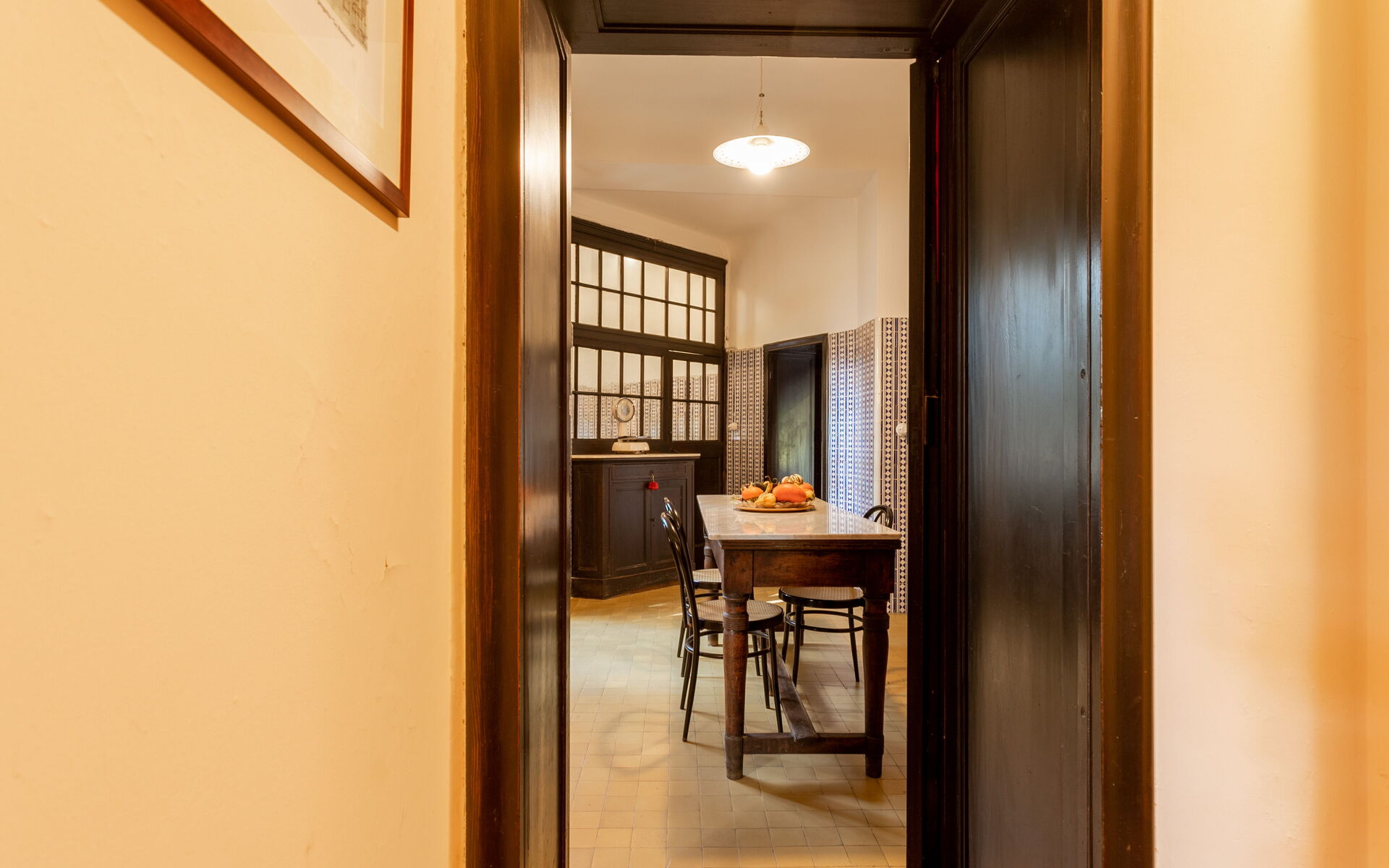 The architectural and building elements used in construction, such as wrought iron, glass, wood and concrete, have been enhanced through particular shapes and innovative uses. The furniture of the house, made to measure, is in national walnut, creating a harmonious complete work signed by the architect Andreani.