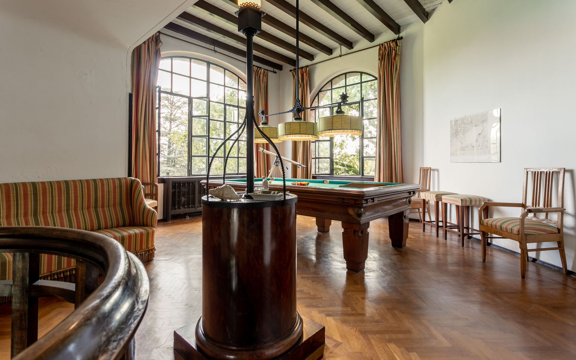 The villa therefore offers a wide variety of rooms, each personalized and tailor-made, ensuring privacy and comfort for guests. The billiard and games room on the second floor represents a place for entertainment and relaxation, enriched by the panoramic view of the surrounding park. With this layout, Villa Rocchetta offers a combination of elegance, history and modernity to welcome guests in a unique and evocative atmosphere.