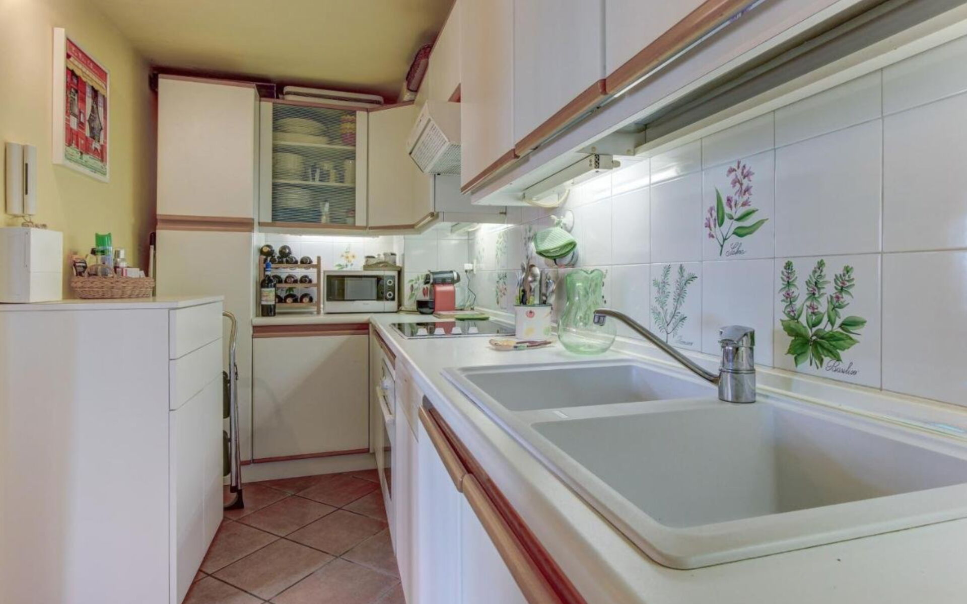 The full kitchen has everything you need to make delicious meals that you can savor on the lush, plant-lined terrace overlooking a lovely garden.