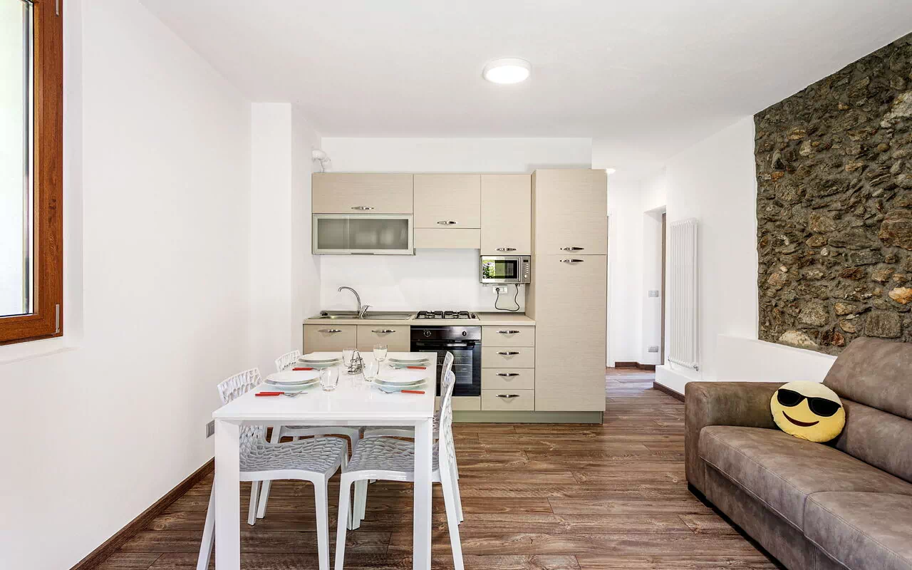 Dining Table, Exit to the patio, Freezer, Fridge, Italian Coffee Machine, Oven, Sofa Bed Double, Stove Top, Television, Toaster, Well Equipped Kitchen, WiFi Internet
