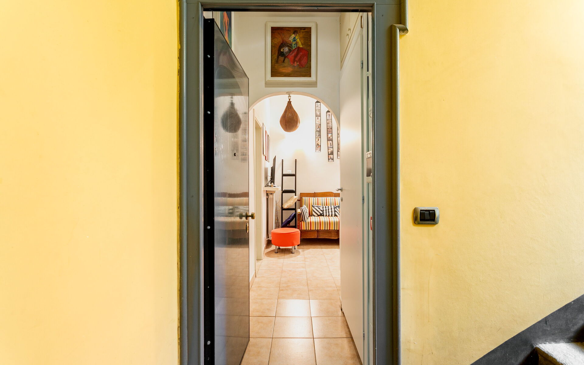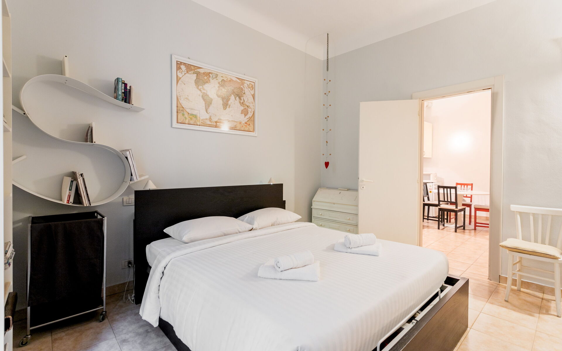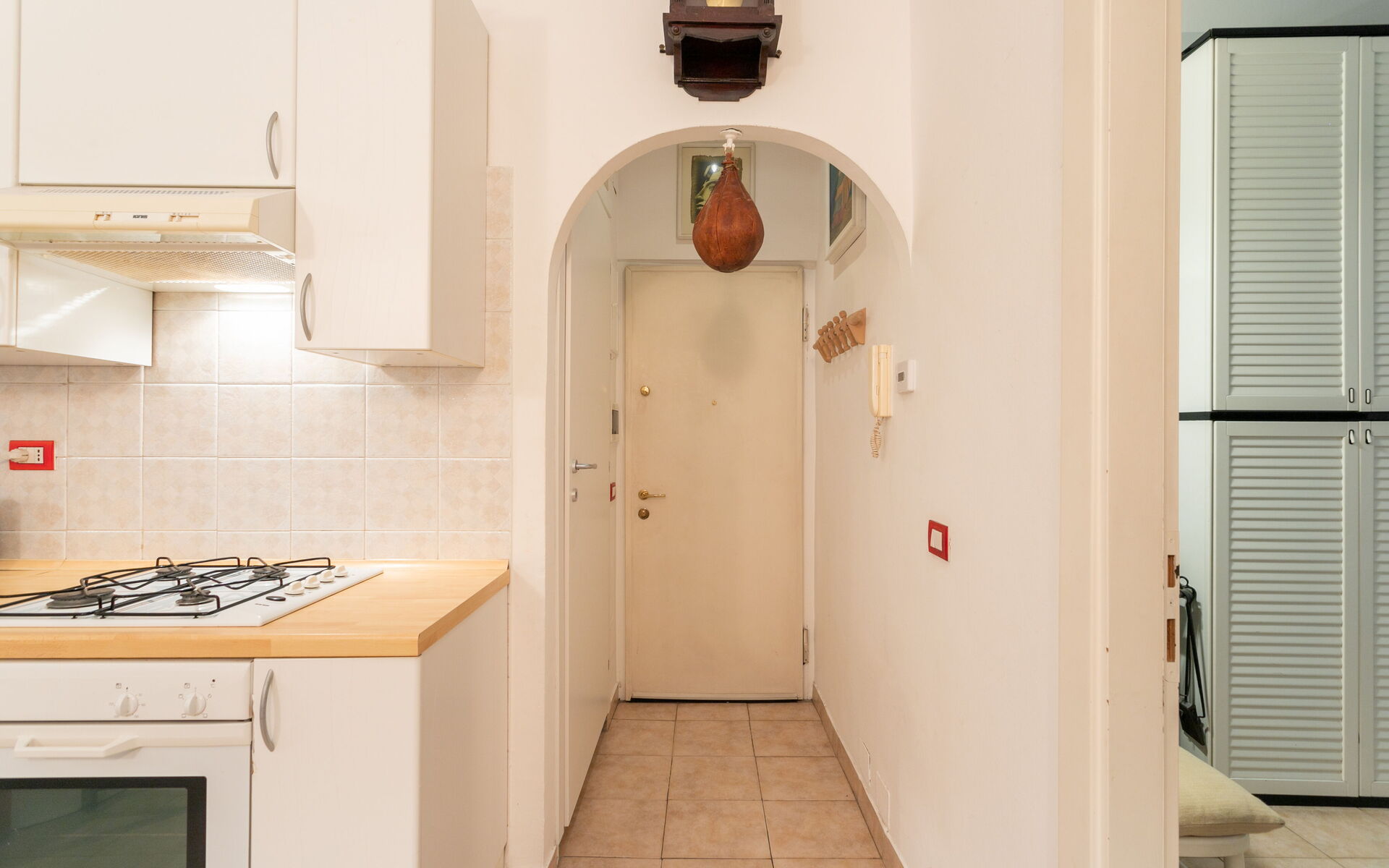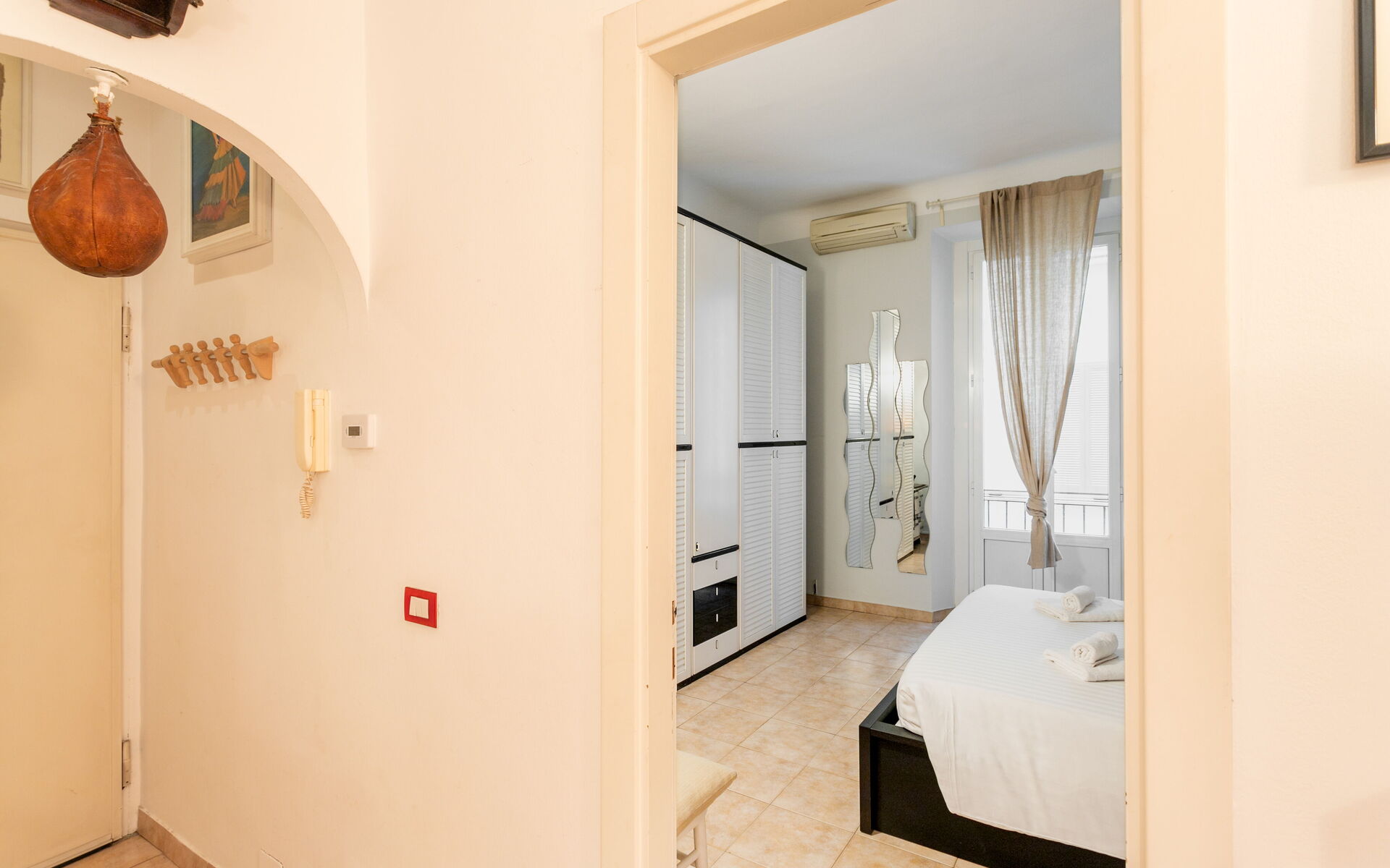 Tiled flooring throughout the apartment.