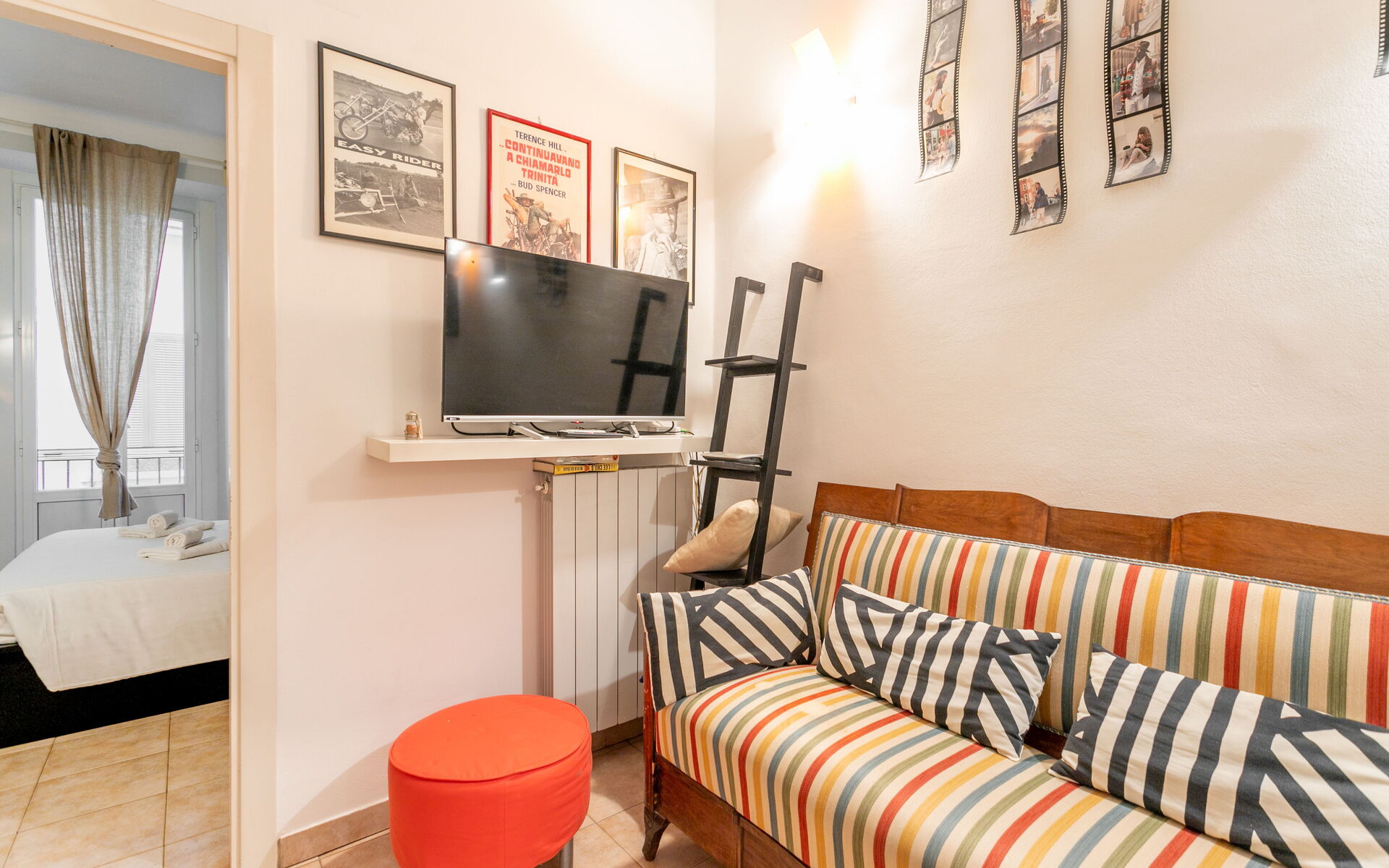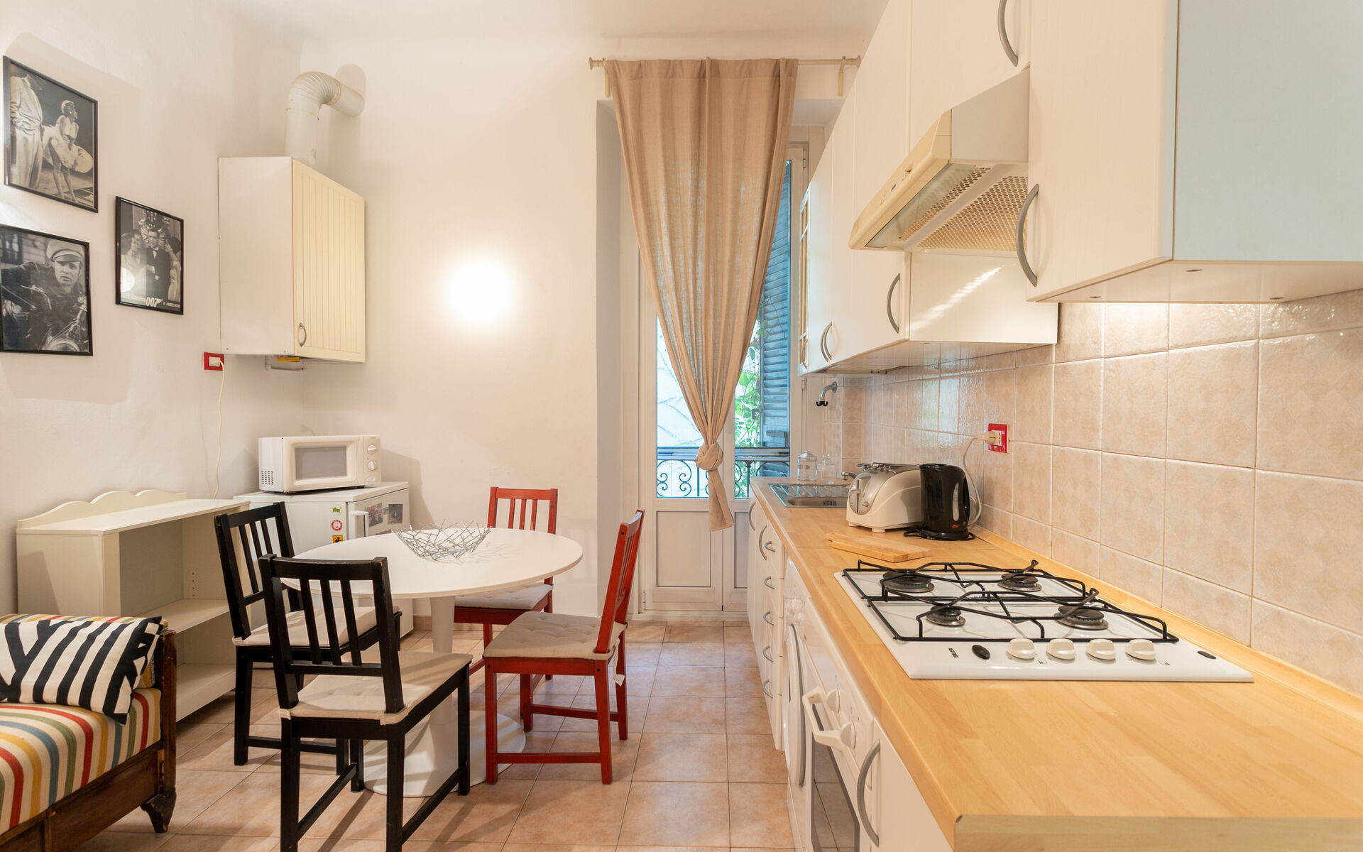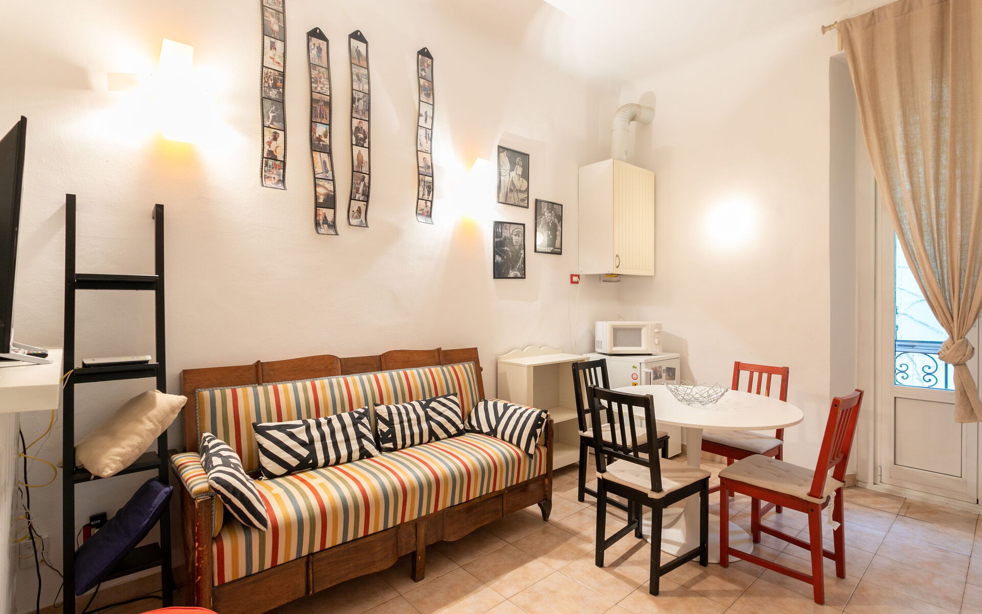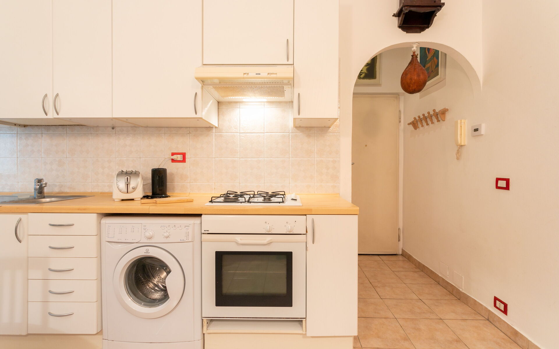 Tiled flooring throughout the apartment.