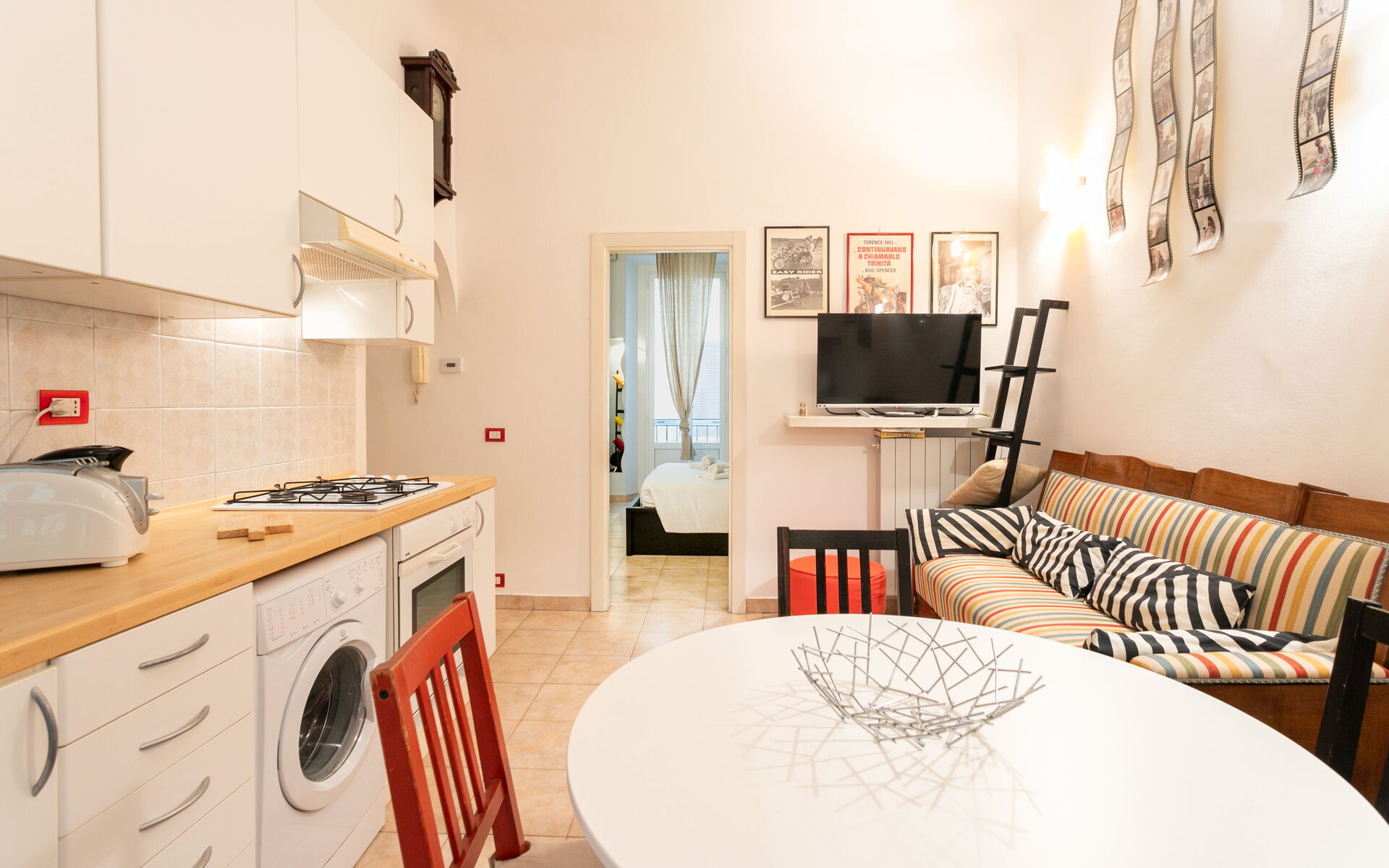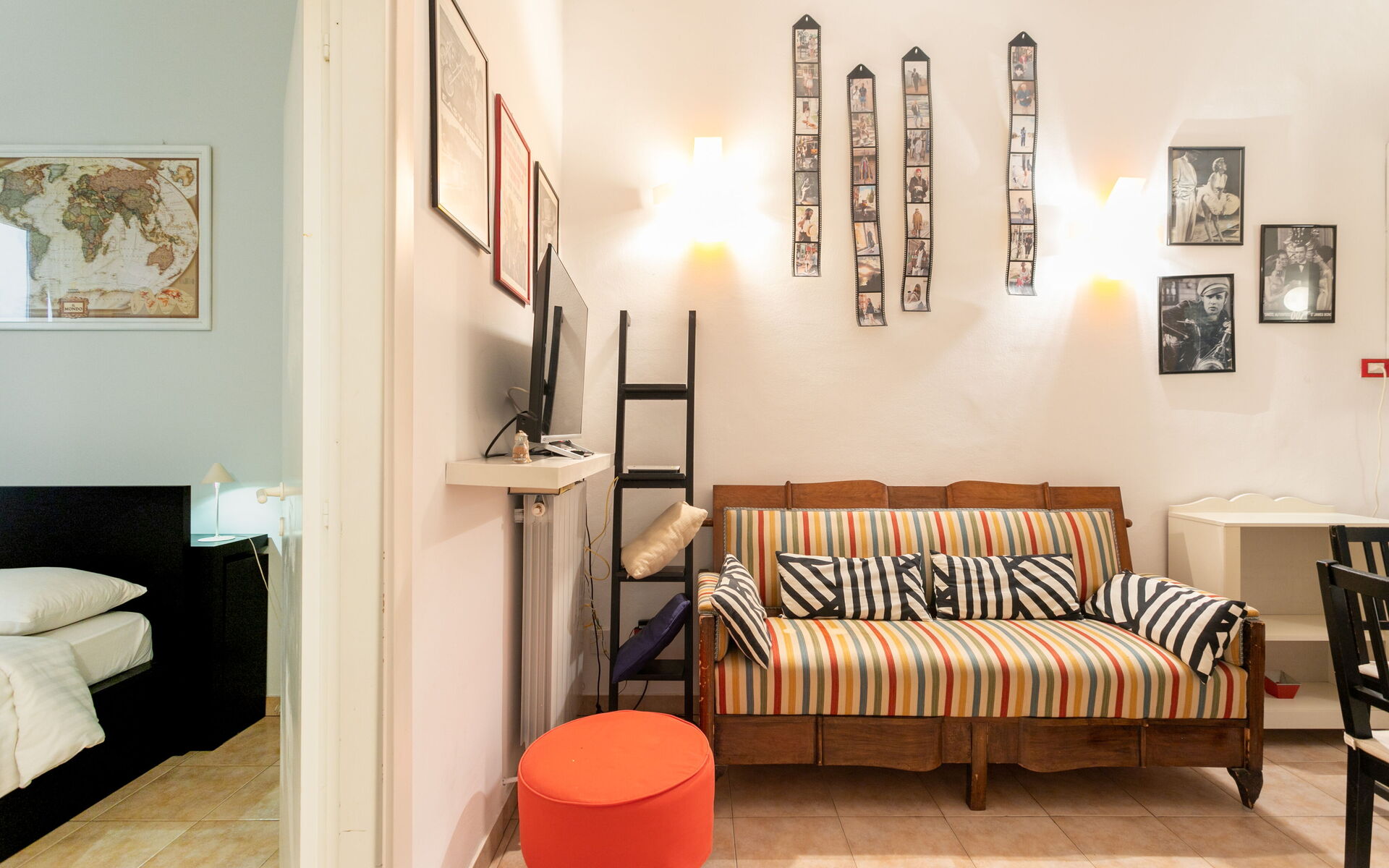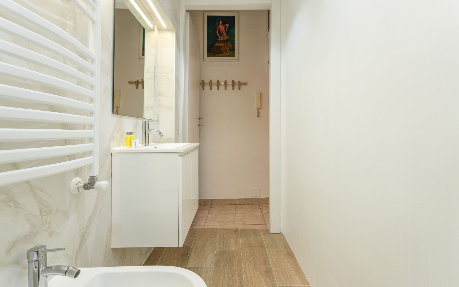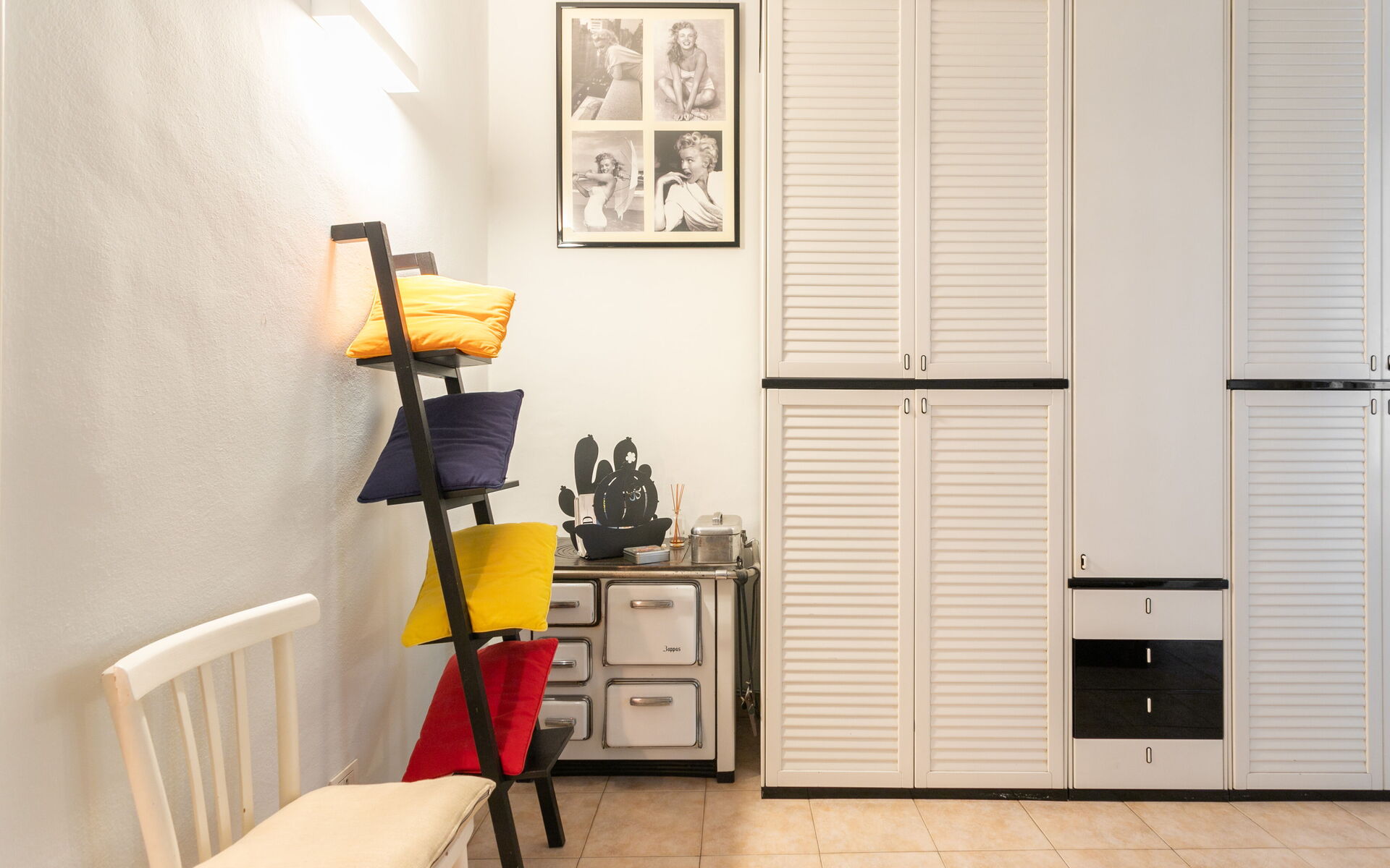 Tiled flooring throughout the apartment.