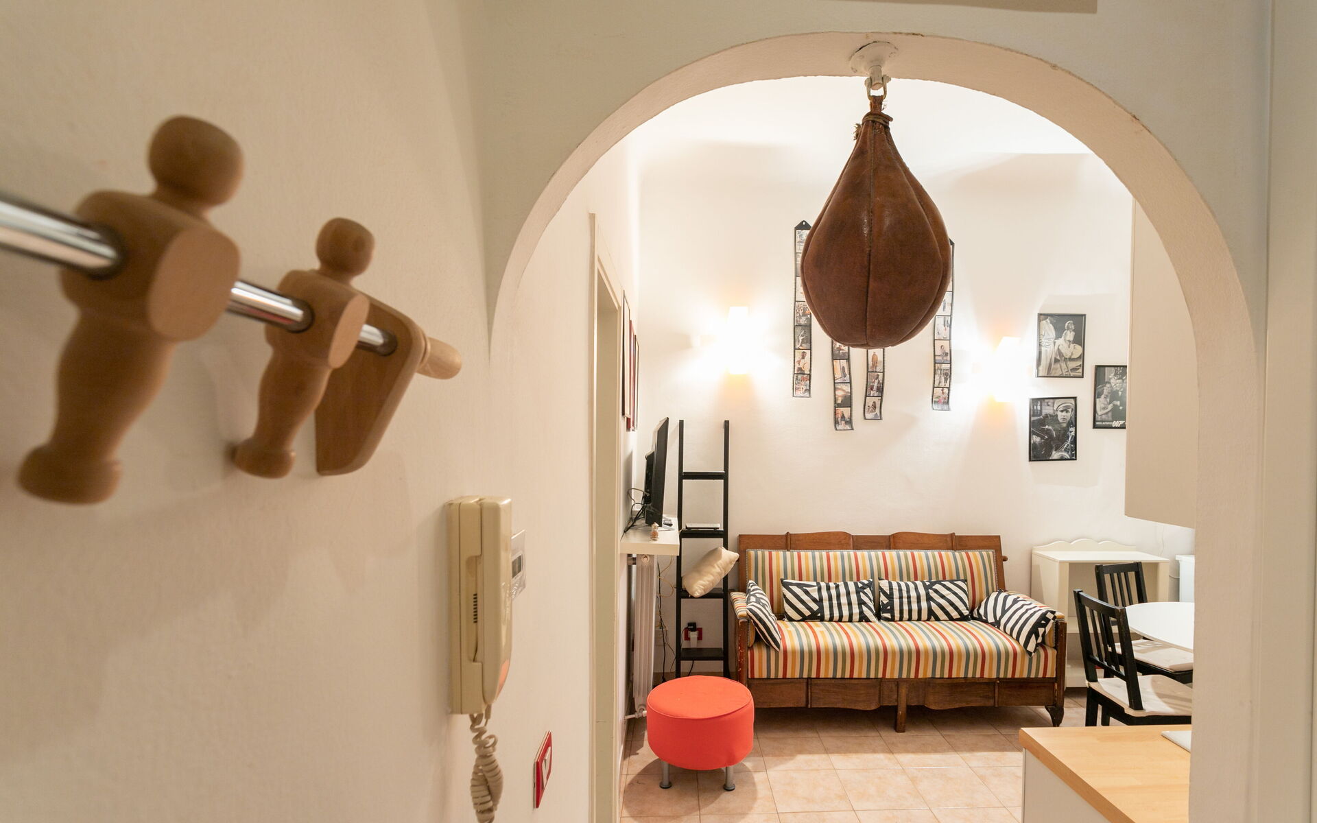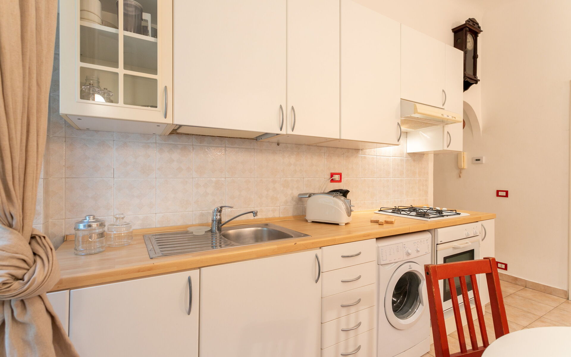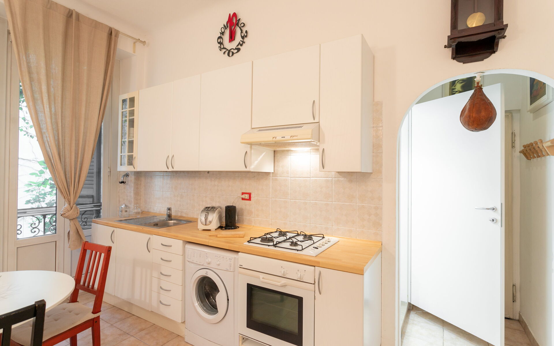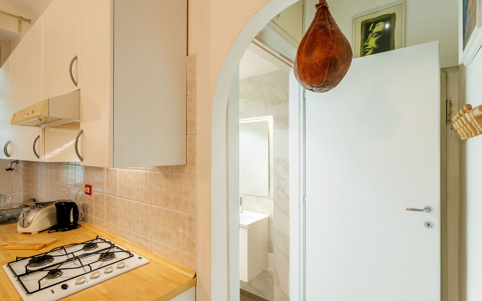 Tiled flooring throughout the apartment.