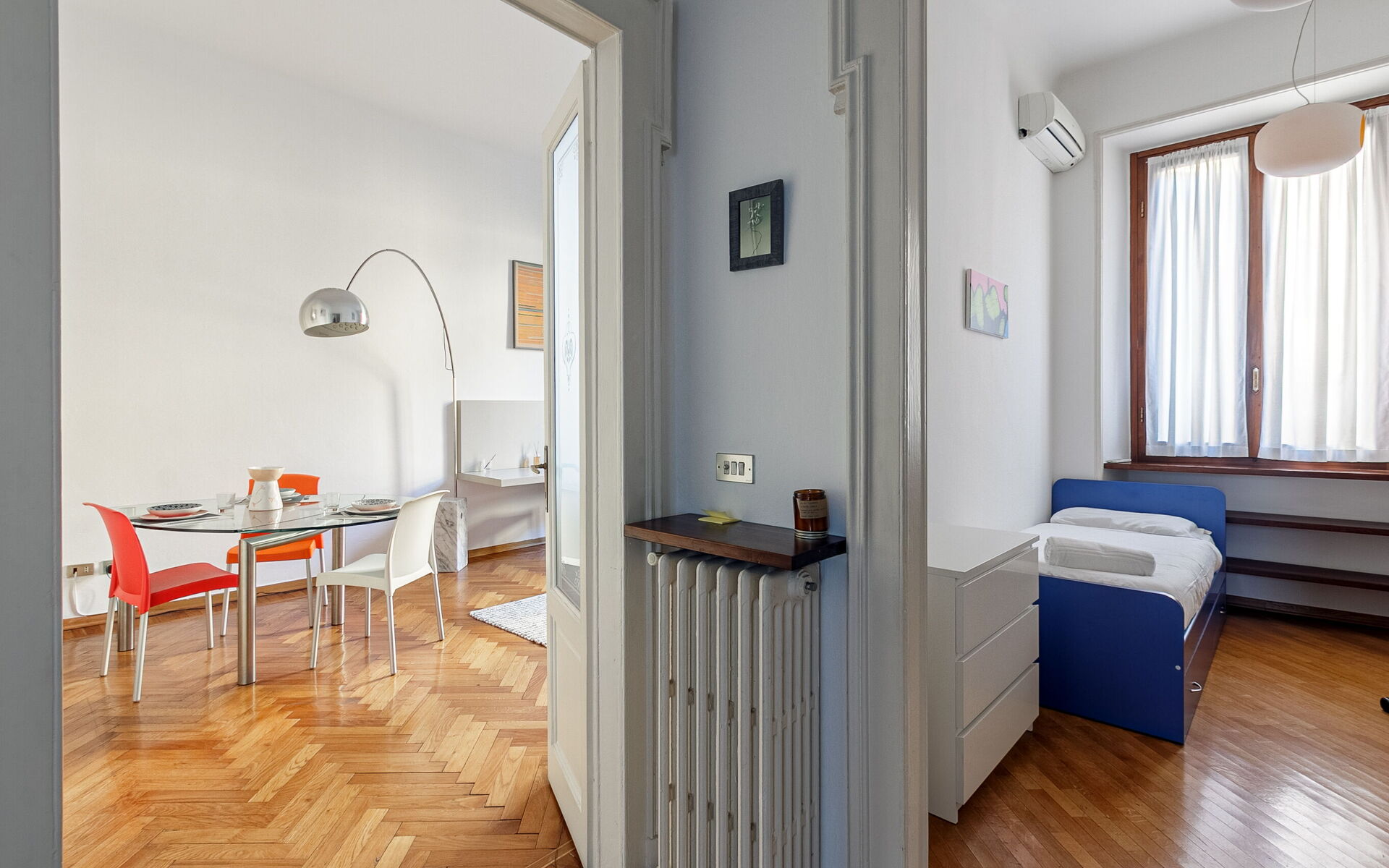 Spacious and modern two bedrooms apartment in Milan with two balconies, located on the first floor of a period house near Corso Como and Garibaldi station.