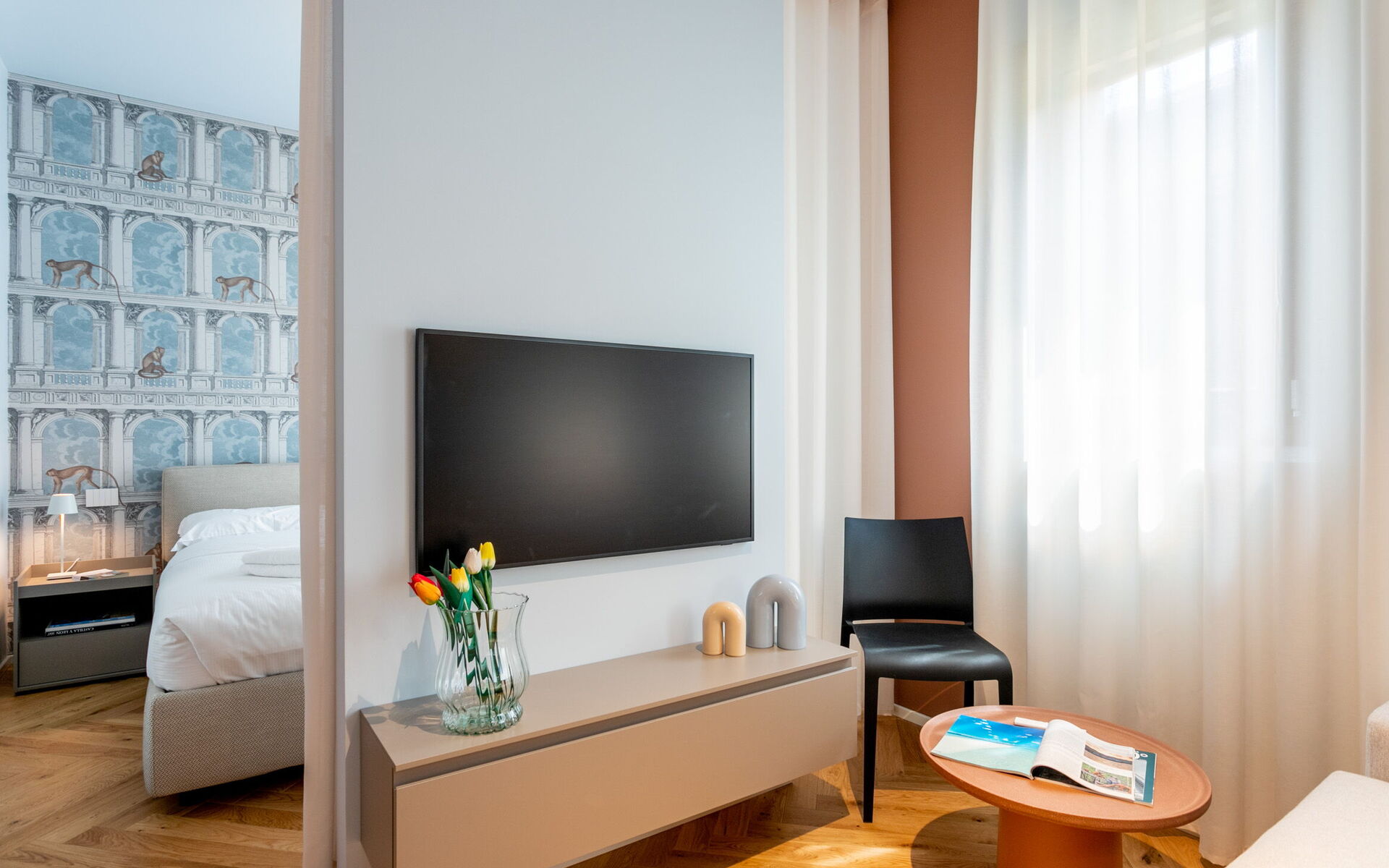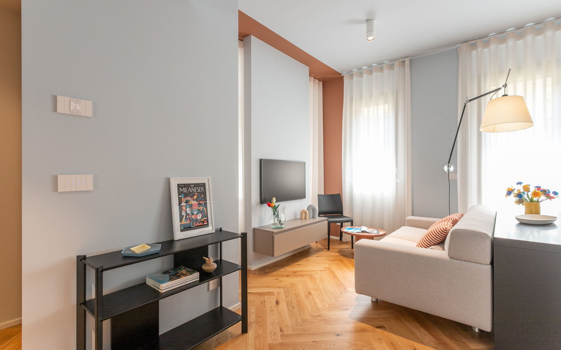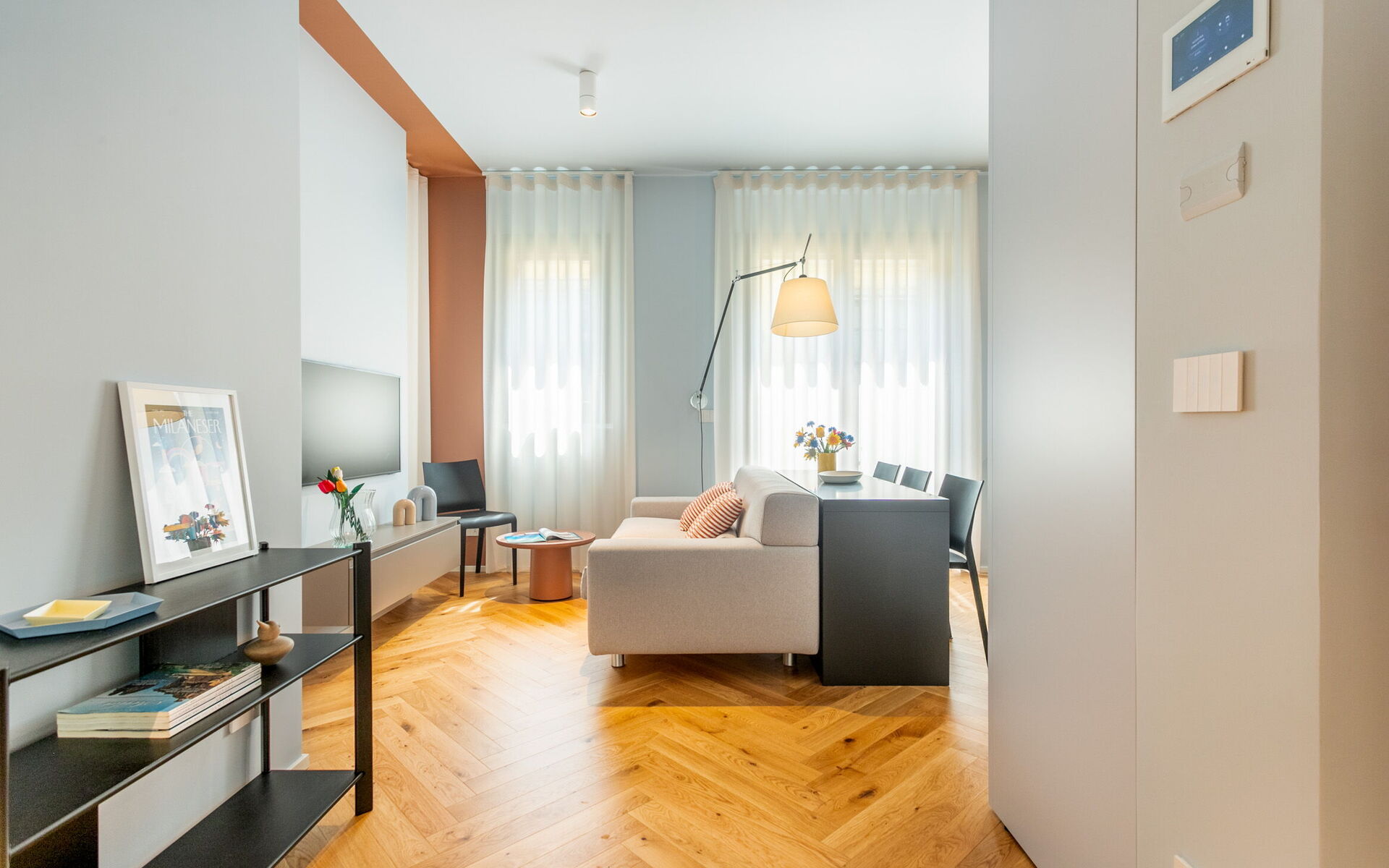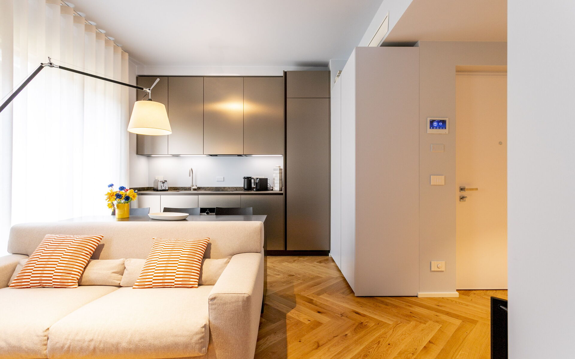 A new and modern studio apartment is located in the prestigious context of Crocetta Living, a recently built building in the heart of Milan a few steps from the MM3 Crocetta stop.