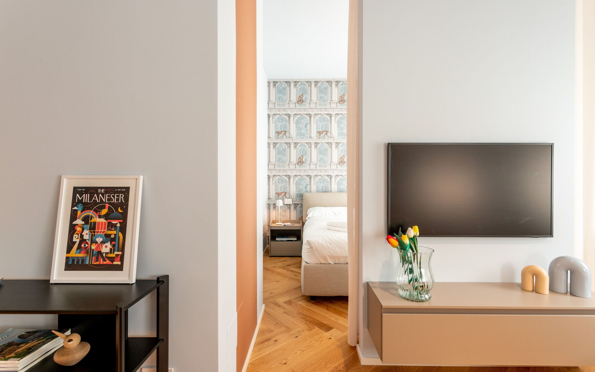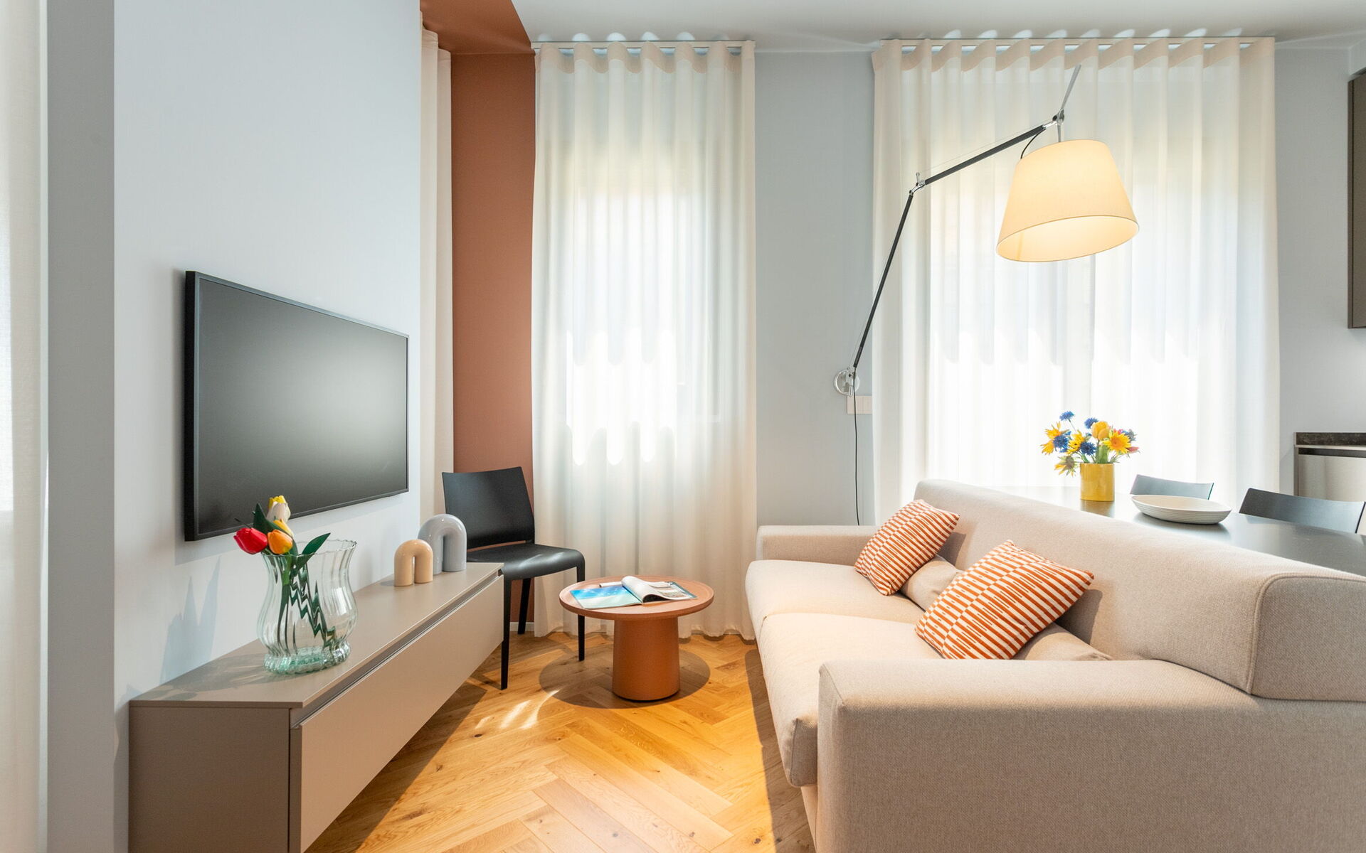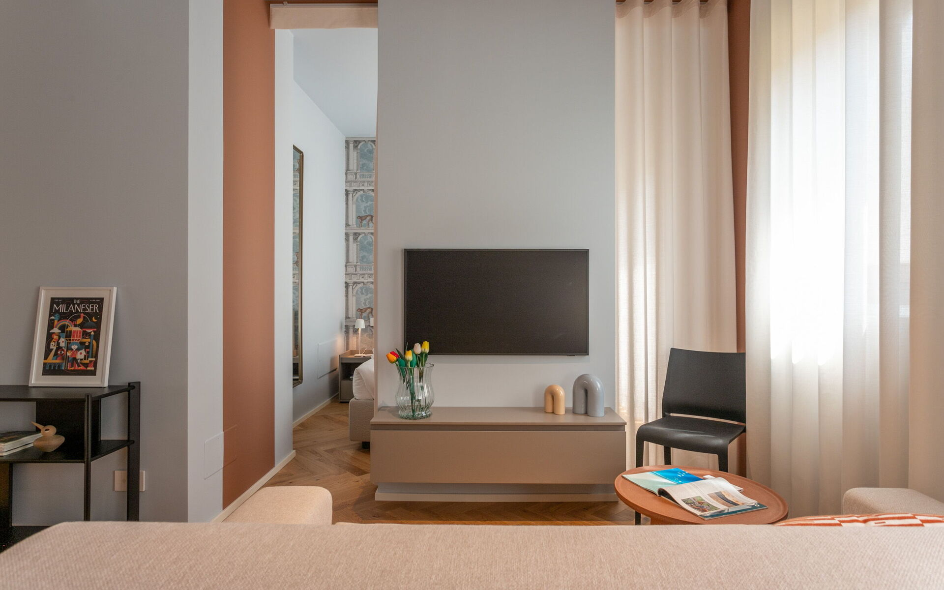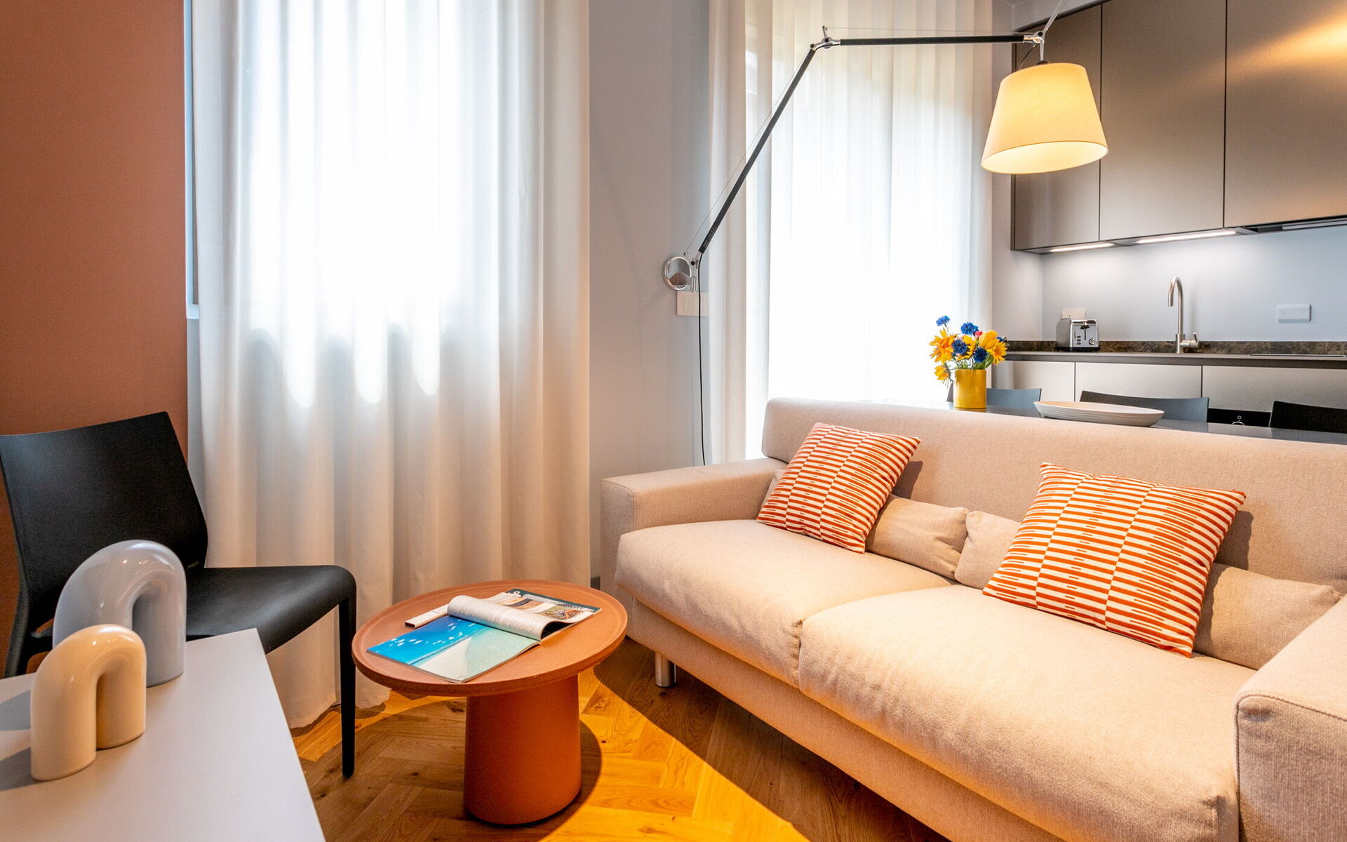 A new and modern studio apartment is located in the prestigious context of Crocetta Living, a recently built building in the heart of Milan a few steps from the MM3 Crocetta stop.