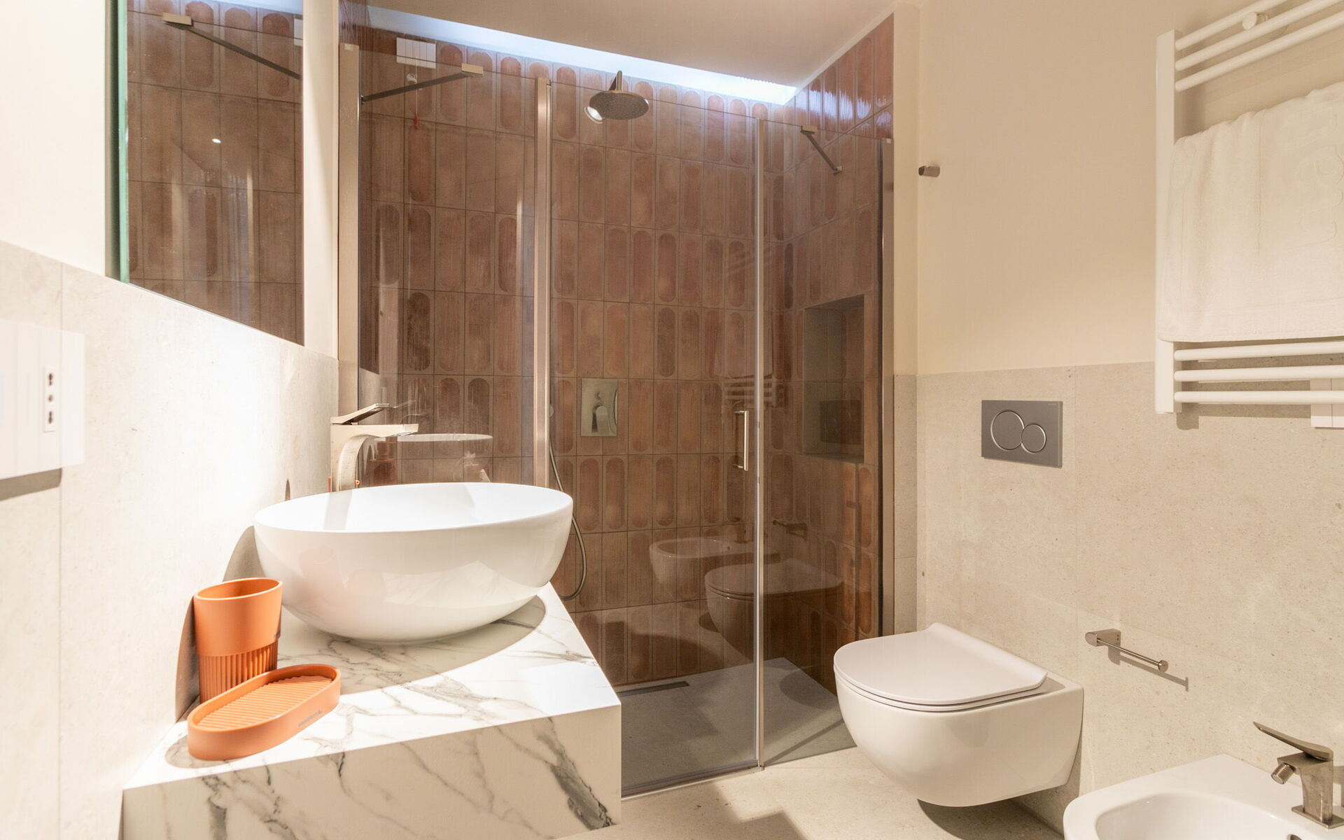 All'interno dell'appartamento trovi tutto il necessario, lavatrice, asciugatrice, lavastoviglie, una bella grande doccia.
