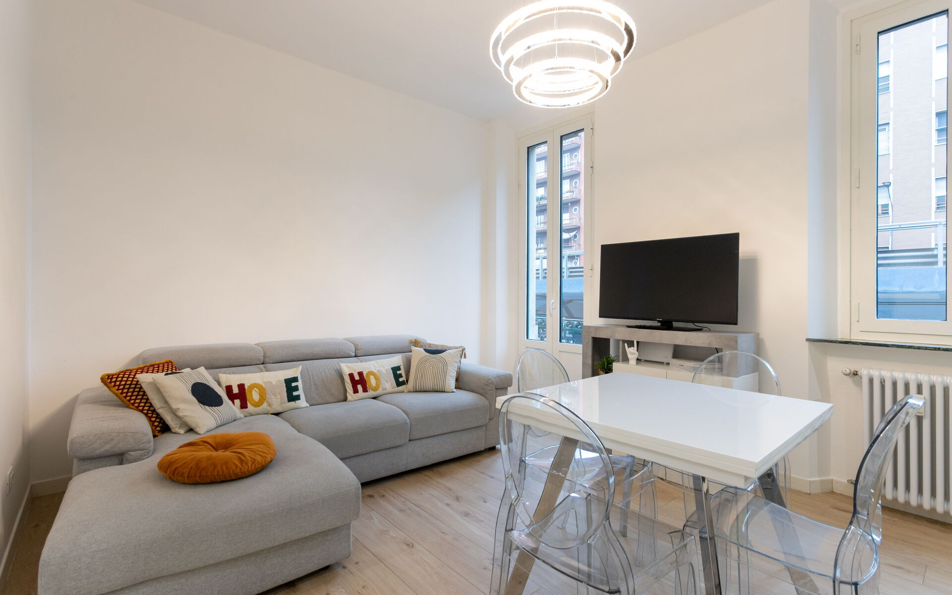Excellent location in Milan, close to public transport, shops, restaurants, and main attractions.Modern 2-Bedroom Apartment with Balcony & Fast Wi-Fi in Milan