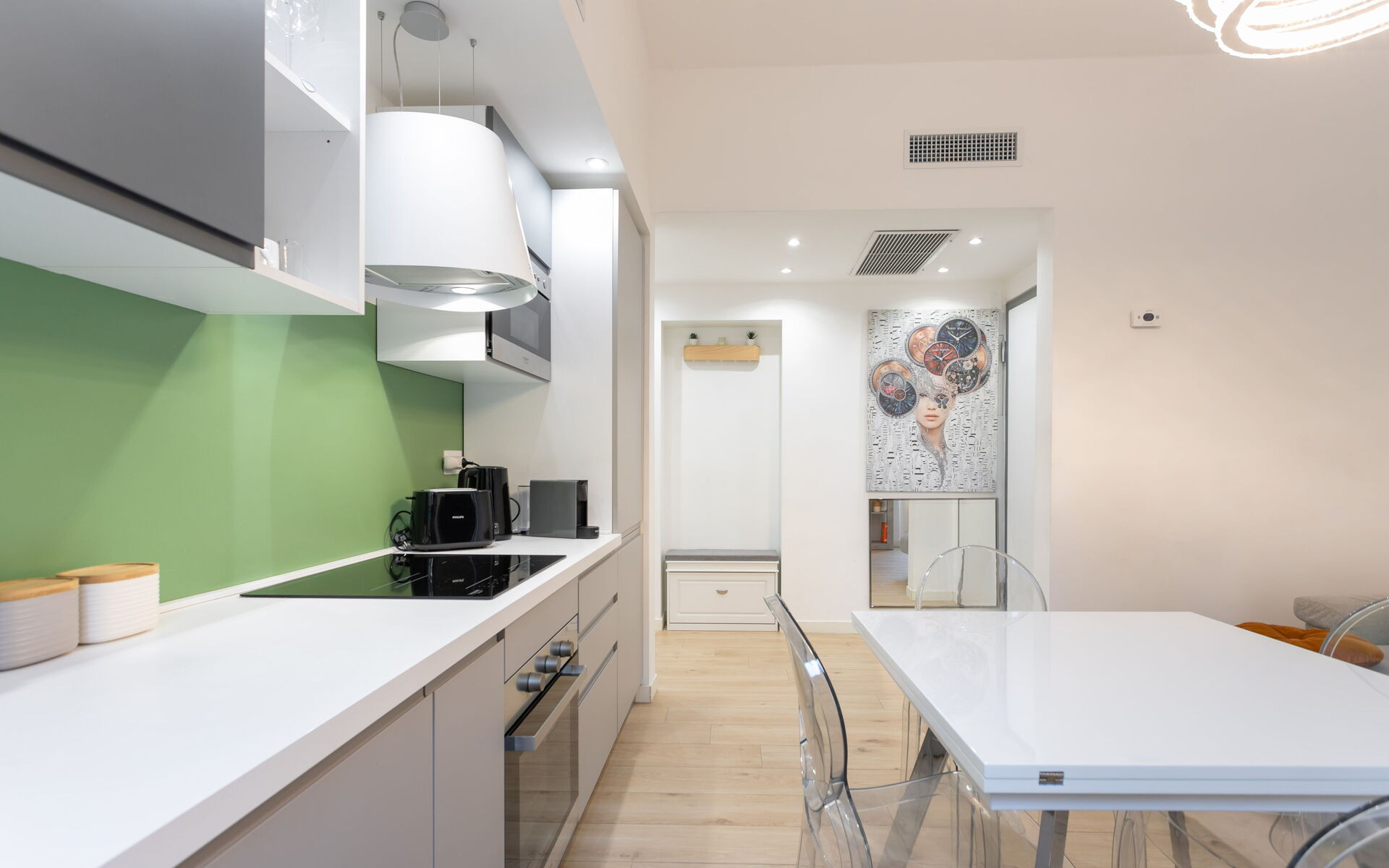 Air Conditioning, CO2 Detector, Dining Table, Dishwasher, Exit to the balcony, Freezer, Fridge, Iron, Microwave, Oven, Sofa Bed Double, Stove Top, Television, Toaster, Well Equipped Kitchen, WiFi Internet