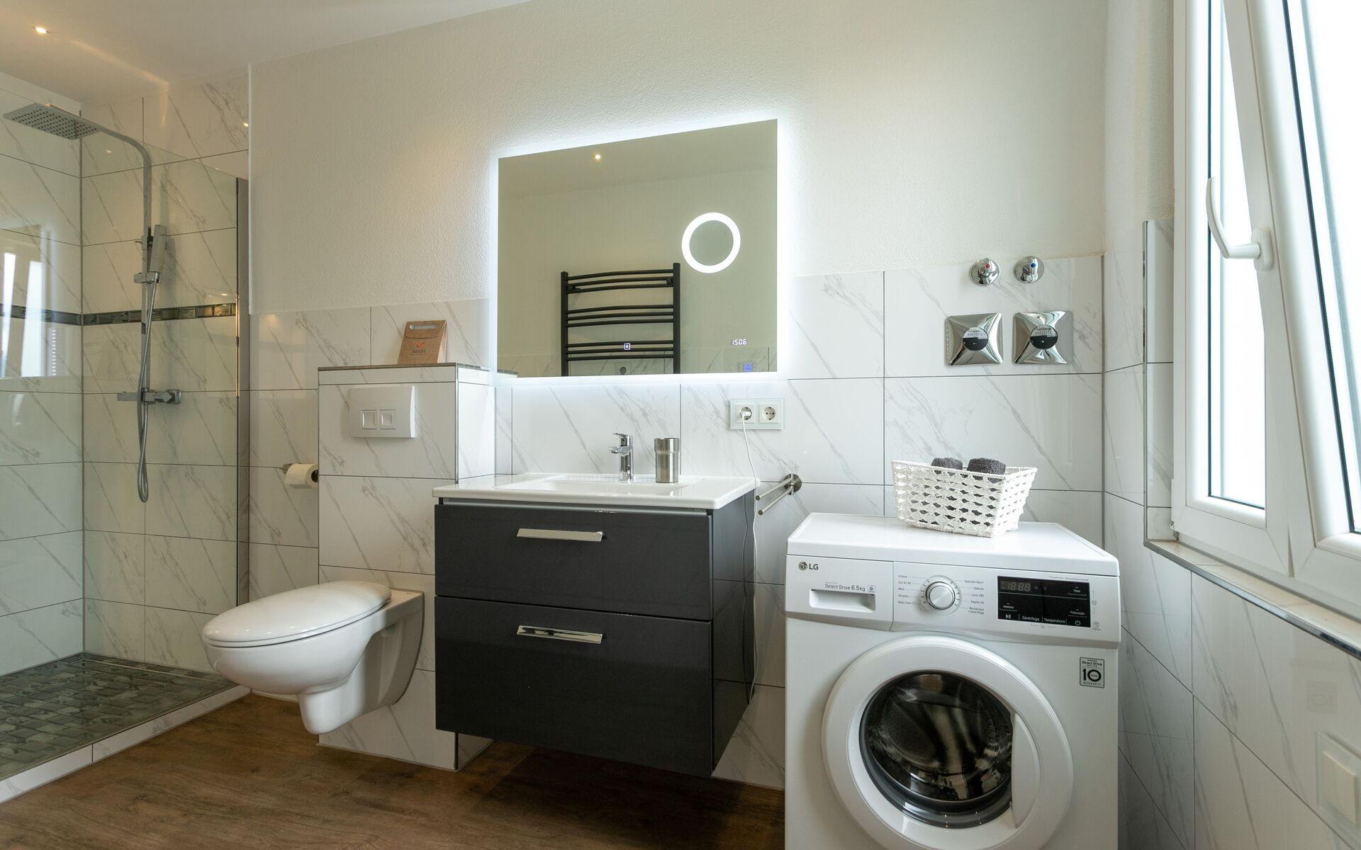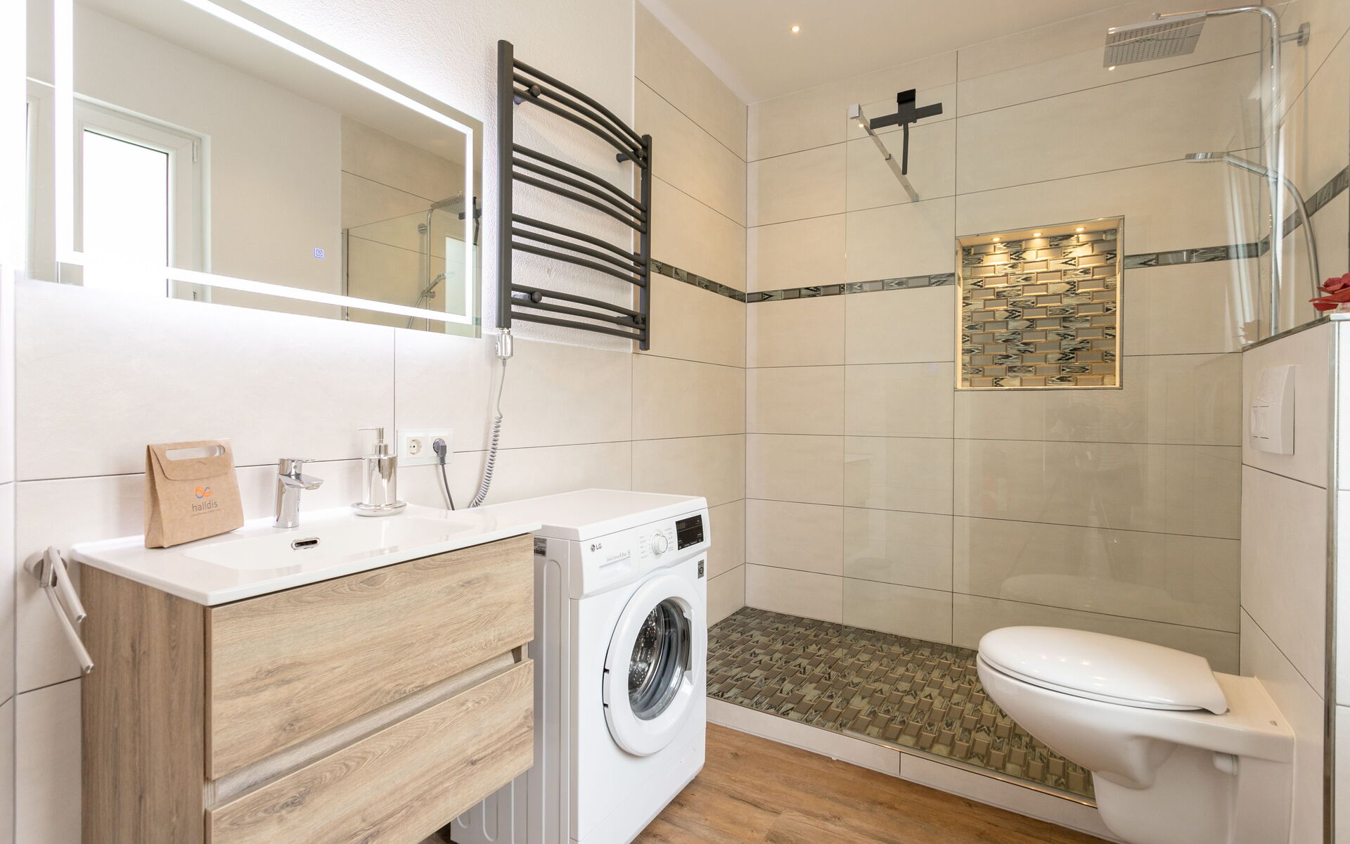 Hairdryer, Shower, Basin, Washing Machine, Toilet