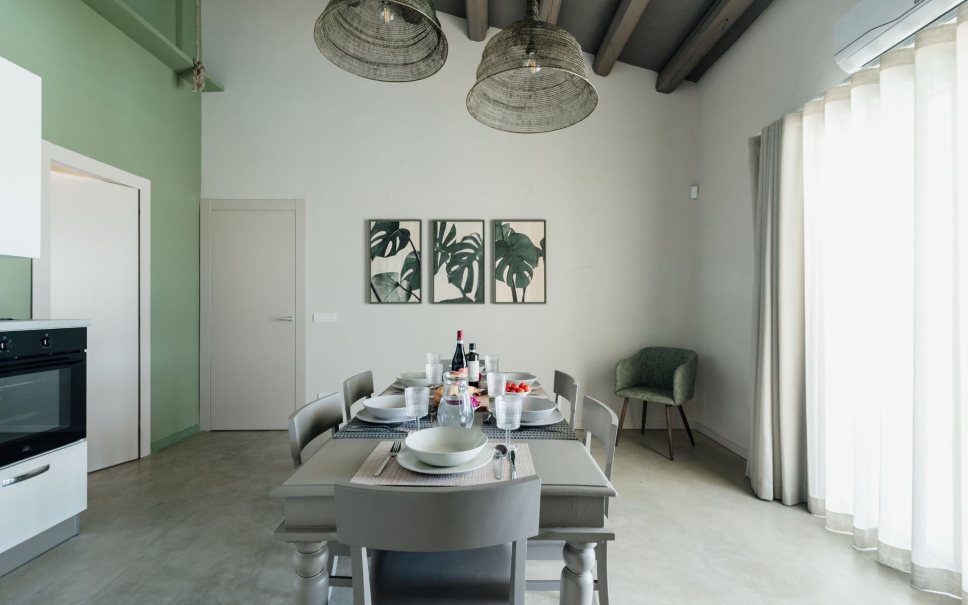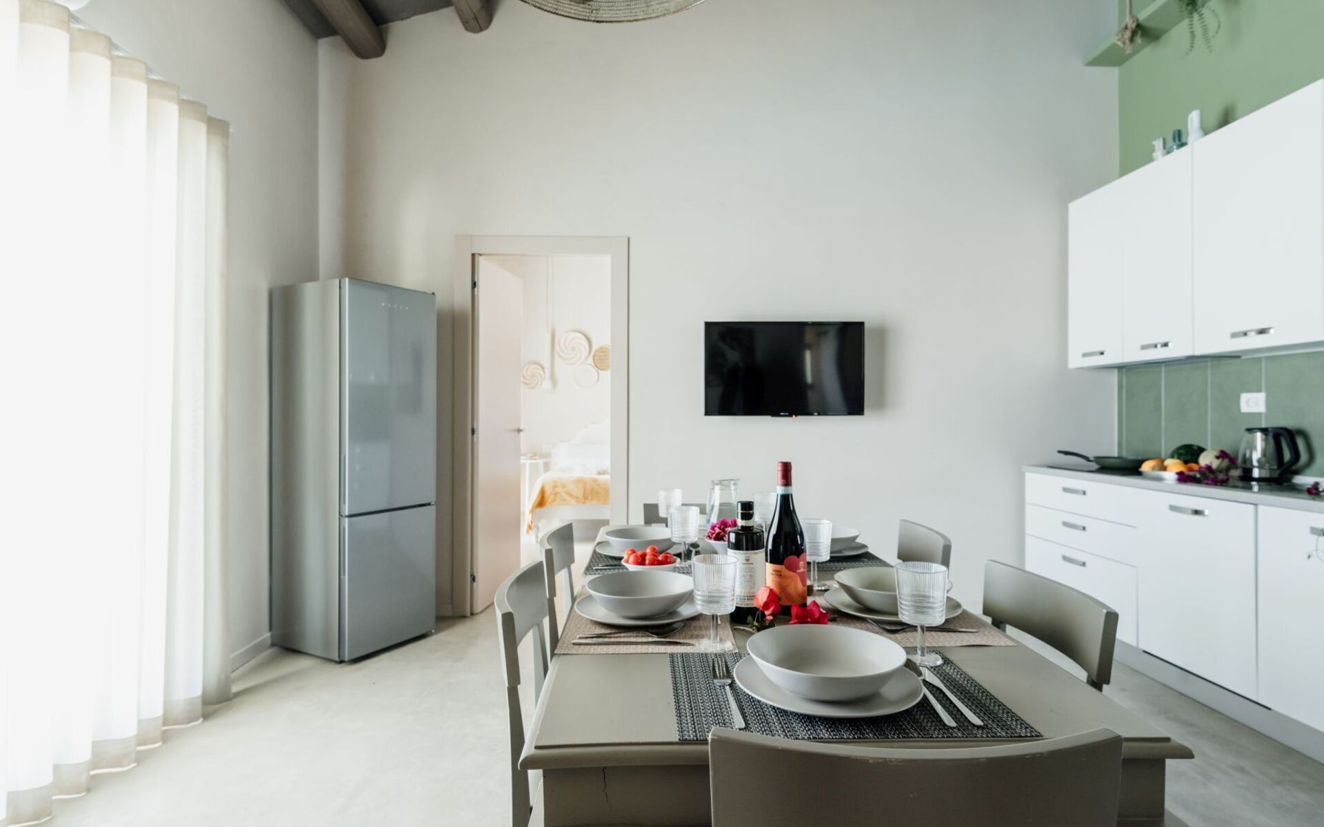 Air Conditioning, Dining Table, Exit to the veranda, Freezer, Fridge, Internet, Oven, Television