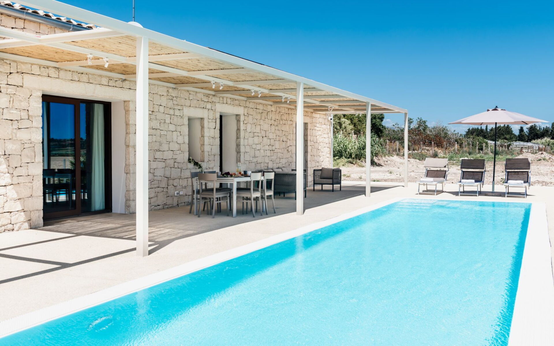 Ideal for couples or families who wish to combine pure relaxation in a refined and bright environment, where they can spend pleasant days on the beach just a few steps away, indulge in excursions to the nearby late Baroque towns of Scicli, Modica and Ragusa