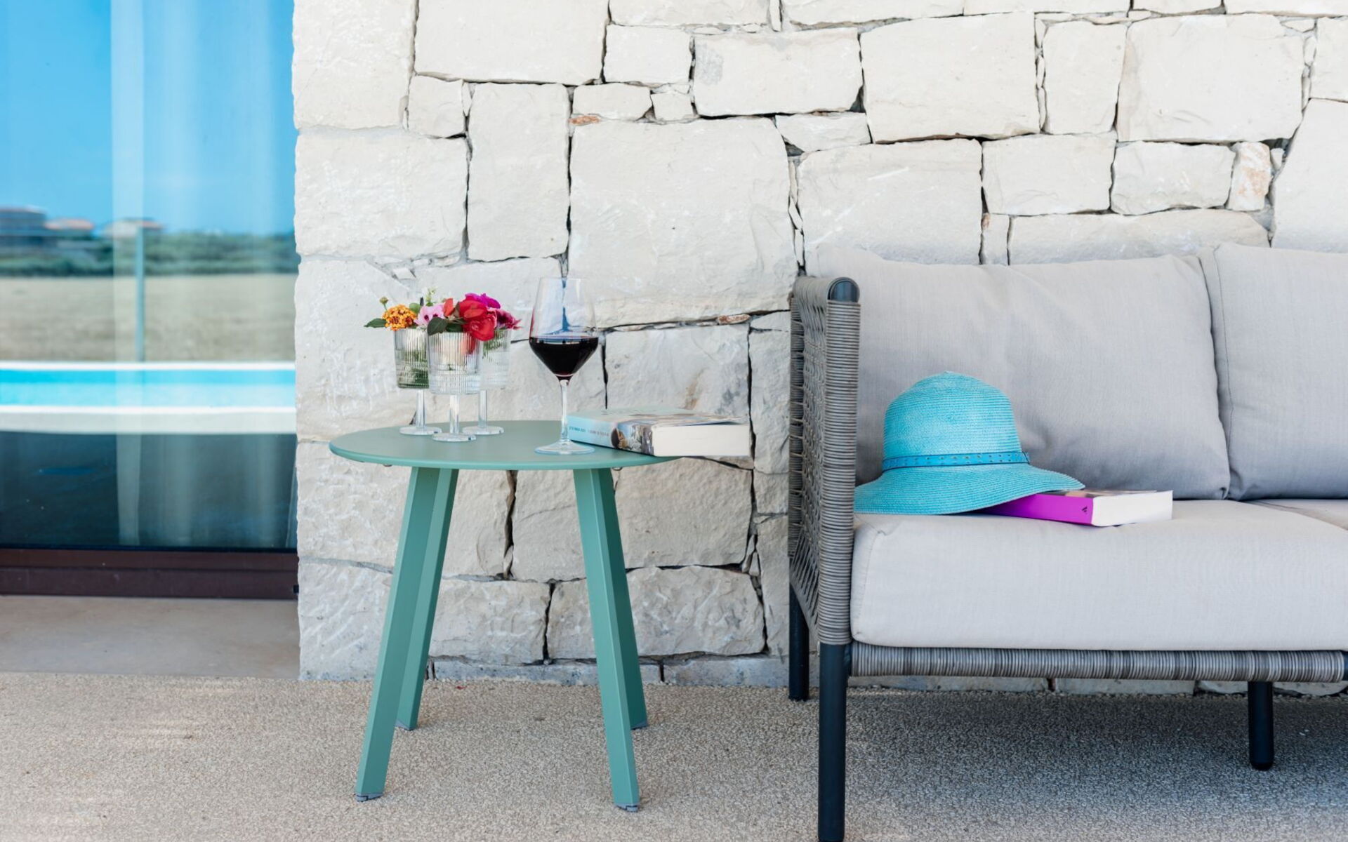 Dining Table, Garden Furniture, Sunbed, Swimming Pool