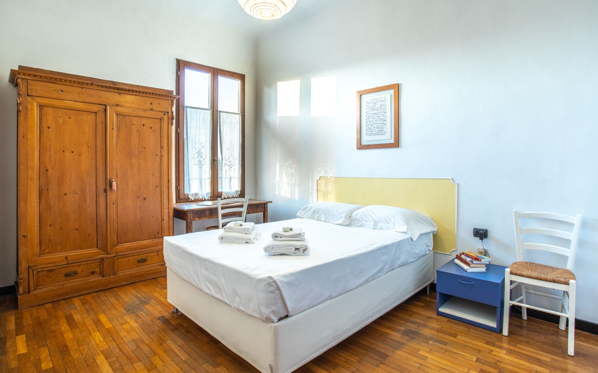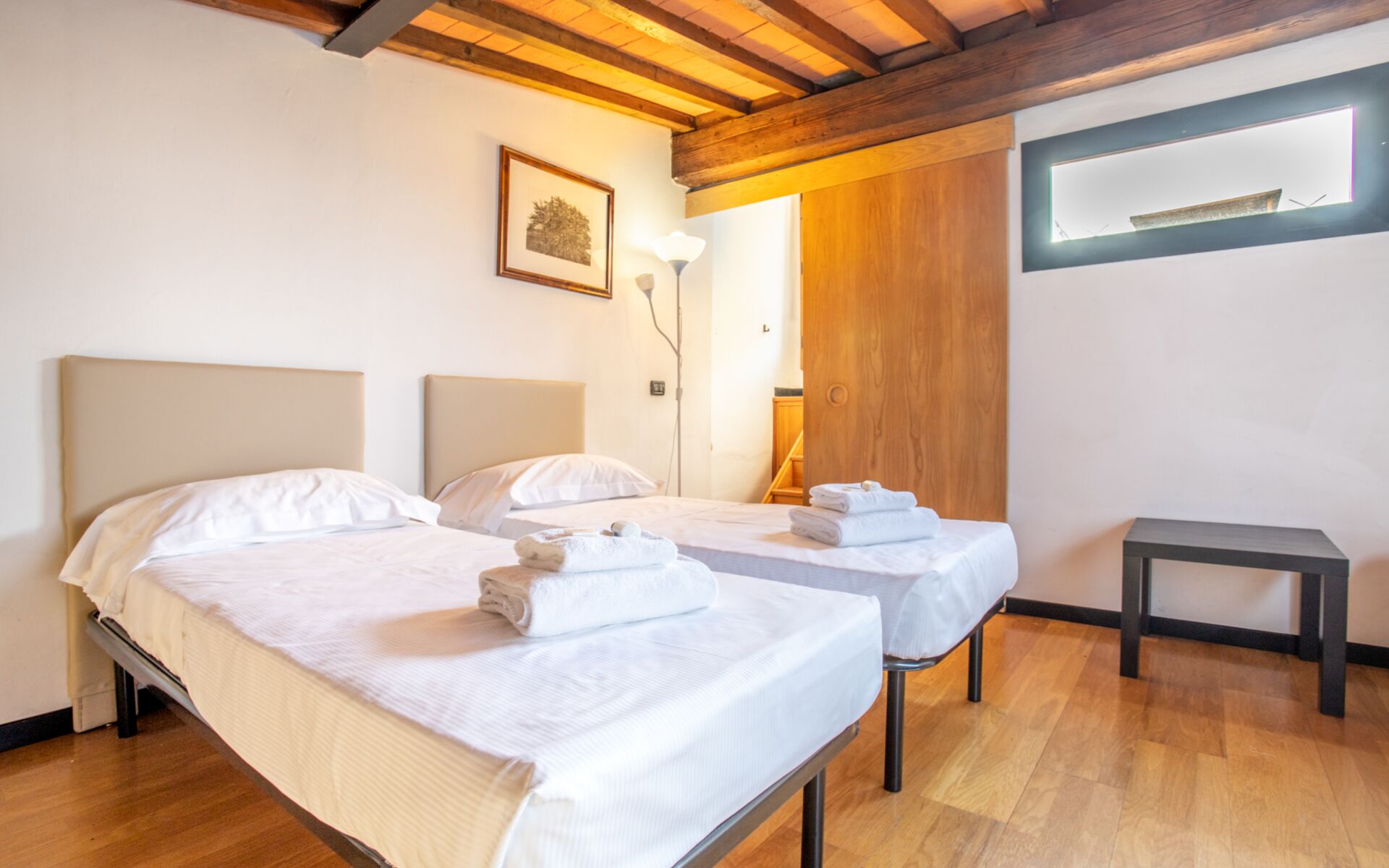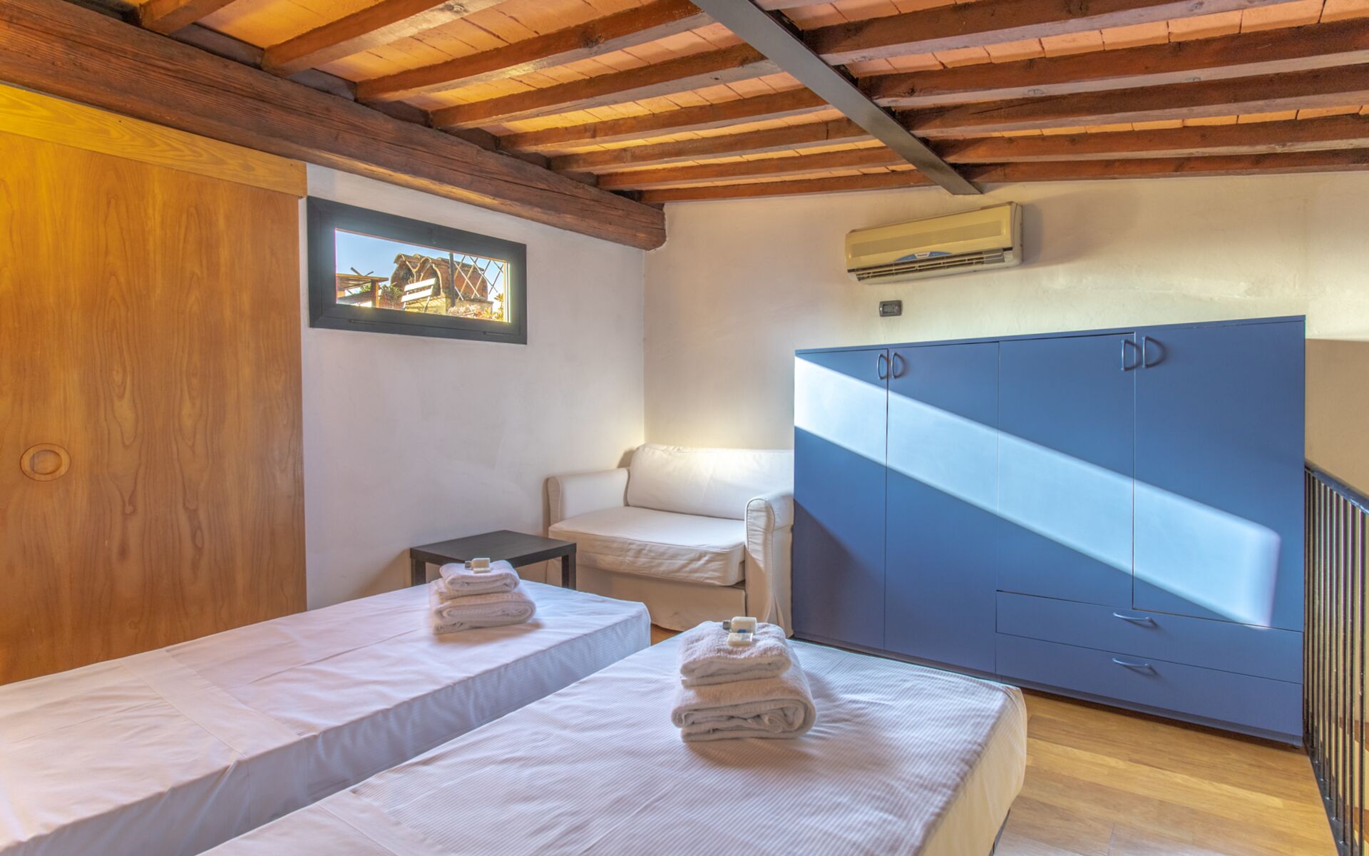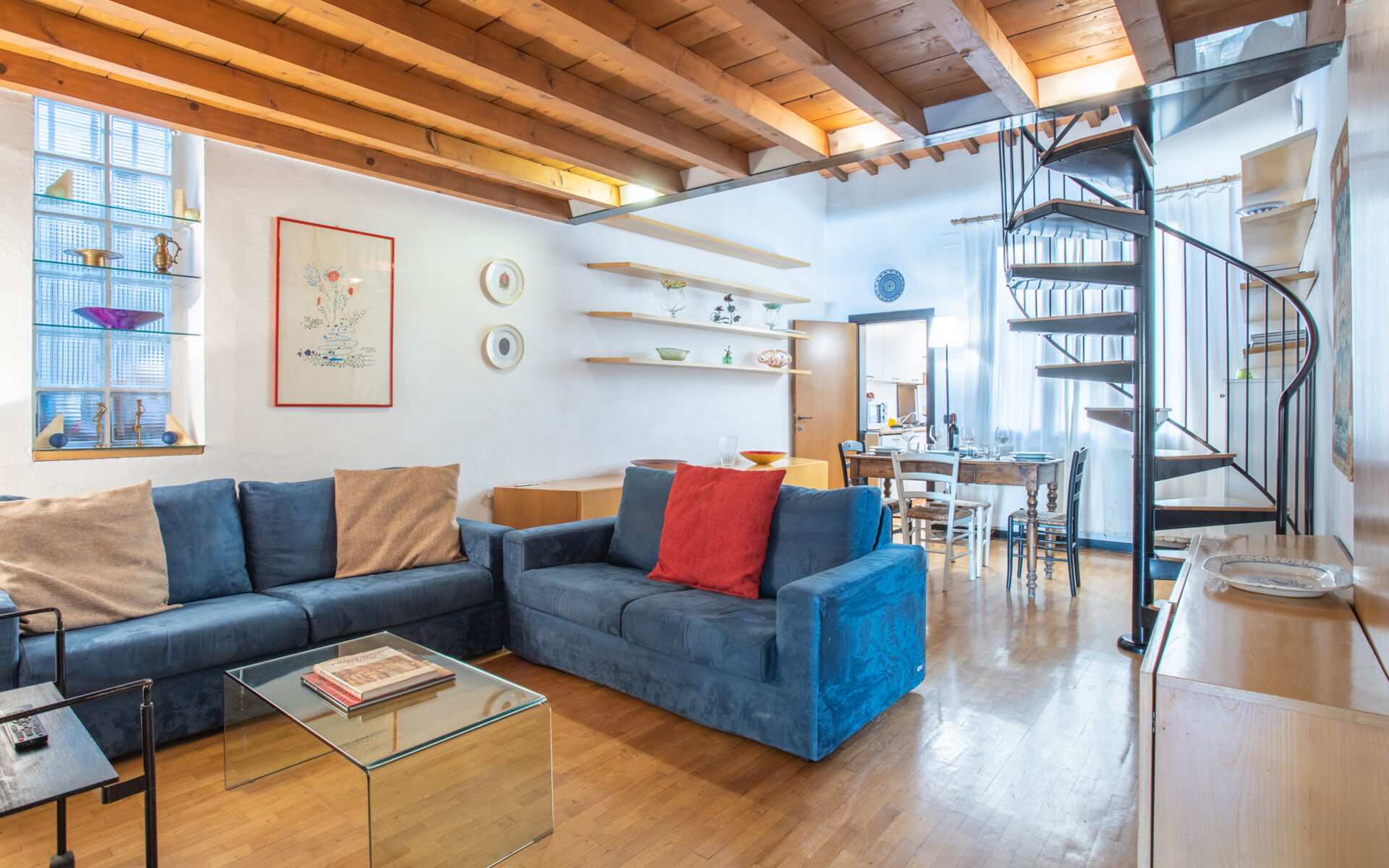 Its highlight is the private terrace, accessible from the mezzanine, perfect for relaxing at sunset while enjoying views over Florence’s rooftops. The atmosphere combines medieval charm with distinctive architectural details.