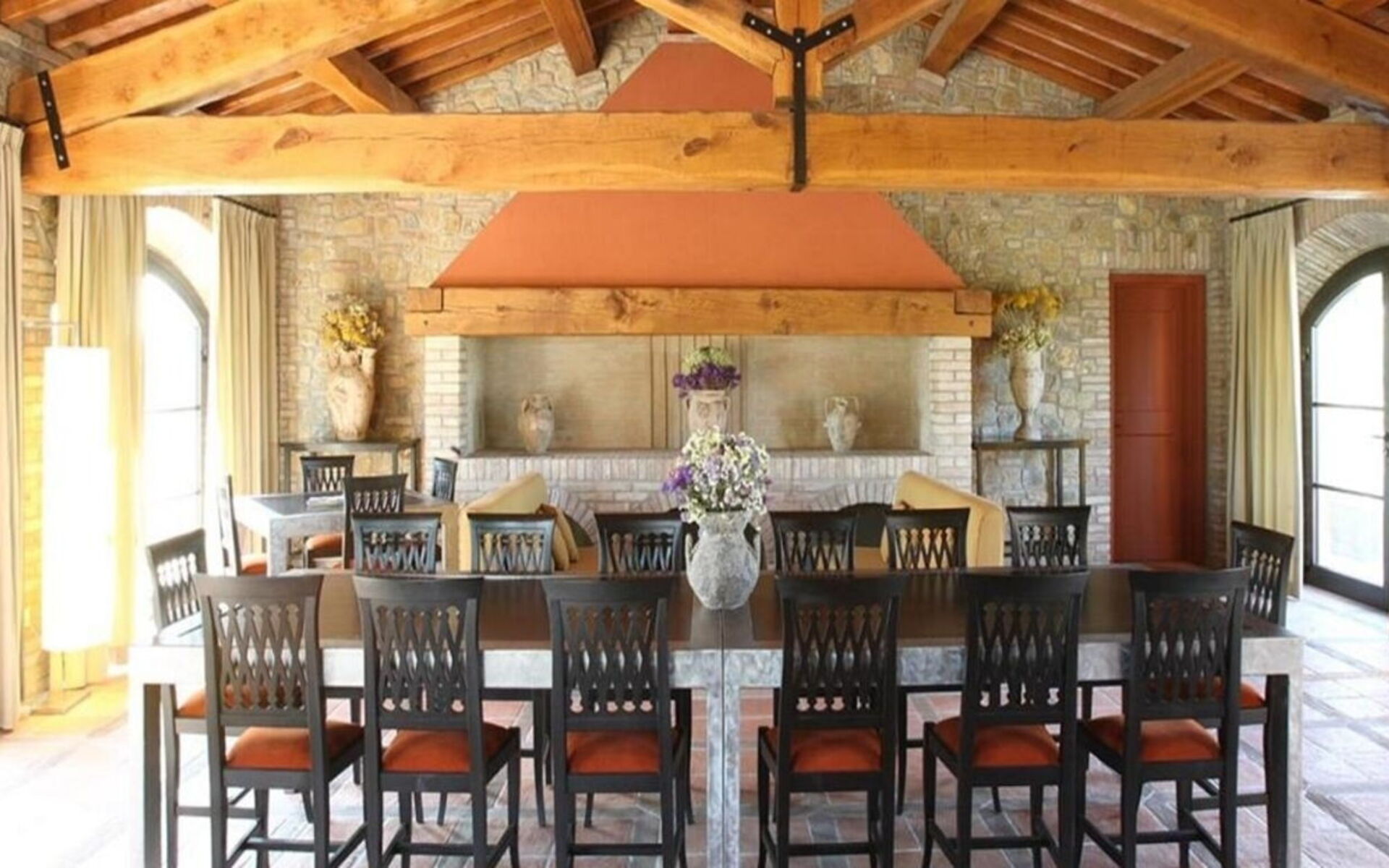The entire property (350 sqm), consisting of the main building and 2 dependances, can accommodate up to 22 people for a total of 11 bedrooms and 11 bathrooms.