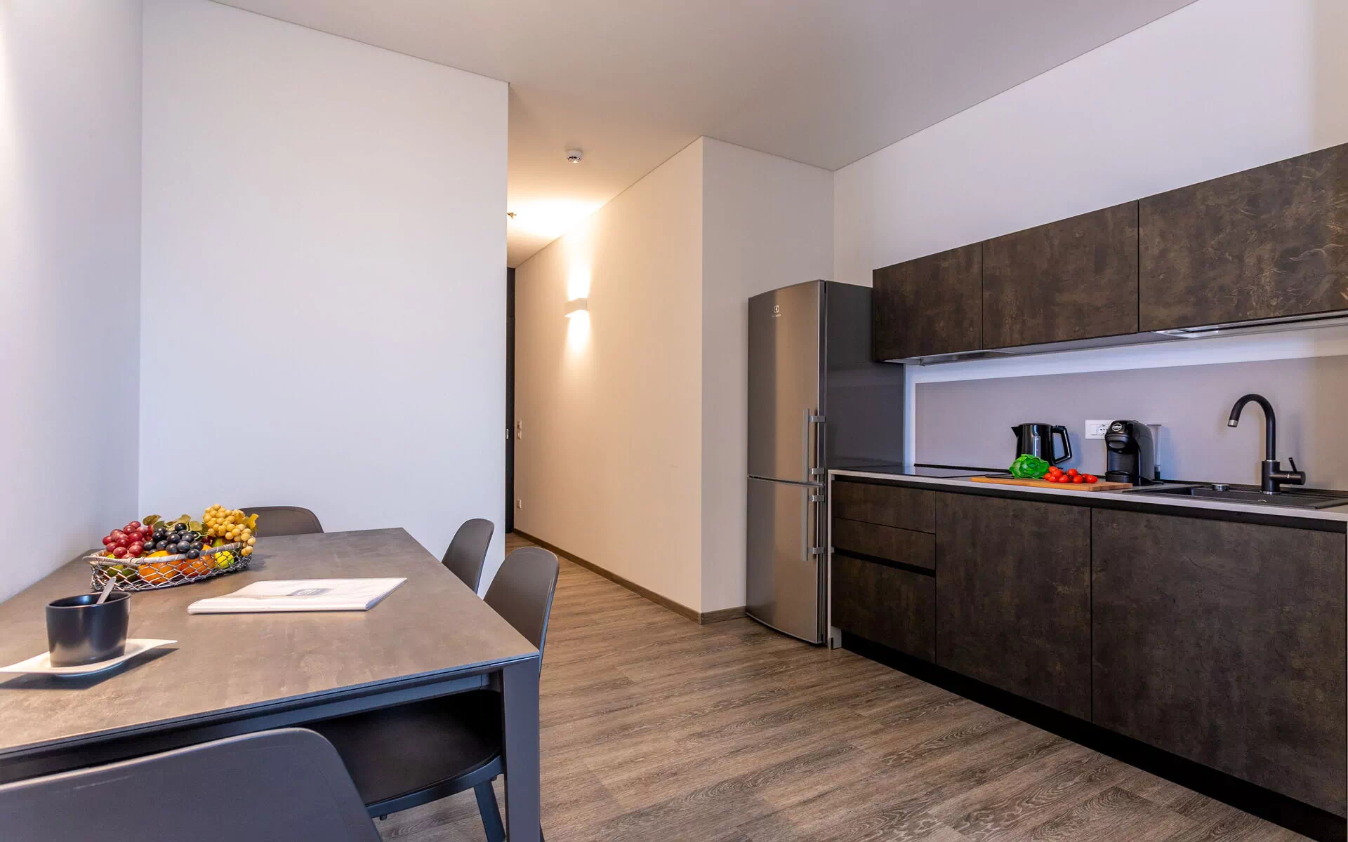 • Fully equipped kitchen: cookware, dishwasher, induction hob, coffee machine
