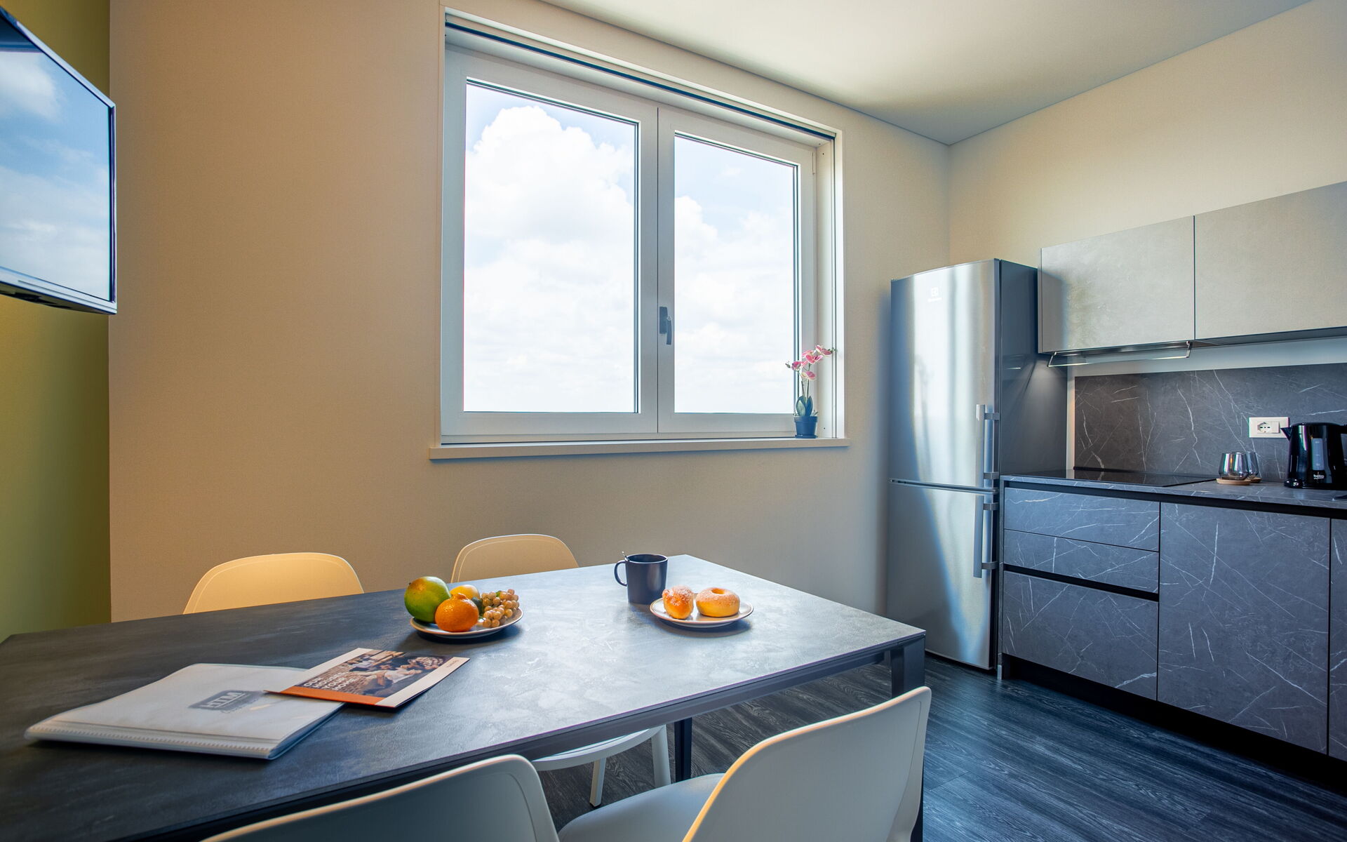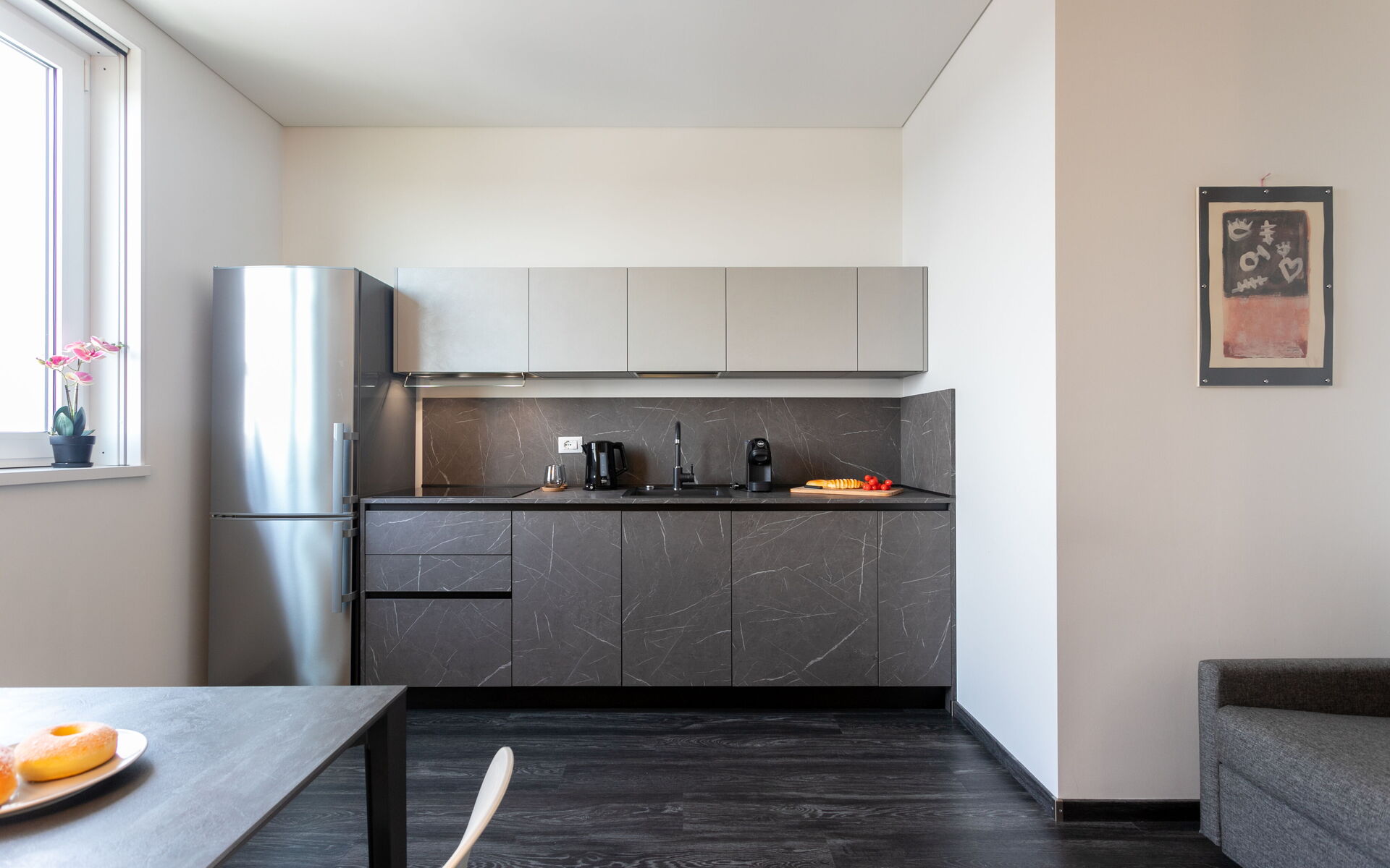 Cozy 45 m² loft, exceptionally bright and furnished with high‑quality materials, perfect for those seeking a modern and comfortable stay. The large windows and the elevated position of the apartment offer a spectacular panoramic view of the city: from this height, it truly feels like you're floating above the clouds, far from noise and surrounded by peace.